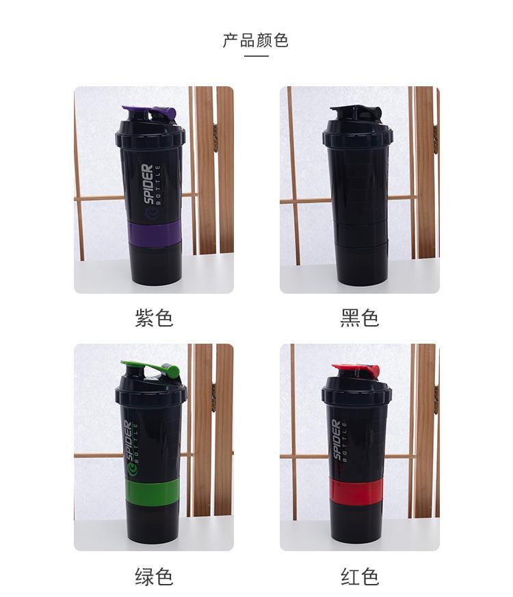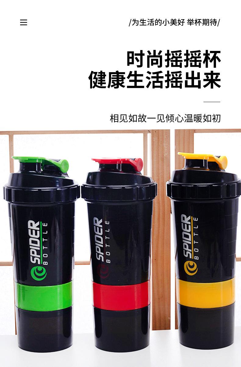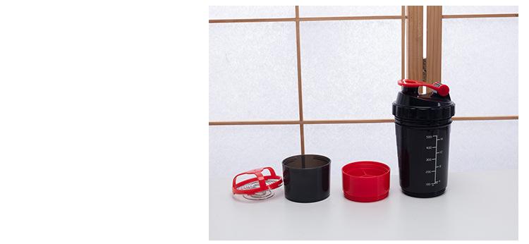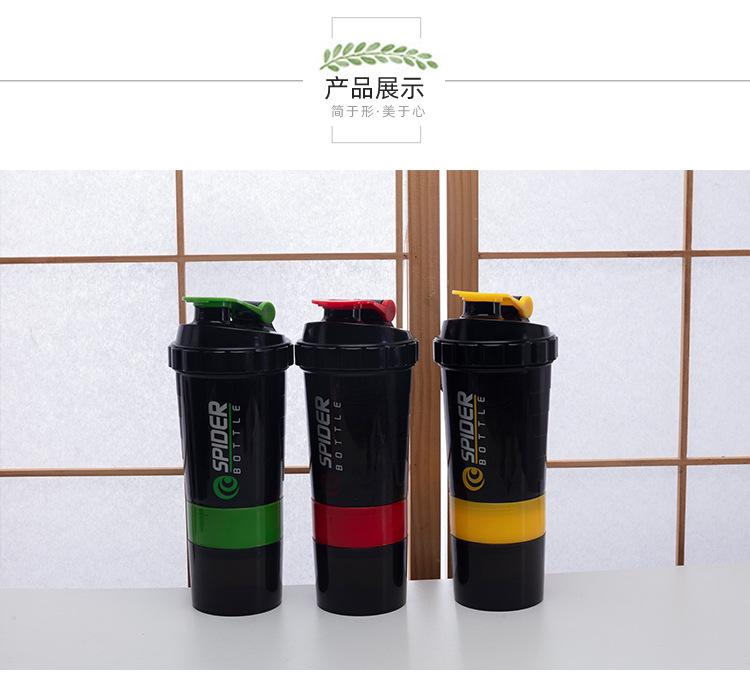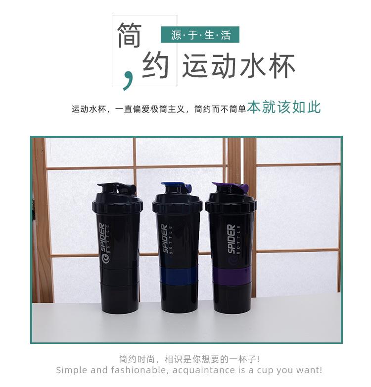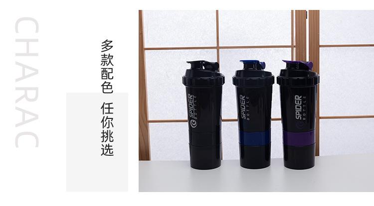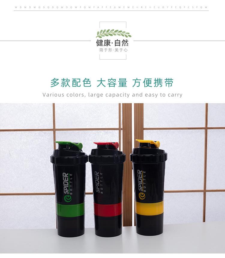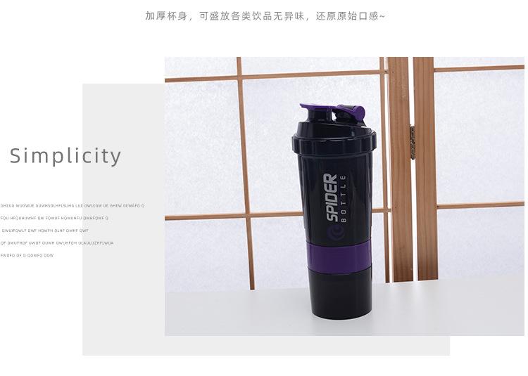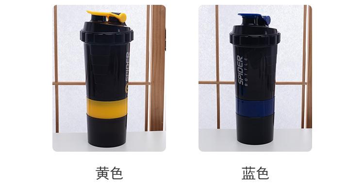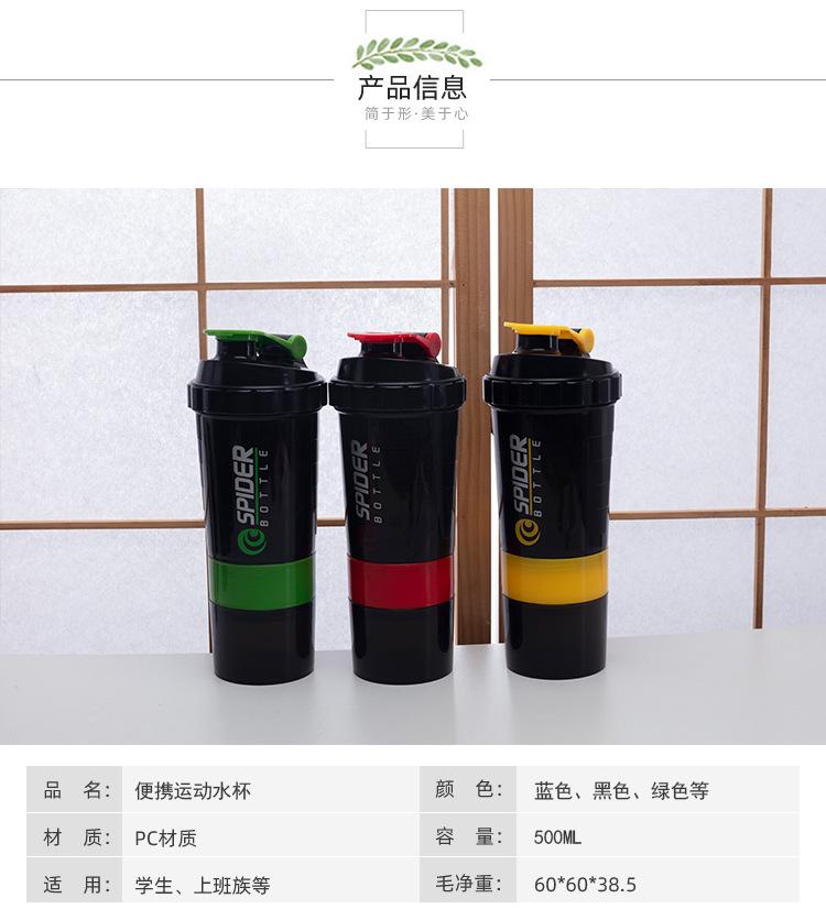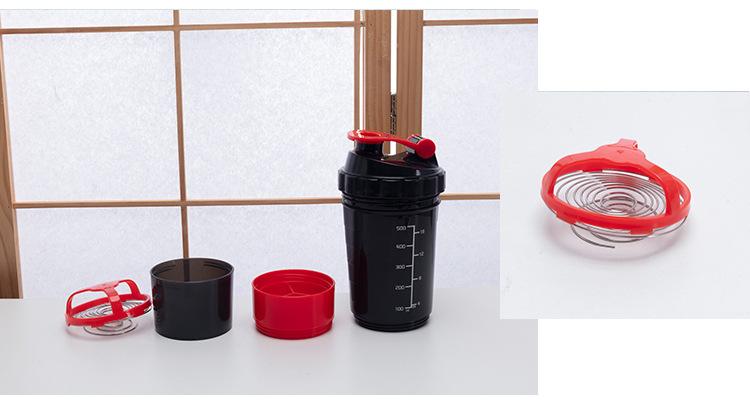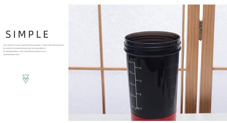 Venta al por mayor de fábrica, 500 ml, vaso portátil para batido de proteína en polvo creativo de tres capas, vaso para batido deportivo de fitness portátil
