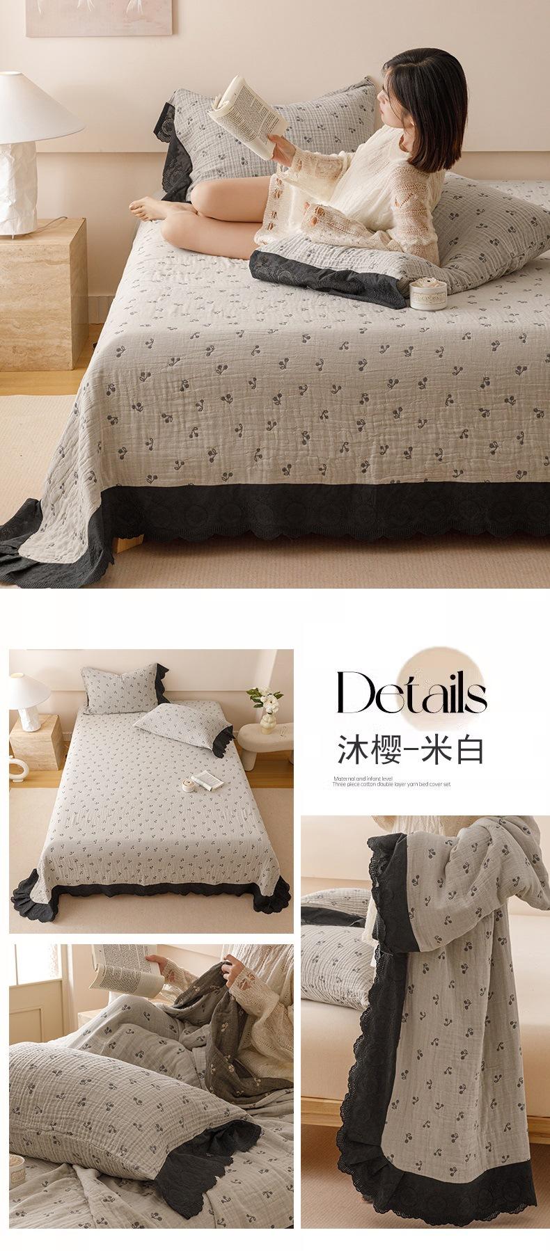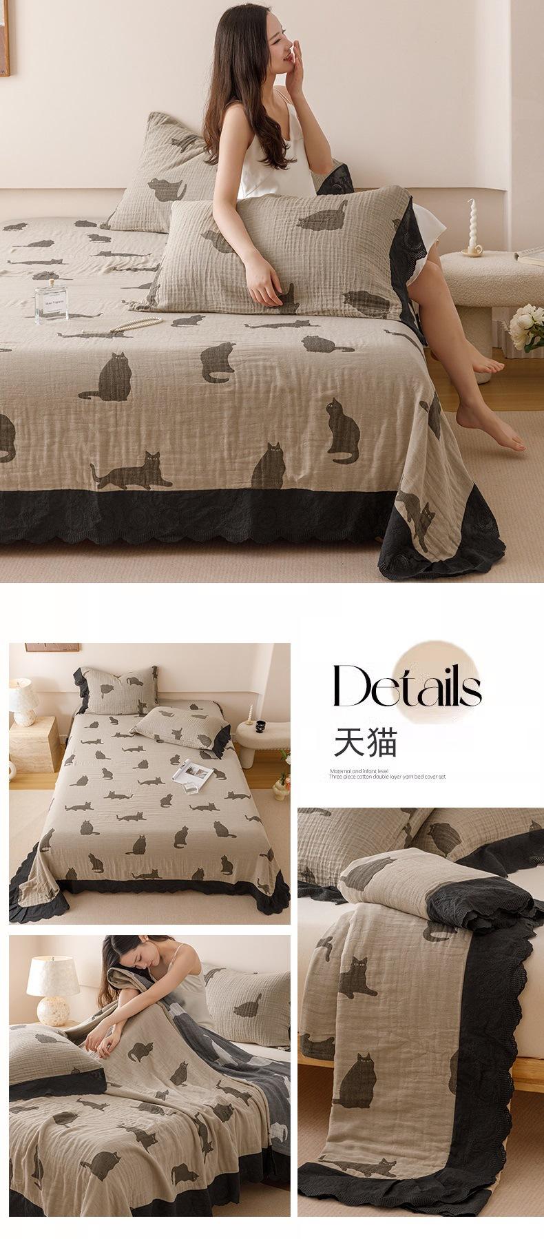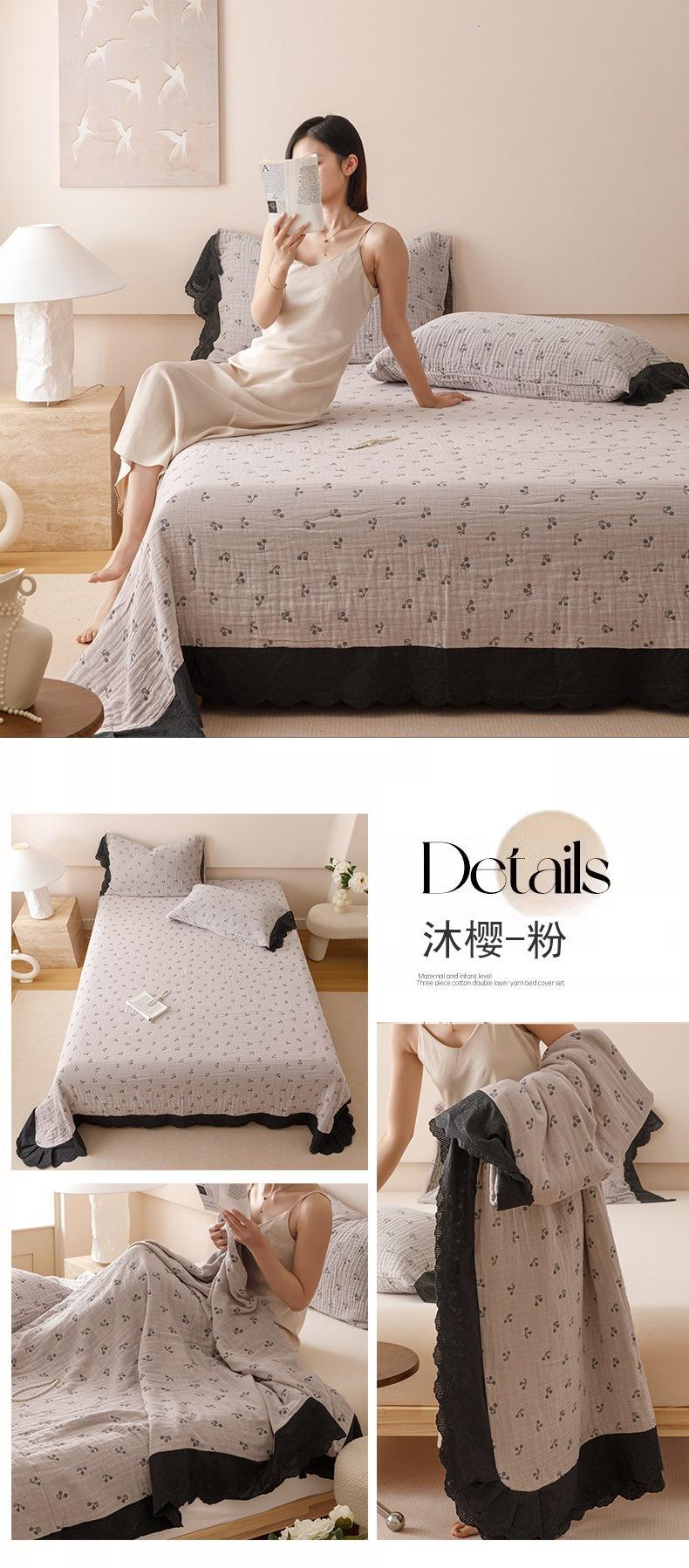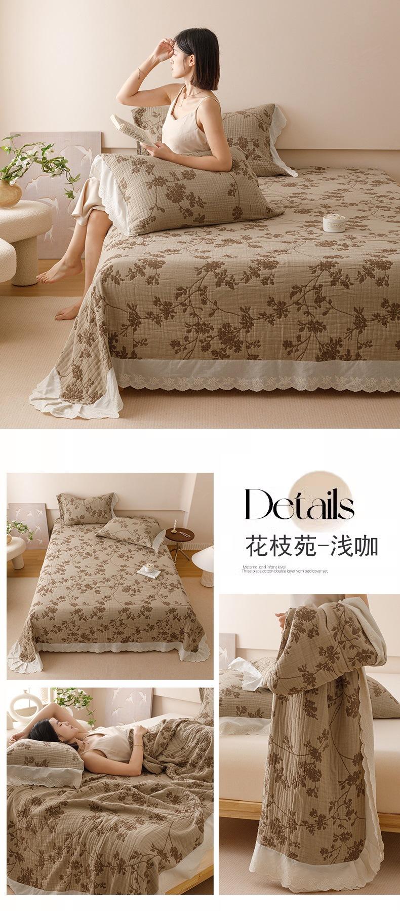 Juego de cama de algodón de tres piezas con cuatro capas de hilo estético, 2024
