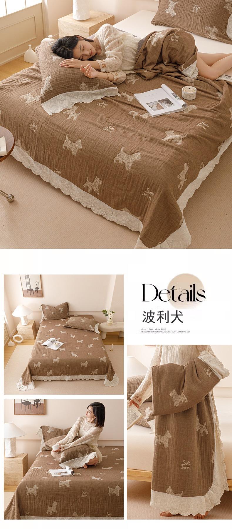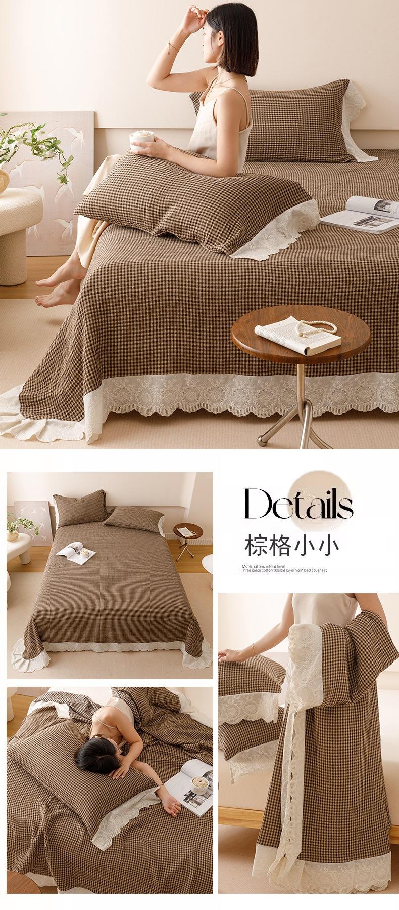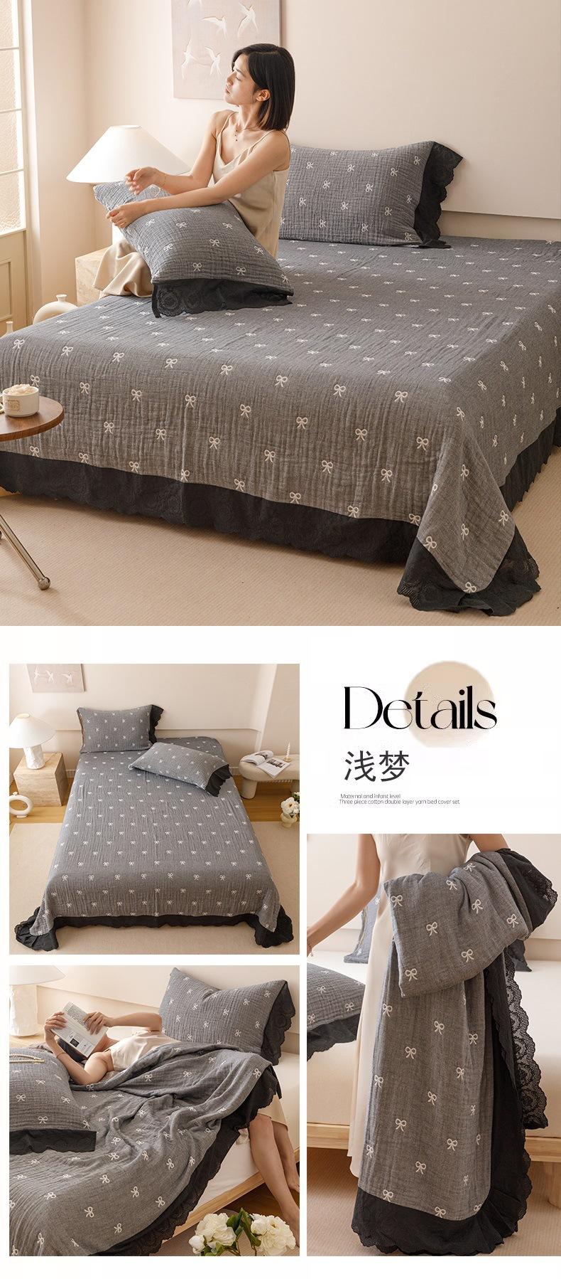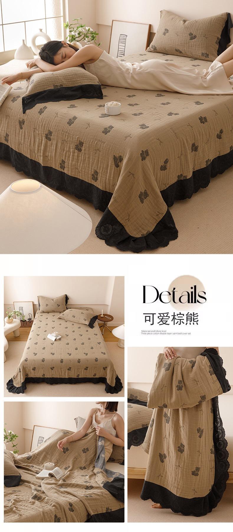 Juego de cama de algodón de tres piezas con cuatro capas de hilo estético, 2024