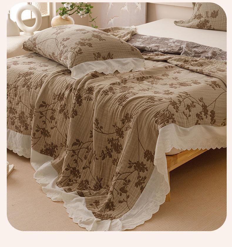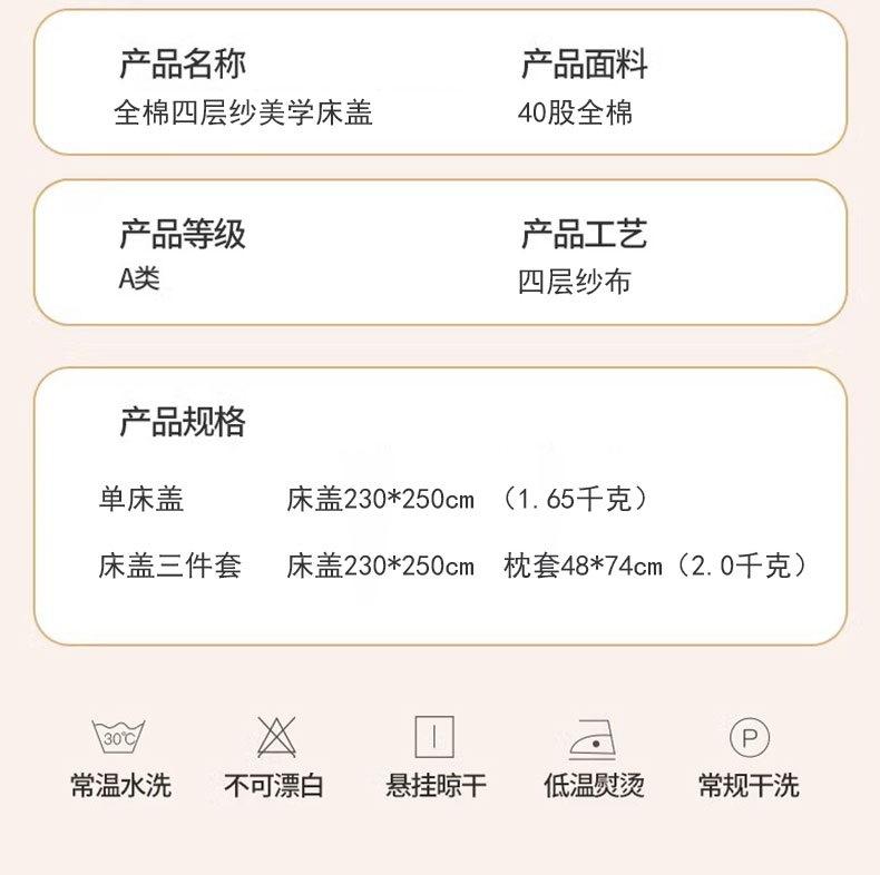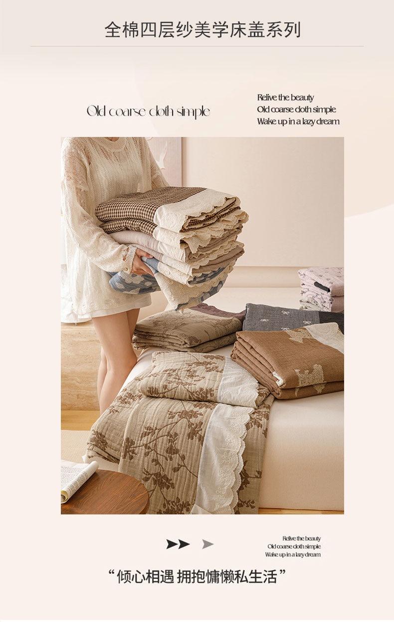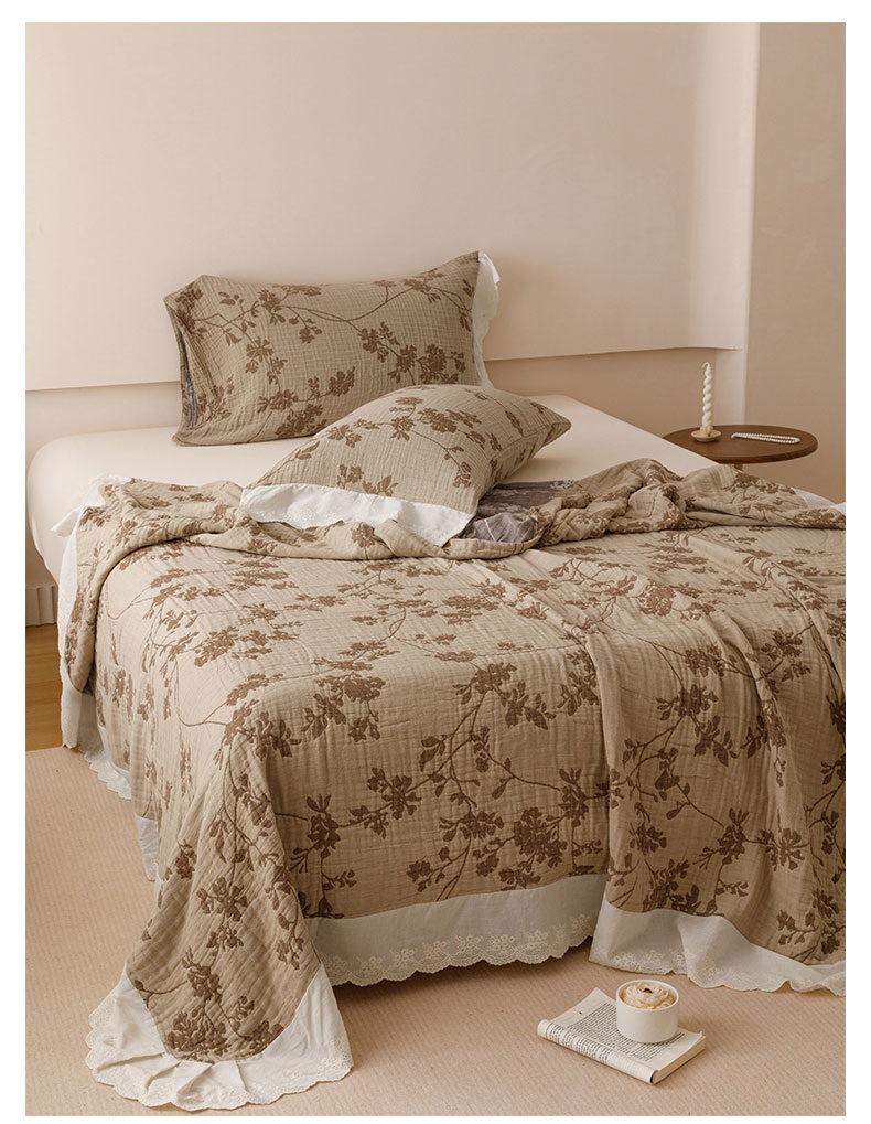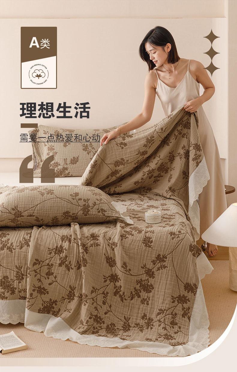 Juego de cama de algodón de tres piezas con cuatro capas de hilo estético, 2024
