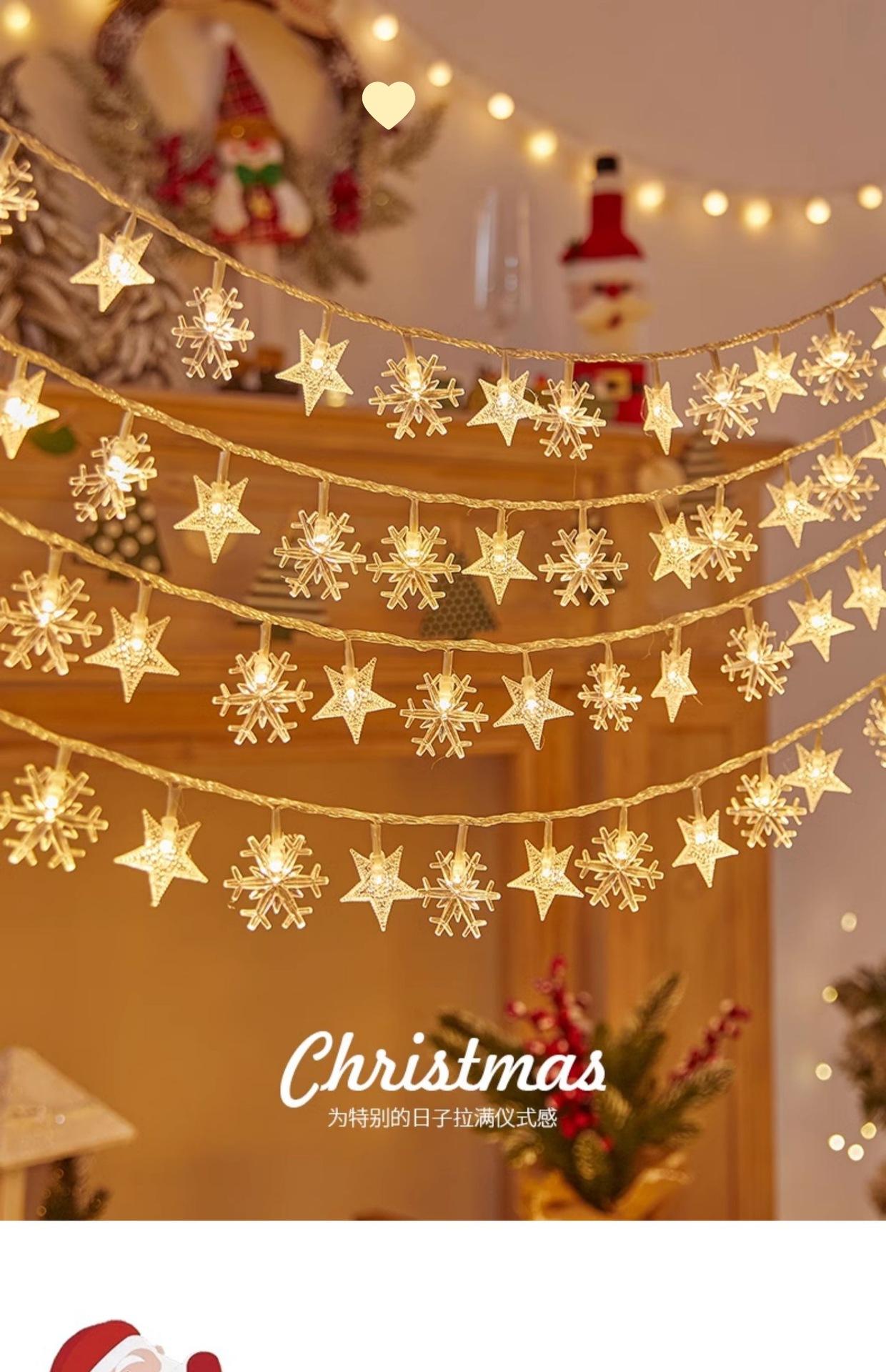 Luces de decoración navideña luces de estrella LED cadena de luces pequeñas luces intermitentes cadena de luces estrellas aliento de bebé árbol de Navidad copo de nieve luces de ambiente