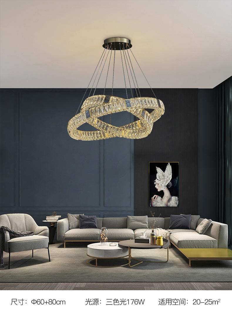 Lámpara de araña para sala de estar, de lujo, moderna, sencilla, creativa, para comedor, dormitorio, lámpara principal, atmosférica, para el hogar, lámparas de cristal de anillo de alta gama.