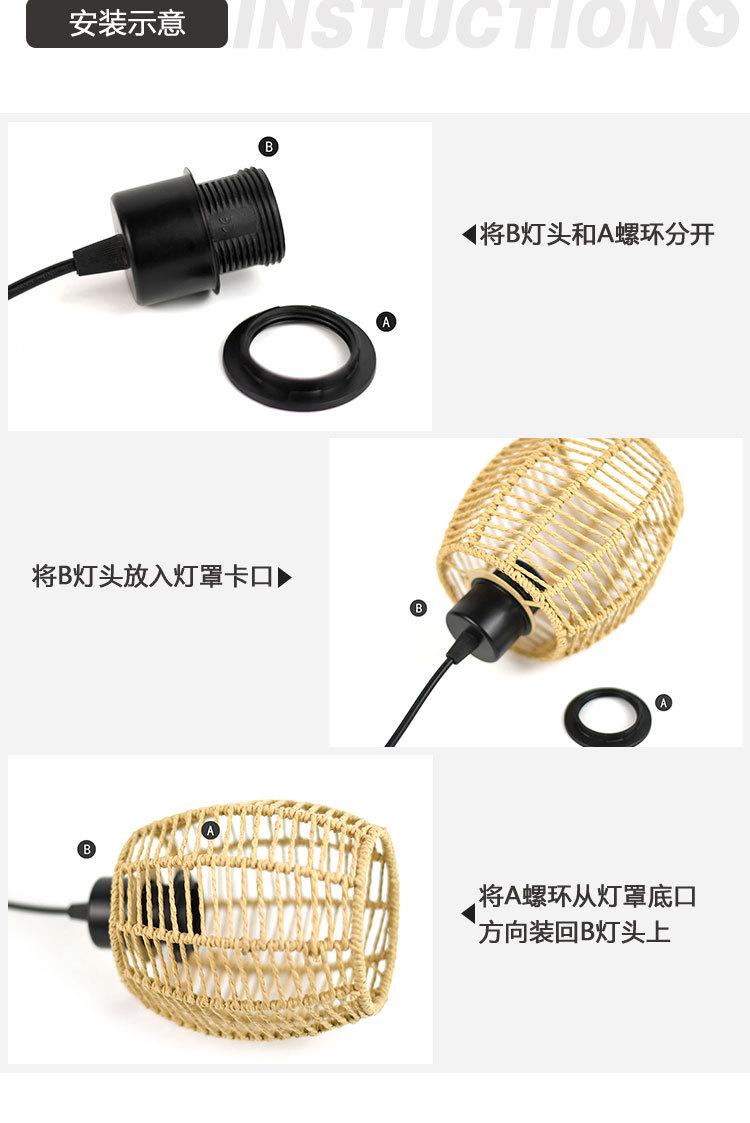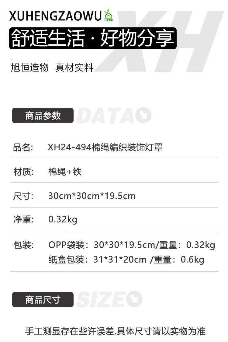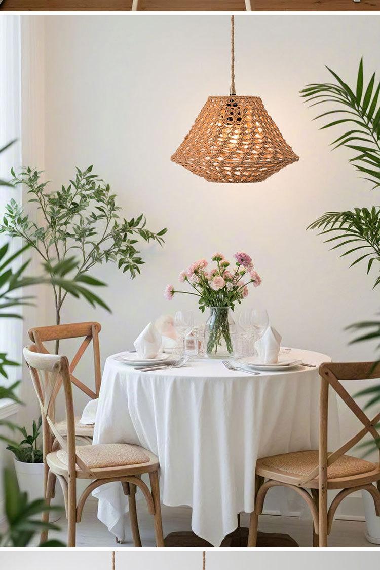 Pantalla de lámpara tejida con cuerda de algodón estilo bohemio, iluminación de decoración interior de alto sentido, iluminación de decoración creativa para hotel B & B