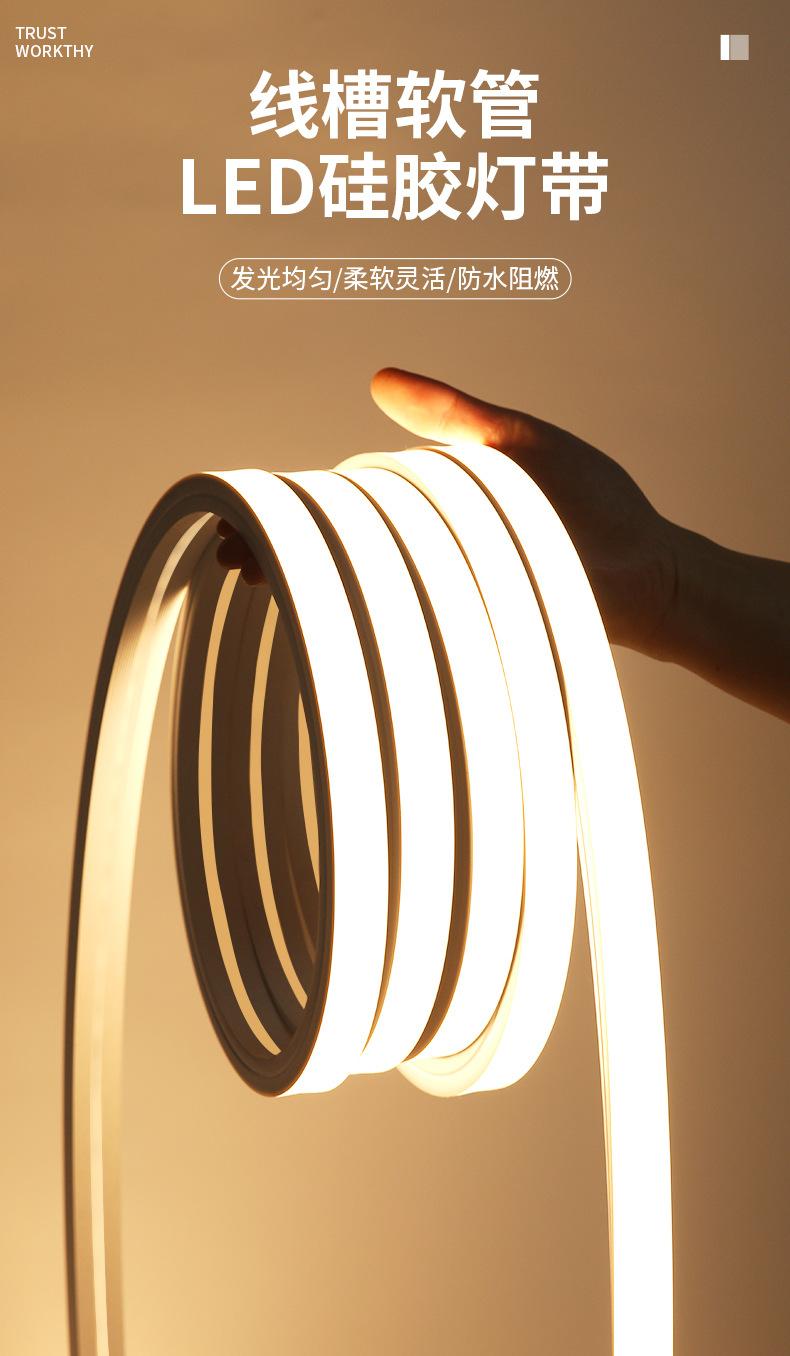 Tira de lámpara LED flexible de silicona con funda suave, 12 V/24 V, bajo voltaje, impermeable, autoadhesiva, 220 V, lámpara lineal empotrada con ranura