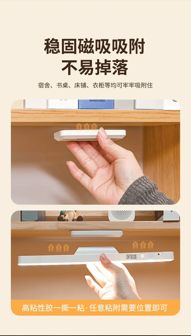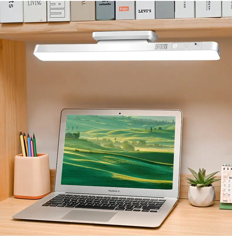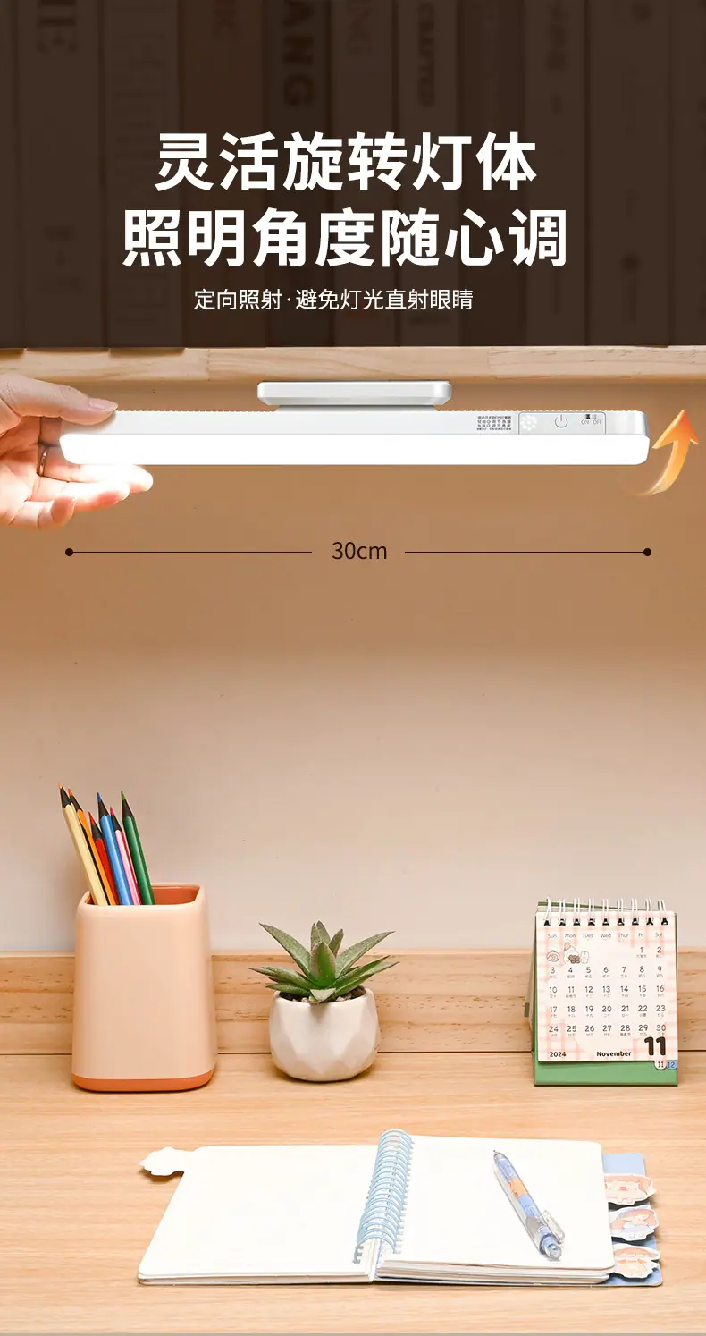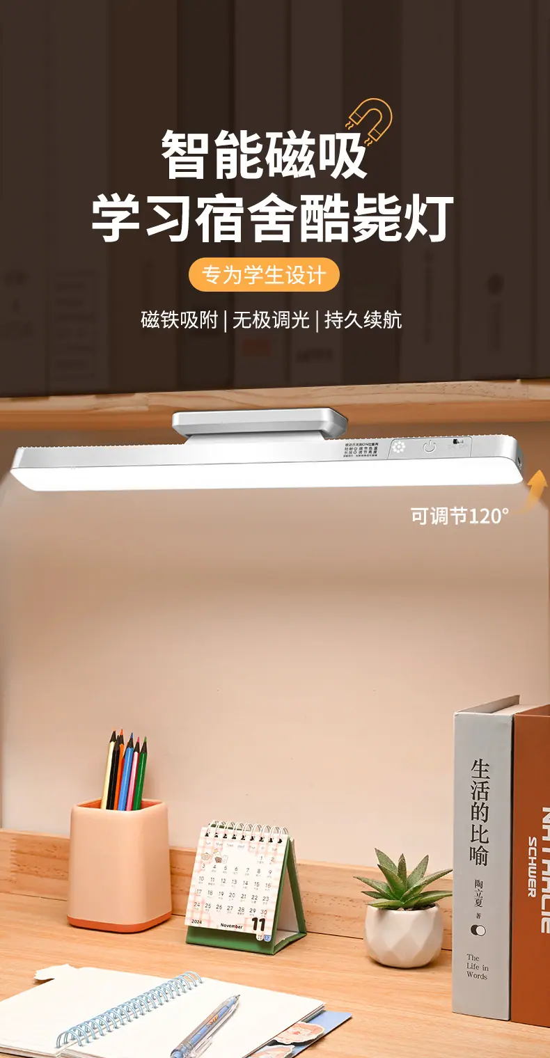 Lámpara de Escritorio al por Mayor para Dormitorio de Estudiantes Universitarios, Lámpara de Estudio y Lectura LED Súper Brillante, Adsorción Magnética, Giratoria, Recargable y Enchufable, Lámpara Fría