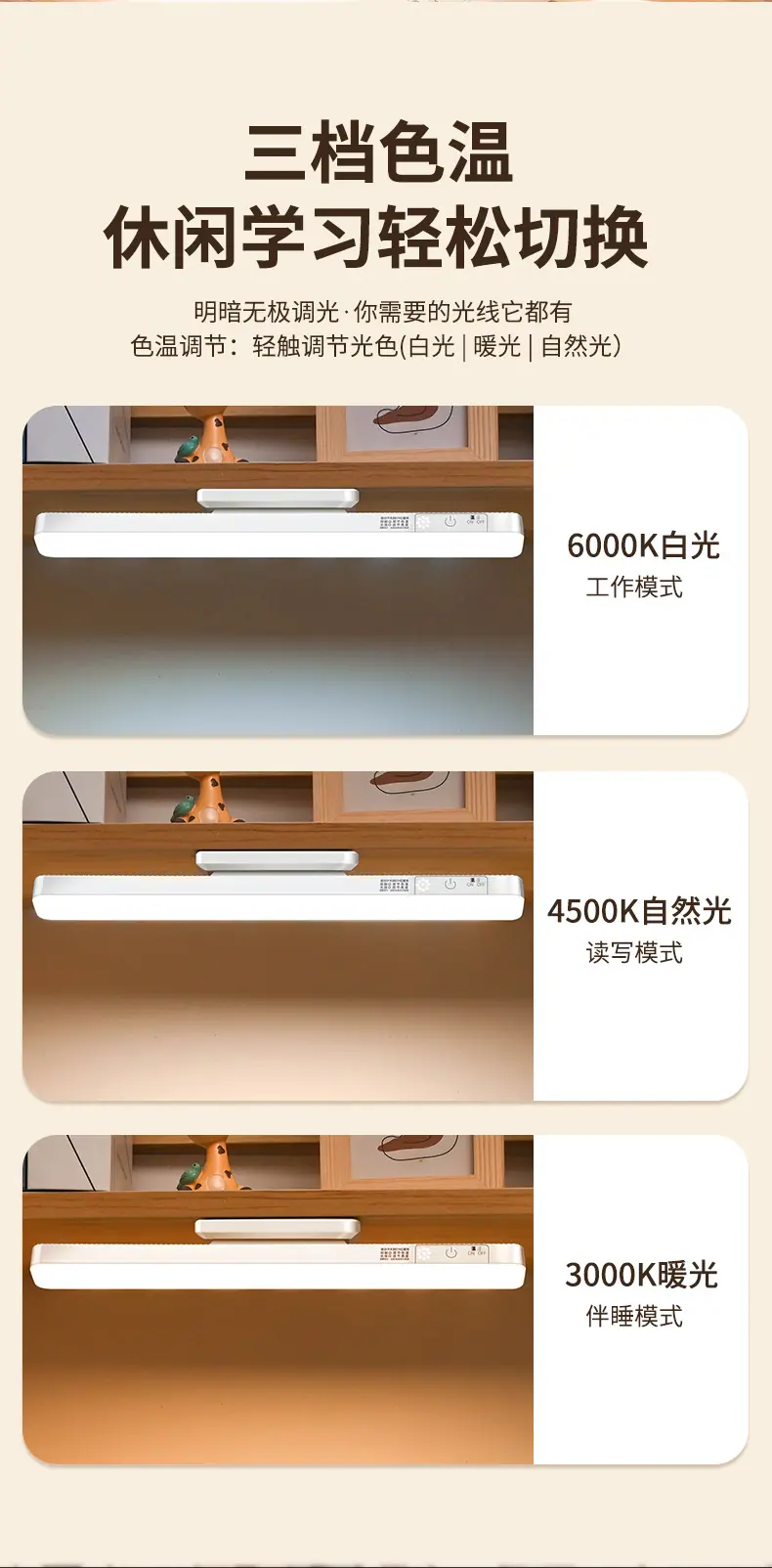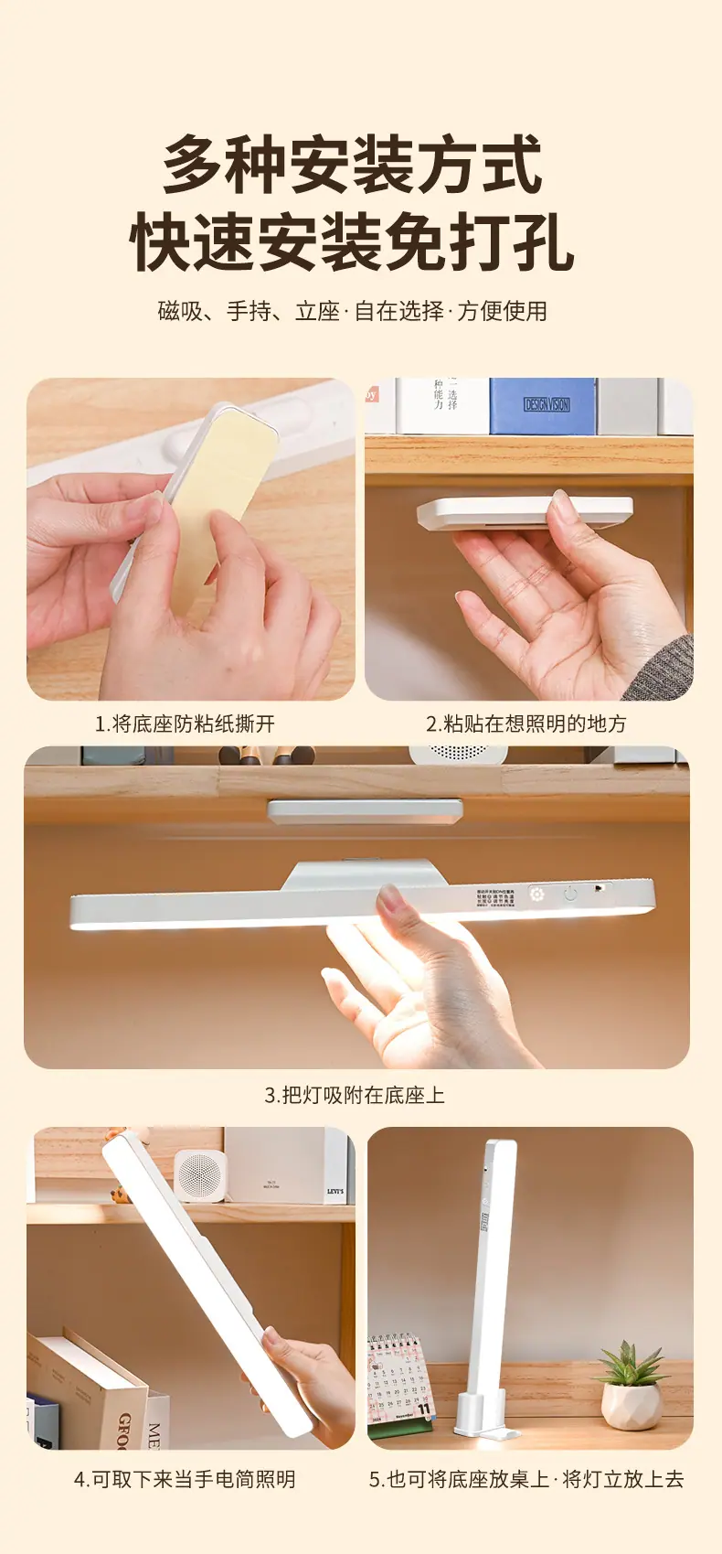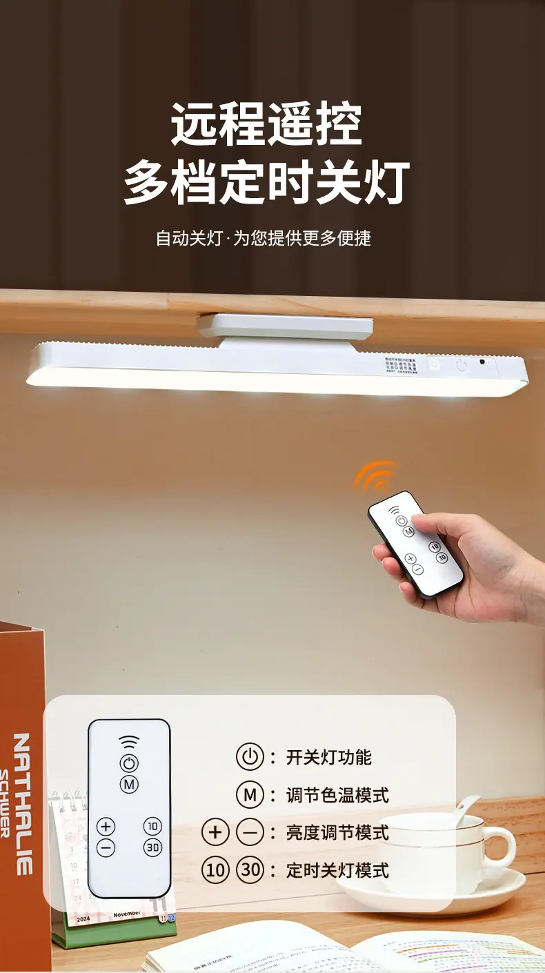 Lámpara de Escritorio al por Mayor para Dormitorio de Estudiantes Universitarios, Lámpara de Estudio y Lectura LED Súper Brillante, Adsorción Magnética, Giratoria, Recargable y Enchufable, Lámpara Fría