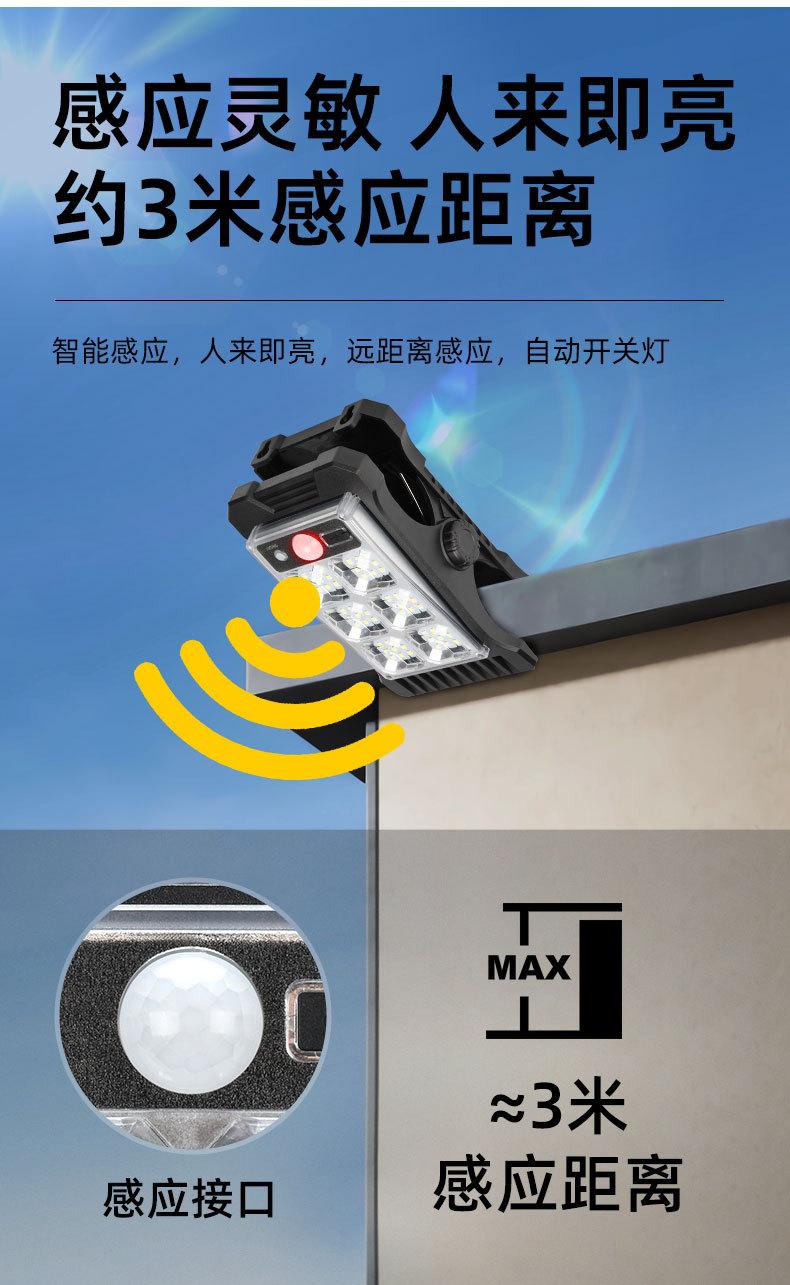 Lámpara de pared solar con clip transfronterizo, lámpara de jardín exterior con inducción del cuerpo humano, lámpara de aprendizaje, lámpara solar automática de noche