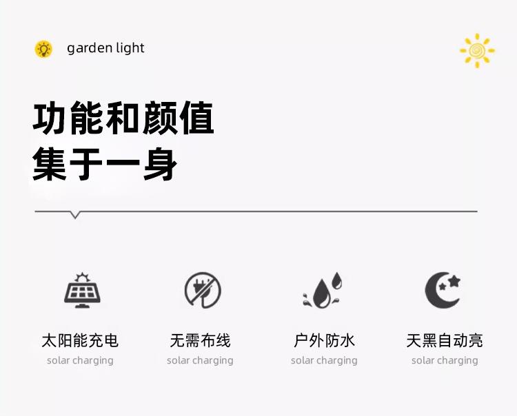 Lámpara solar de jardín transfronteriza, decoración de jardín exterior, lámpara de césped impermeable, control de luz inteligente, iluminación exterior