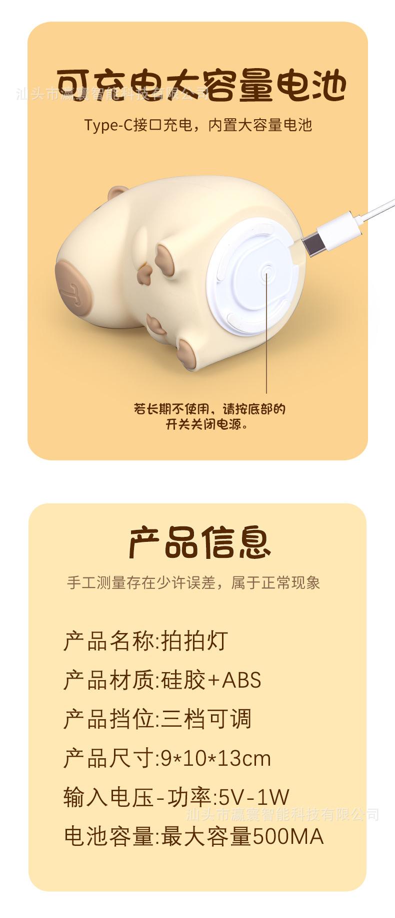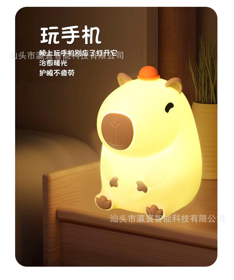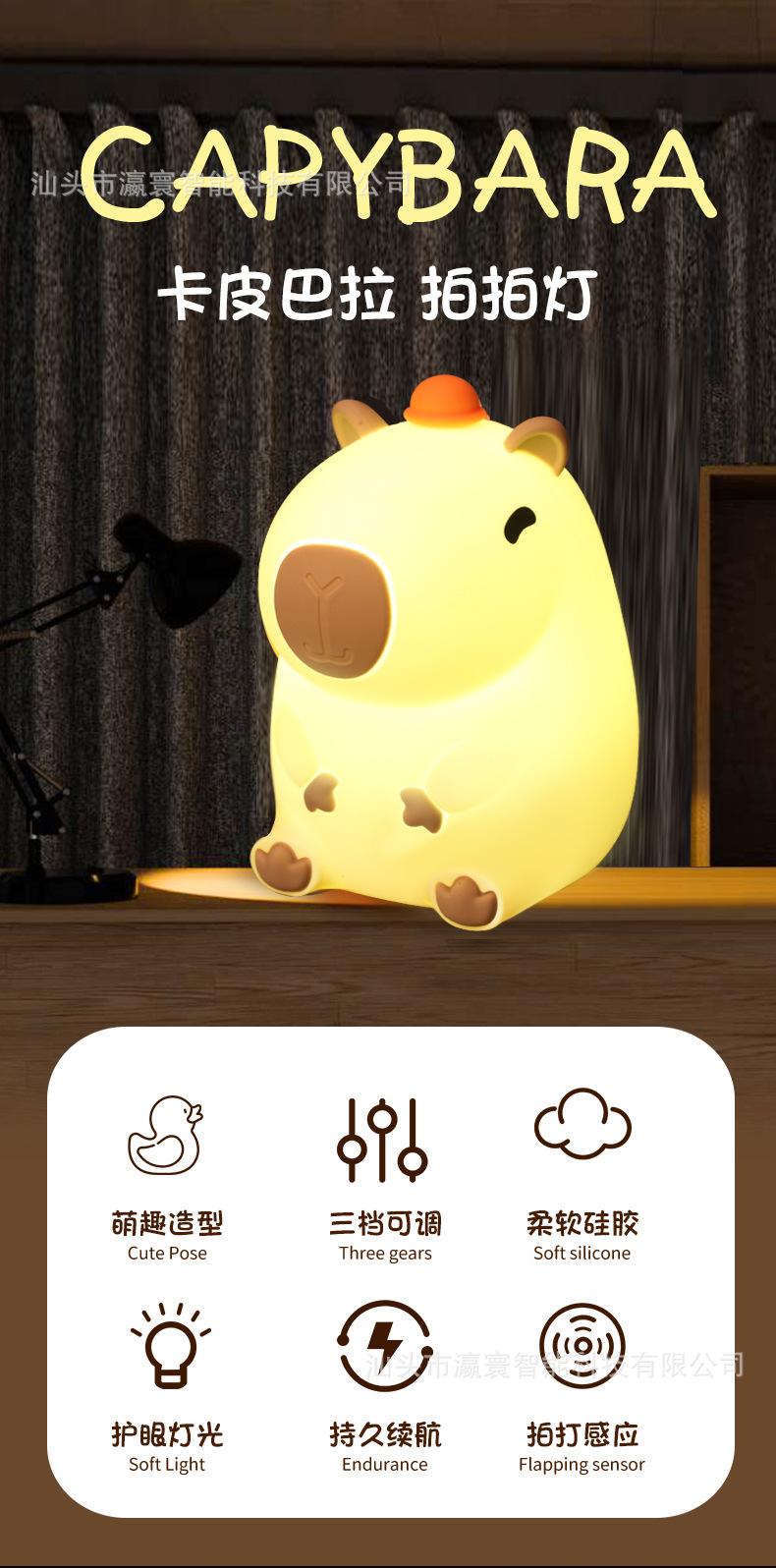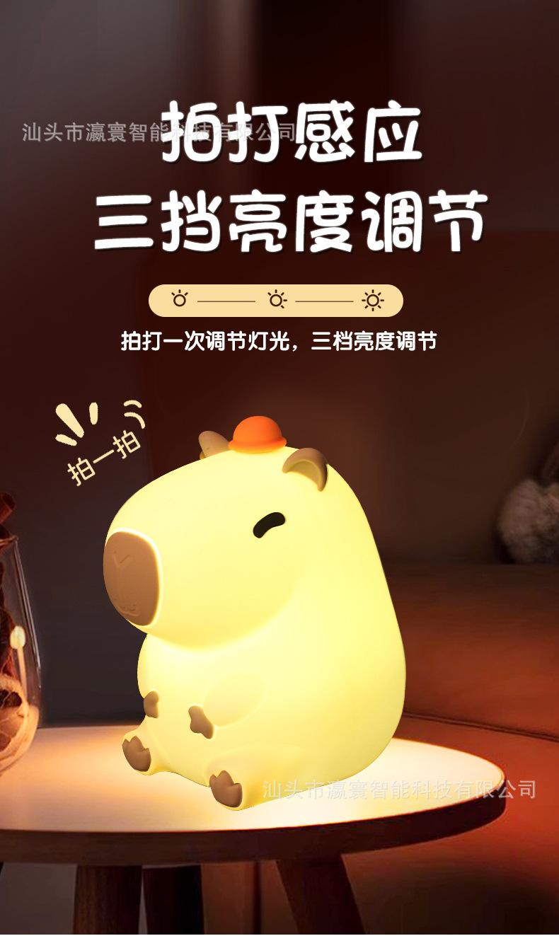 Luz Nocturna Cabibala Nueva Transfronteriza Luz de Palmaditas de Silicona Recargable Capibara Luz de Palmaditas Luz de Ambiente Regalo Explosión