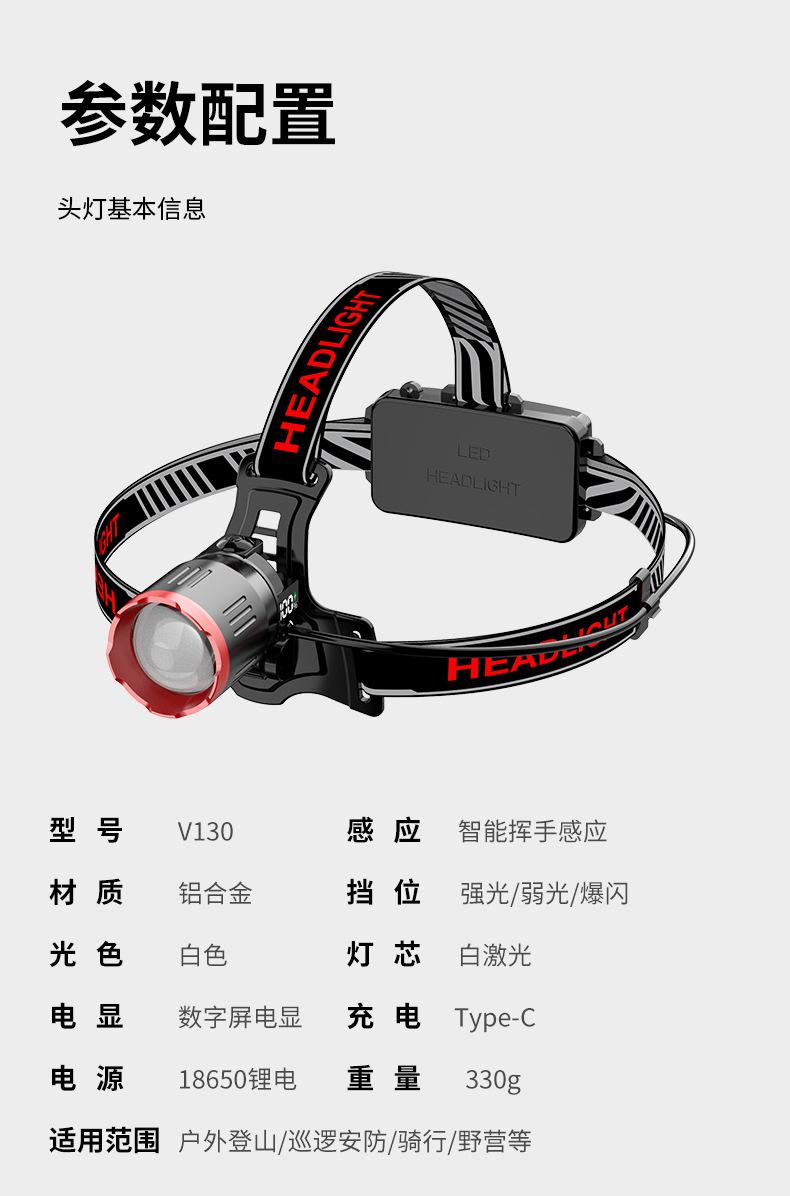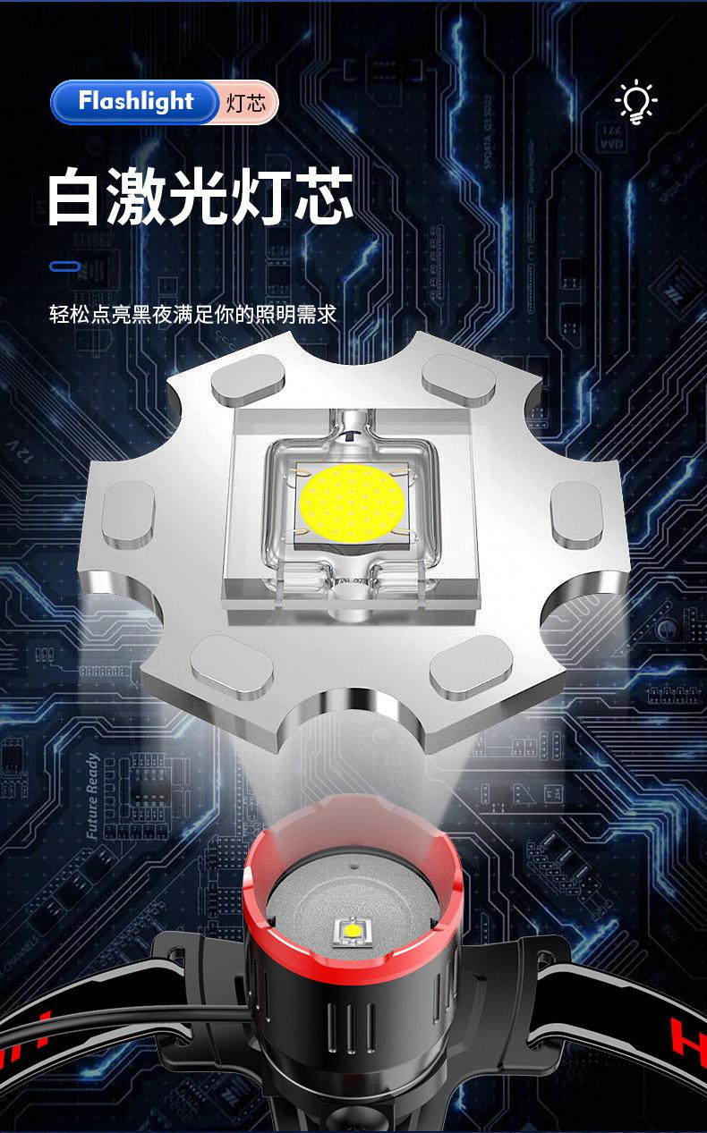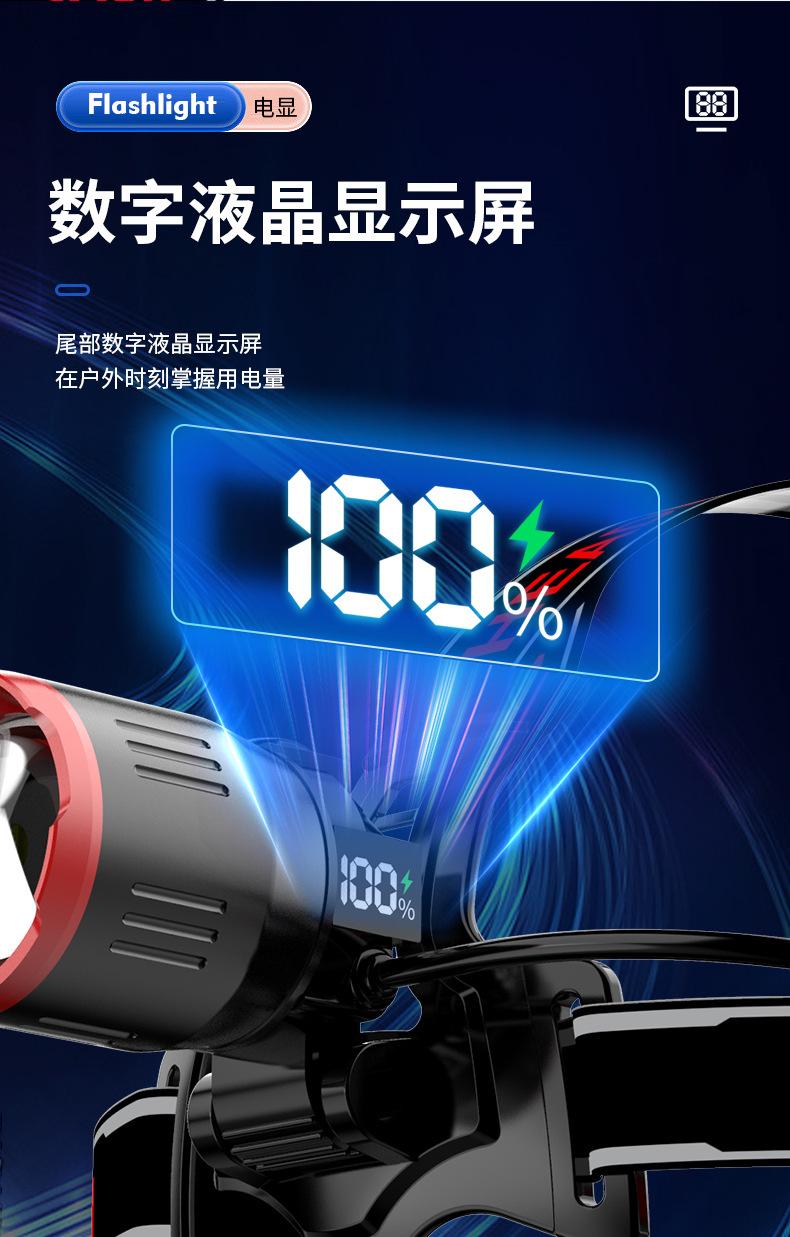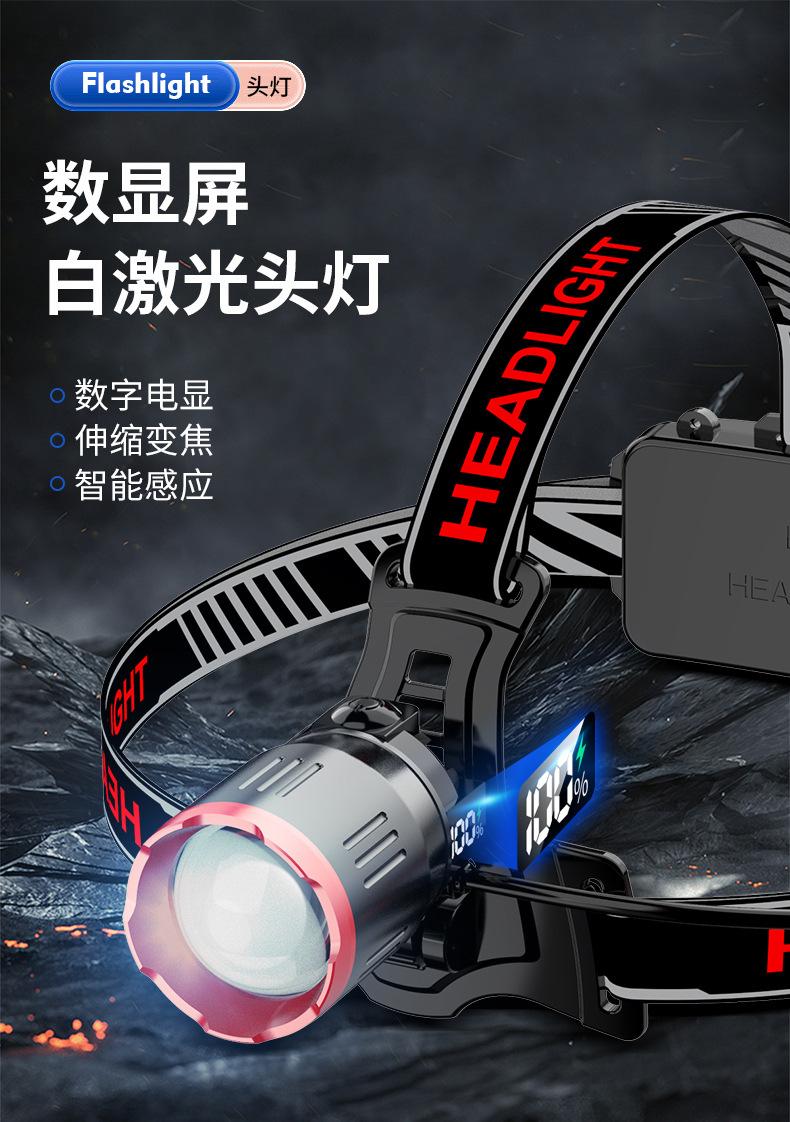 Faro delantero de inducción lateral con pantalla digital de potencia, luz fuerte de largo alcance, faro delantero láser blanco de alta potencia, linterna de iluminación exterior