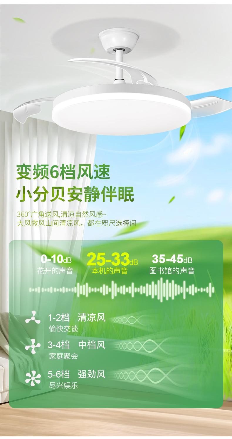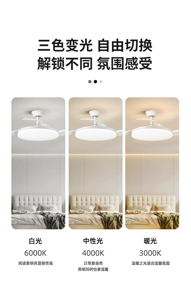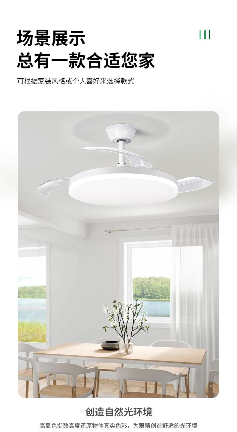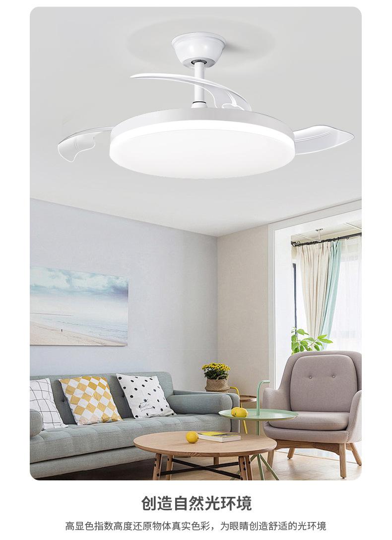 Luces de ventilador invisibles luces de espectro completo para sala de estar luces de comedor luces de dormitorio conversión de frecuencia luces de ventilador silenciosas lámparas de ventilador de techo Zhongshan