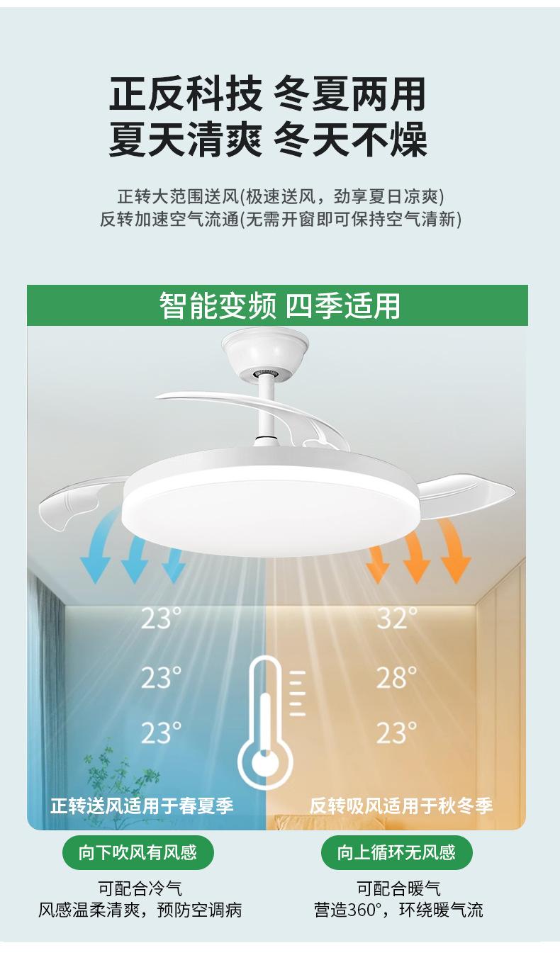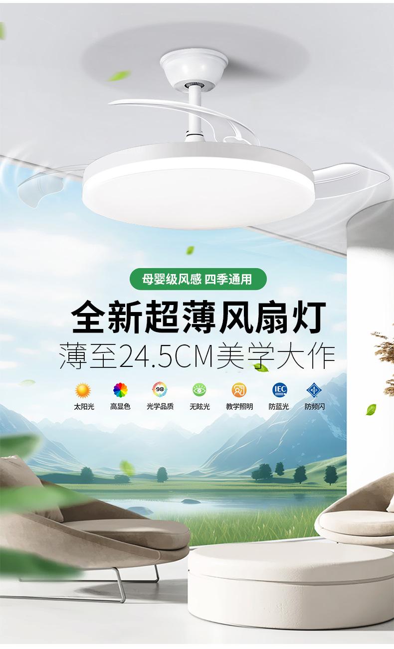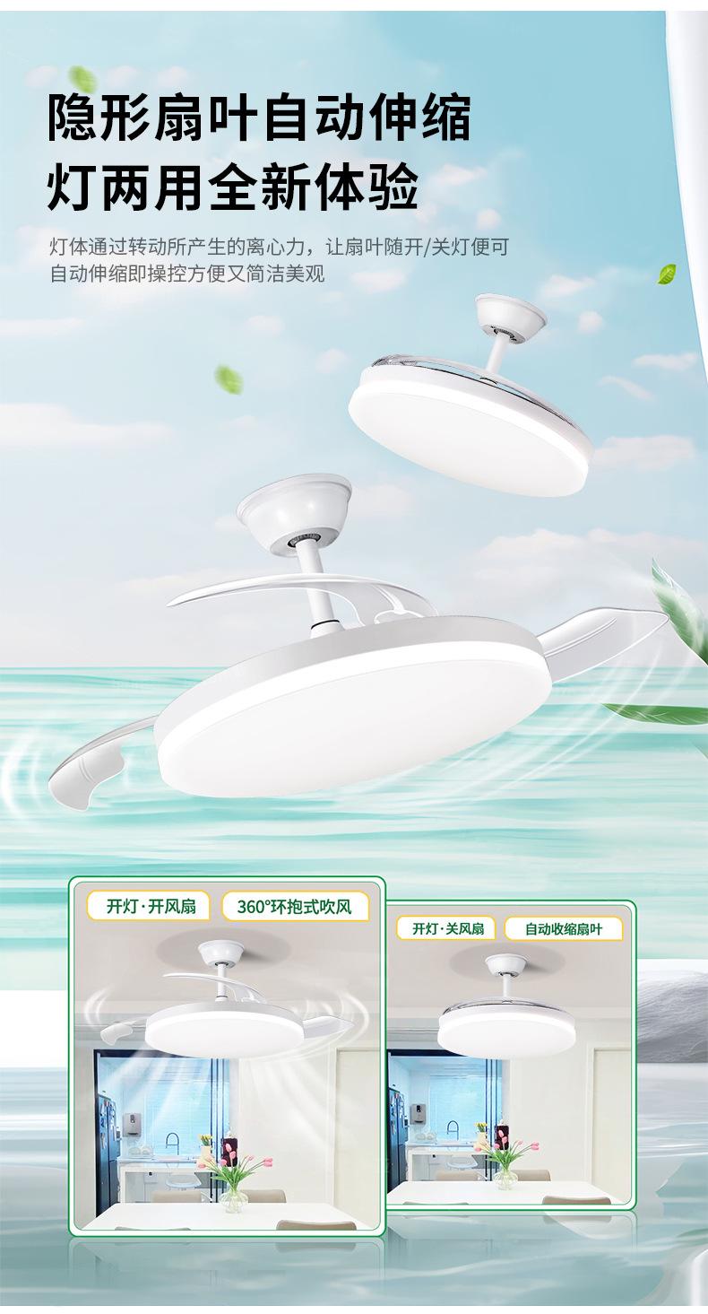 Luces de ventilador invisibles luces de espectro completo para sala de estar luces de comedor luces de dormitorio conversión de frecuencia luces de ventilador silenciosas lámparas de ventilador de techo Zhongshan