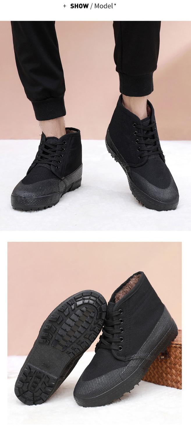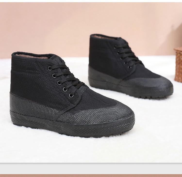Zapatos de lanzamiento de caña alta zapatos de algodón acolchados con forro polar trabajo de sitio de construcción al aire libre antideslizantes resistentes al desgaste zapatos de lona de trabajo invierno cálido
