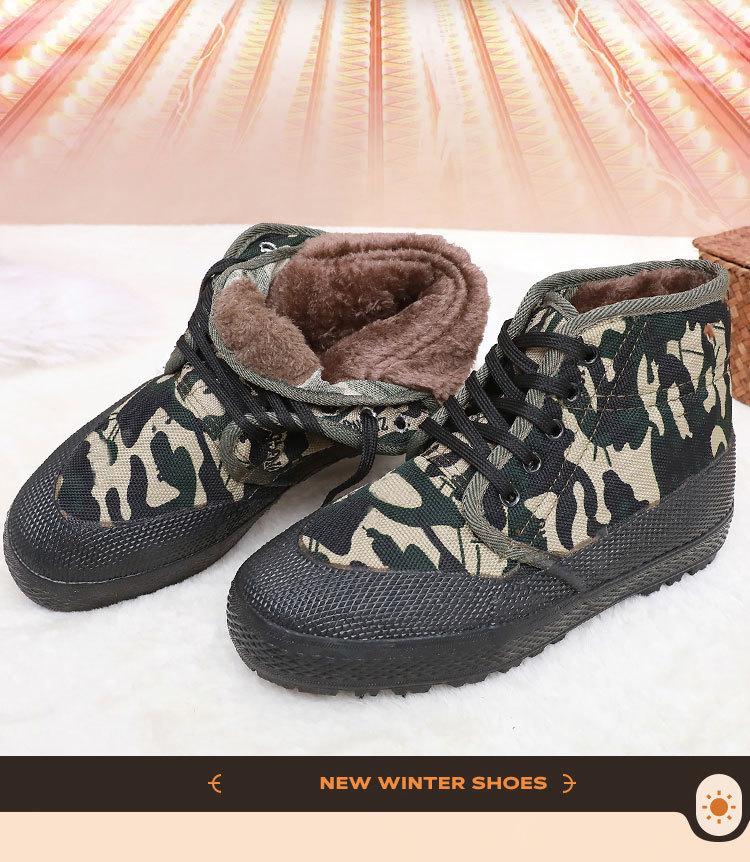 Compra Zapatos de lanzamiento de caña alta zapatos de algodón acolchados con forro polar trabajo de sitio de construcción al aire libre antideslizantes resistentes al desgaste zapatos de lona de trabajo invierno cálido al por mayor en Joom.pro