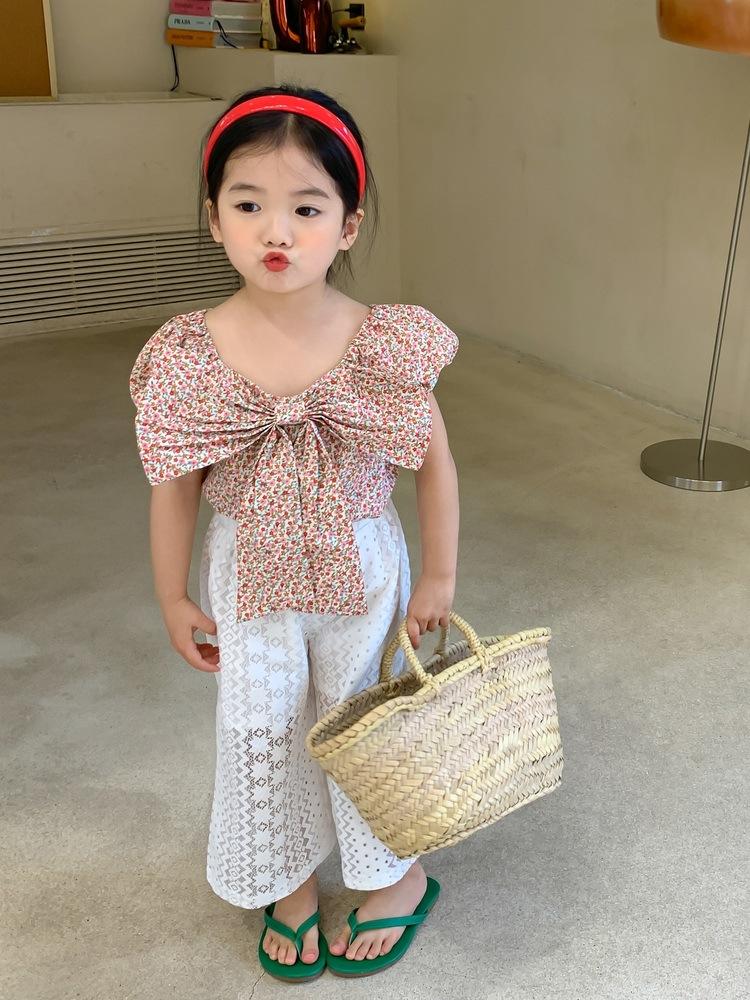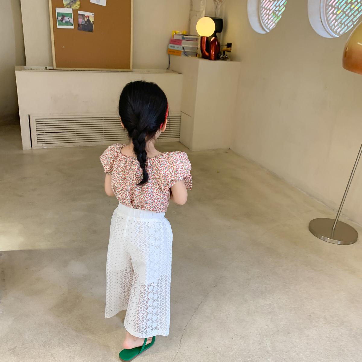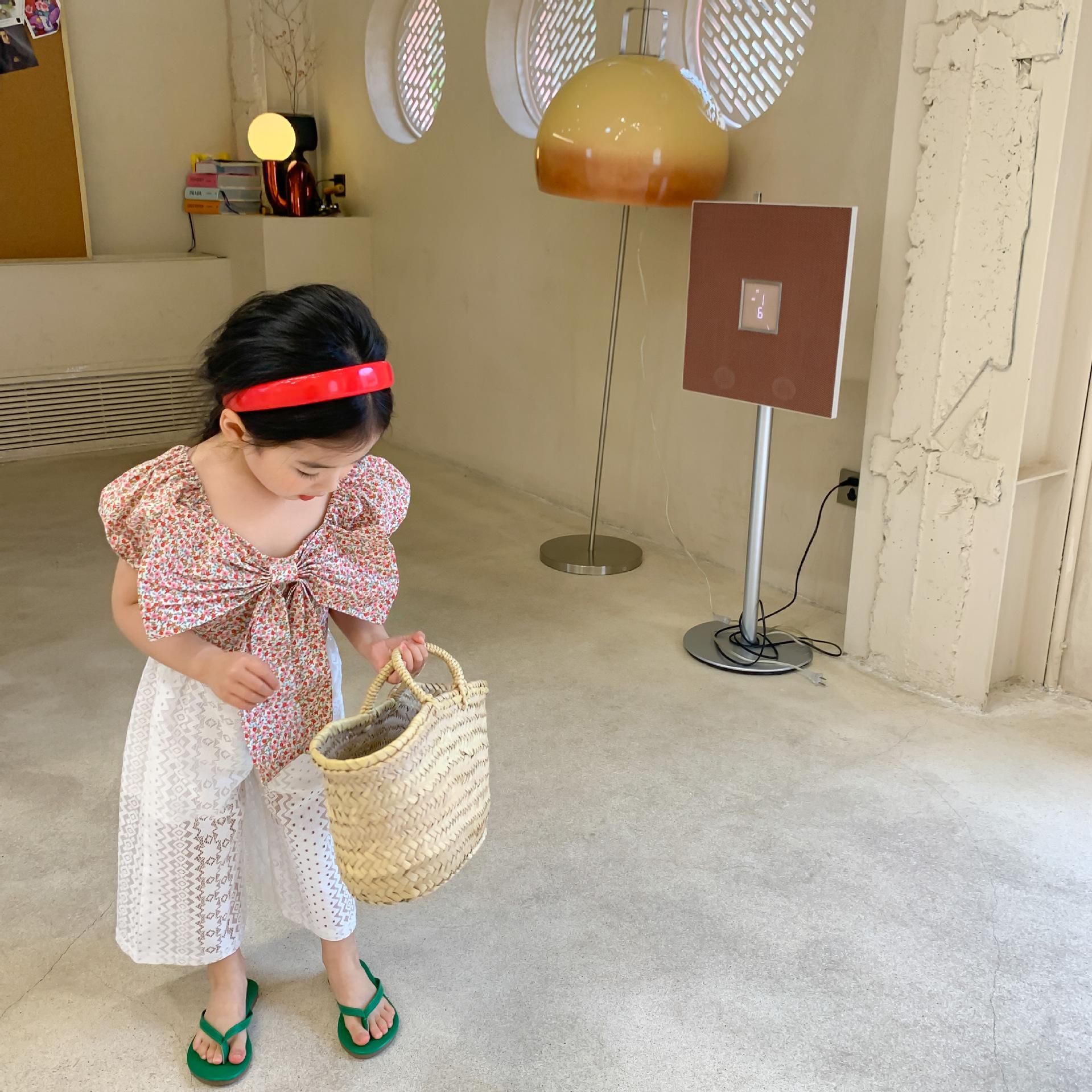 Ropa para niños, venta al por mayor, traje de verano para niñas, nuevo traje coreano para niñas pequeñas, fresco, con estampado floral, pantalones de manga corta para bebés.
