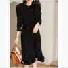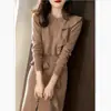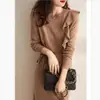 Vestido de punto de lana con cordones y volantes para mujer, estilo chic coreano, estilo francés, de Lotte, otoño e invierno, estilo japonés