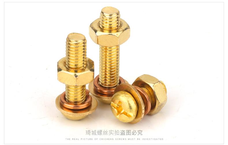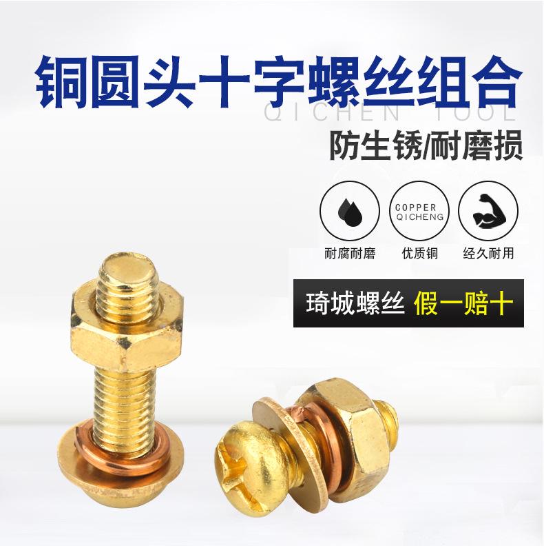 Tornillo de cabeza redonda de cobre Phillips tuerca traje latón cabeza plana arandela plana arandela de resorte tornillo de alambre cuatro combinaciones M5M6M8