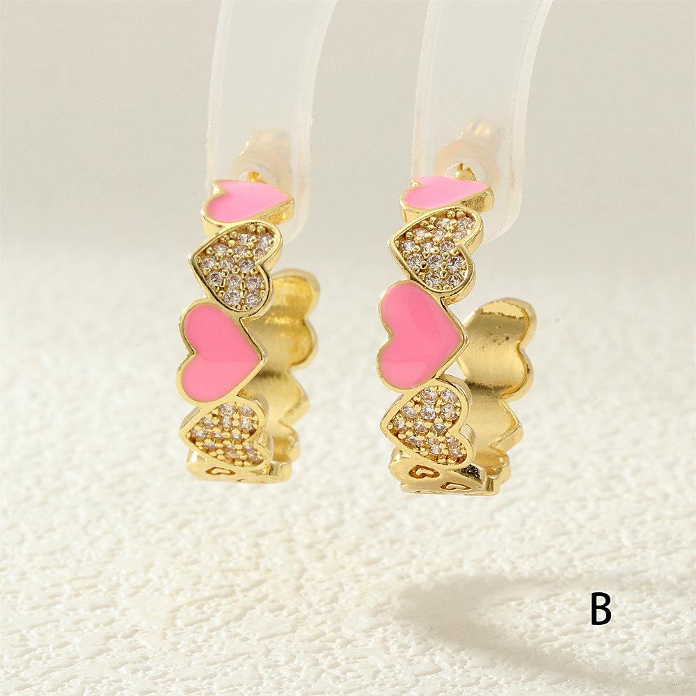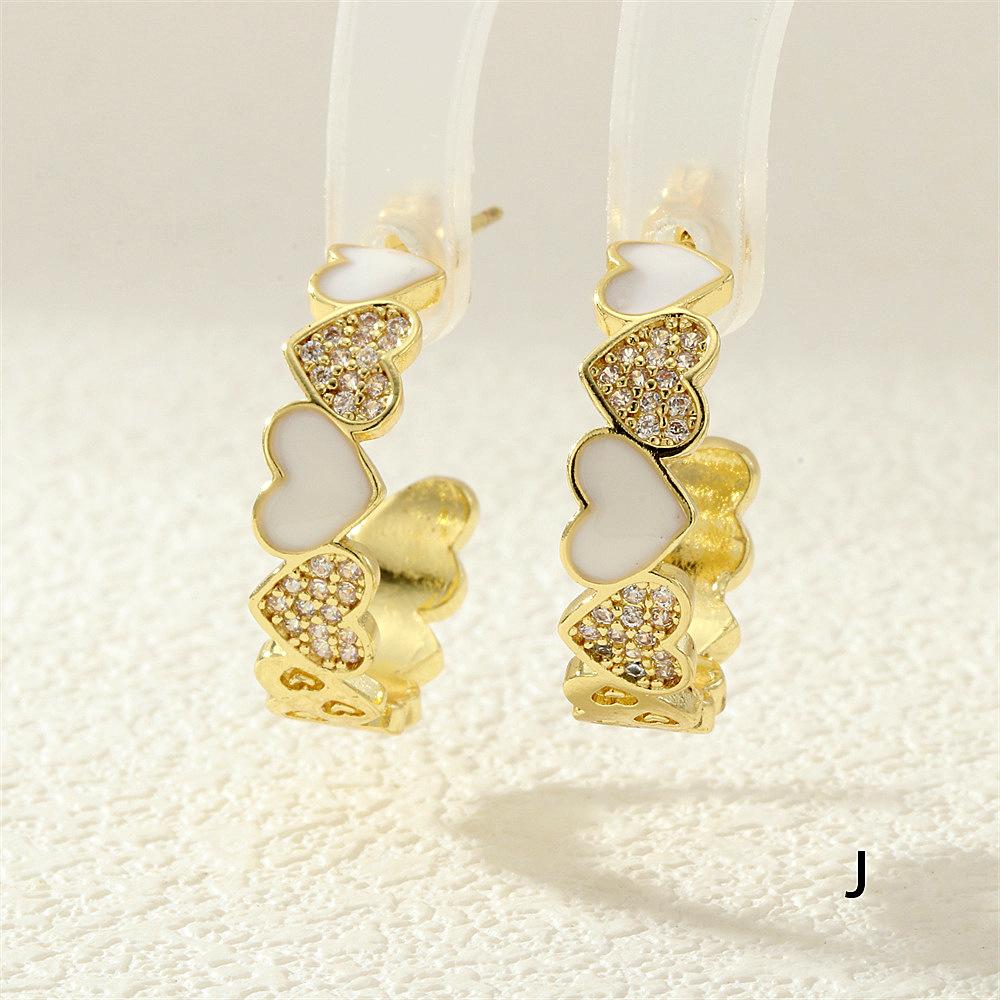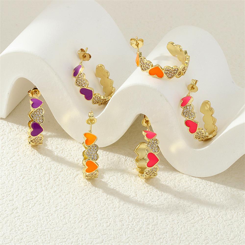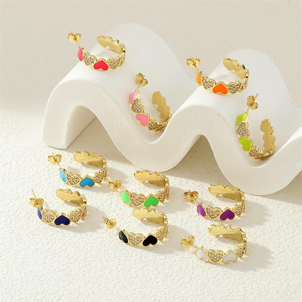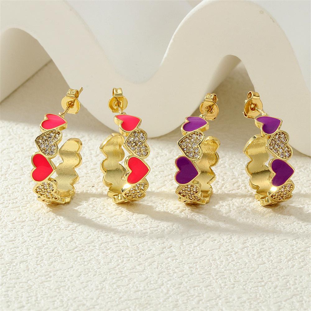 Aretes de Corazón de Durazno Electrochapados en Oro Real Diseño de Circonita en Forma de Corazón Gota de Aceite Aro Grande en Forma de C Accesorios Avanzados Europeos y Americanos