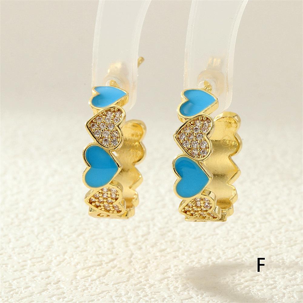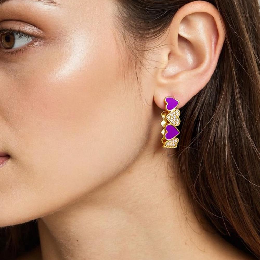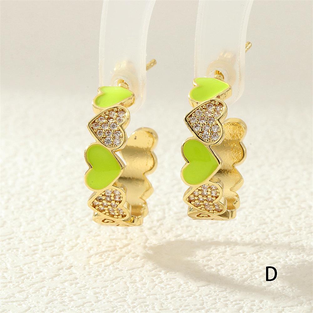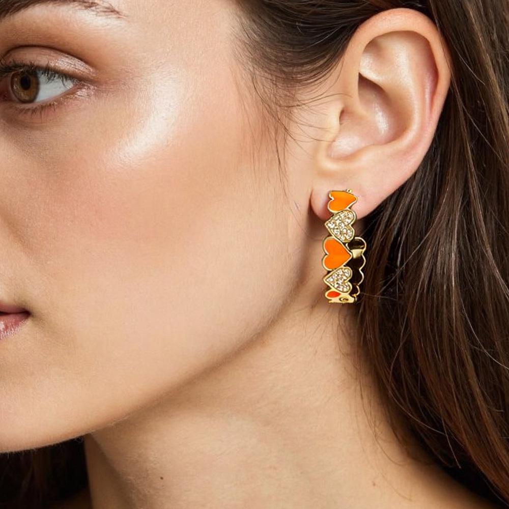 Aretes de Corazón de Durazno Electrochapados en Oro Real Diseño de Circonita en Forma de Corazón Gota de Aceite Aro Grande en Forma de C Accesorios Avanzados Europeos y Americanos