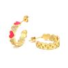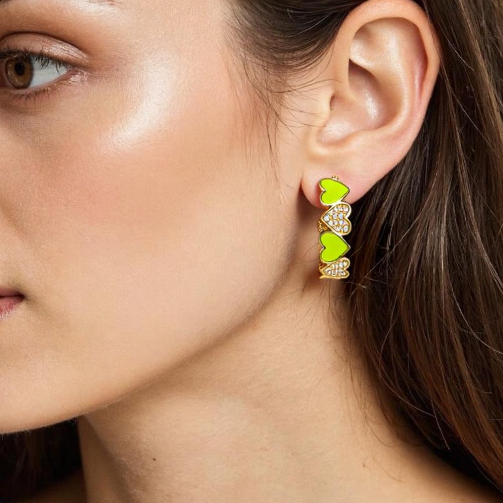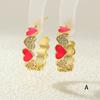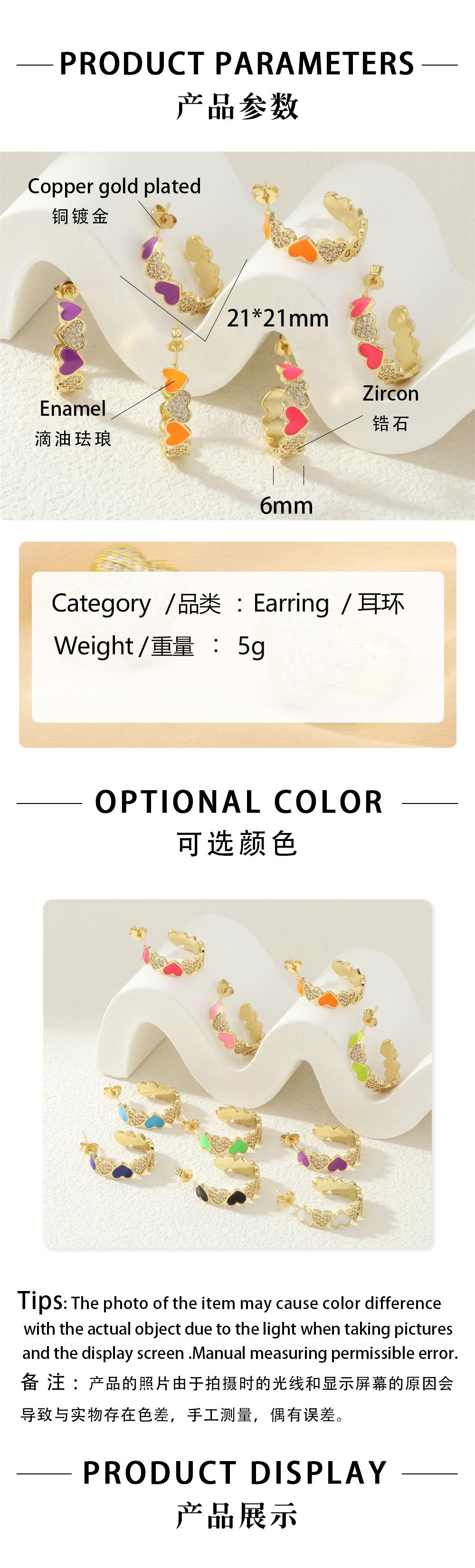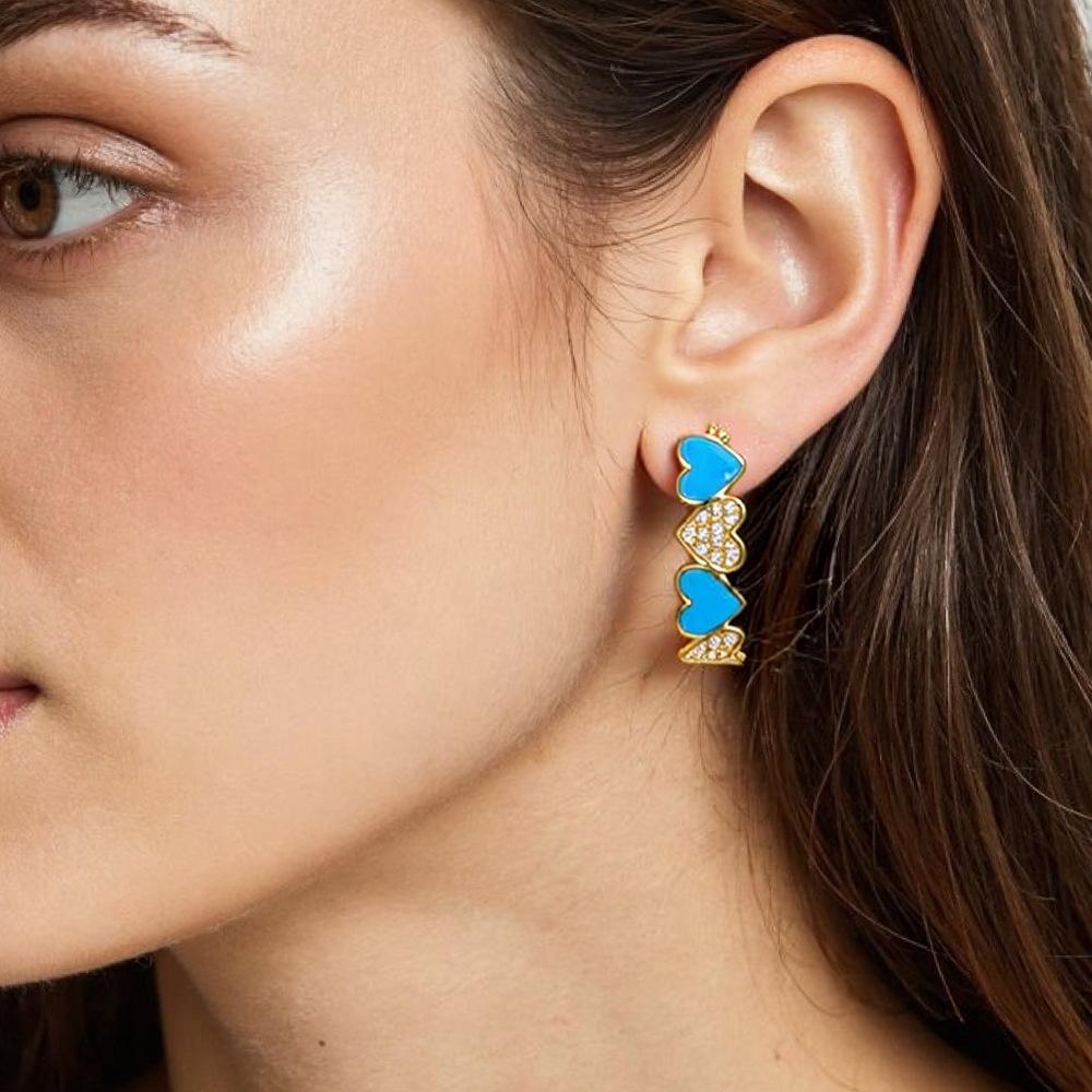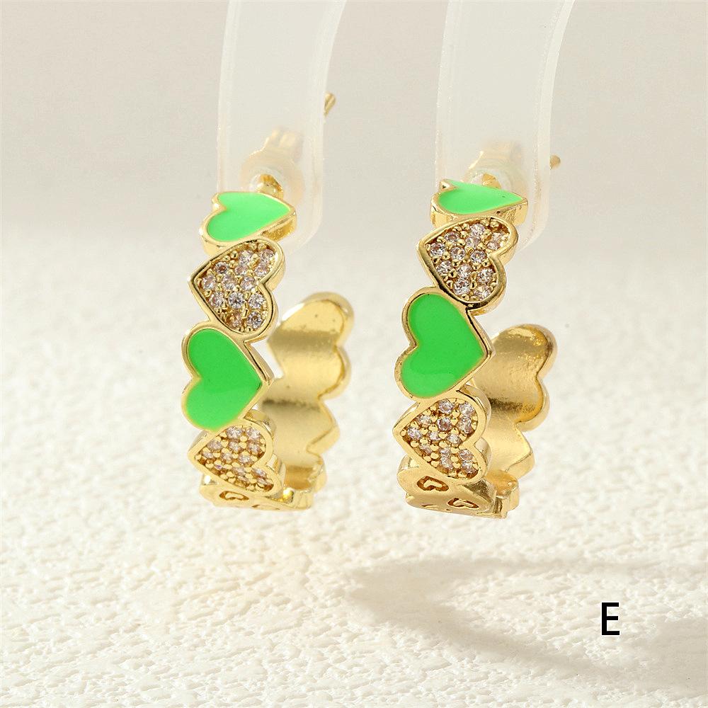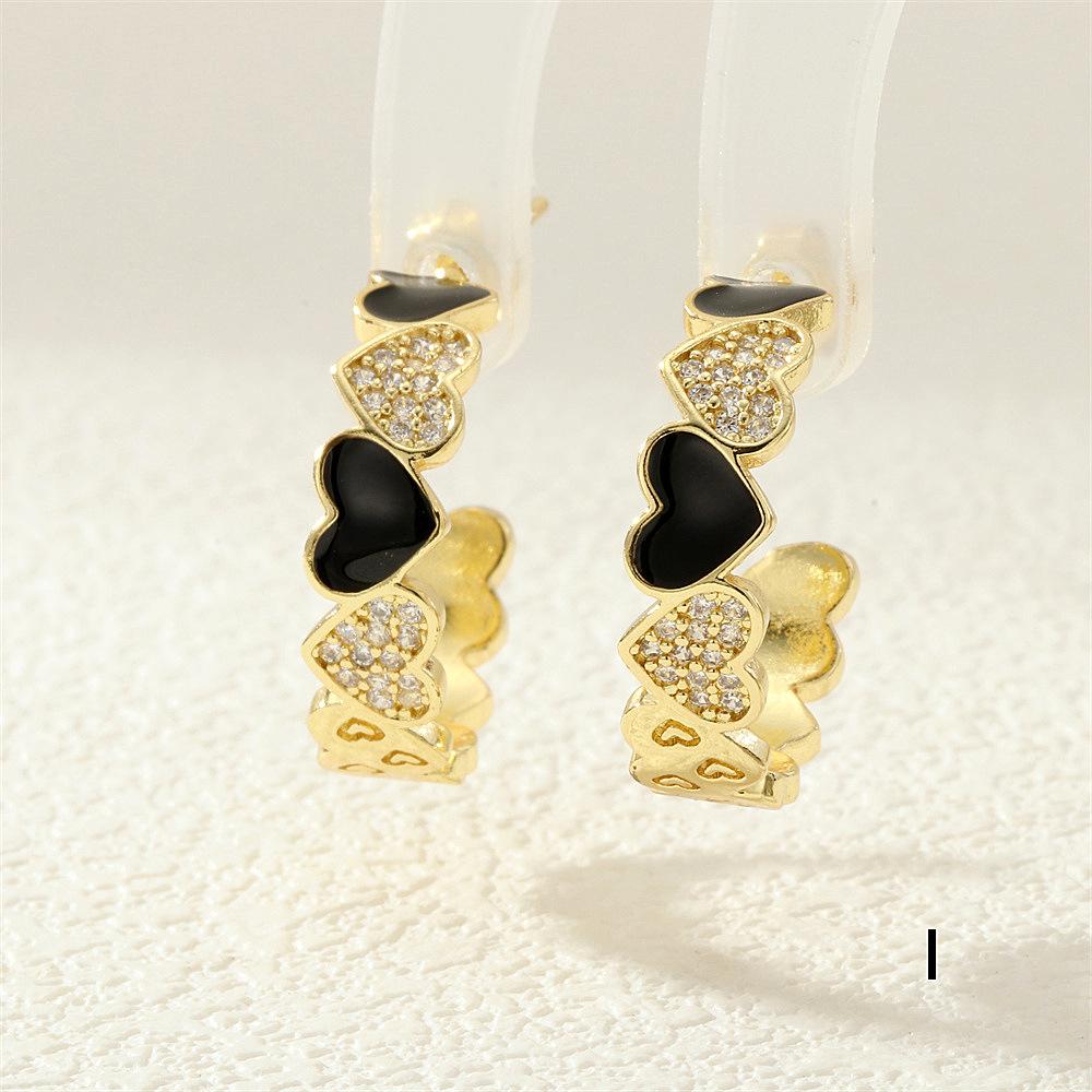 Aretes de Corazón de Durazno Electrochapados en Oro Real Diseño de Circonita en Forma de Corazón Gota de Aceite Aro Grande en Forma de C Accesorios Avanzados Europeos y Americanos