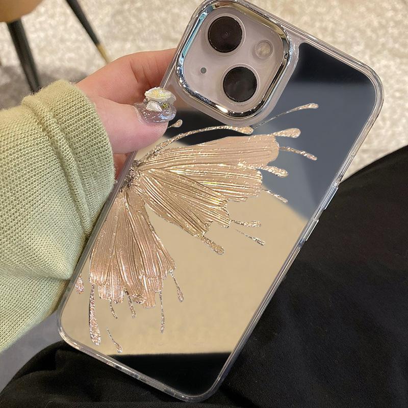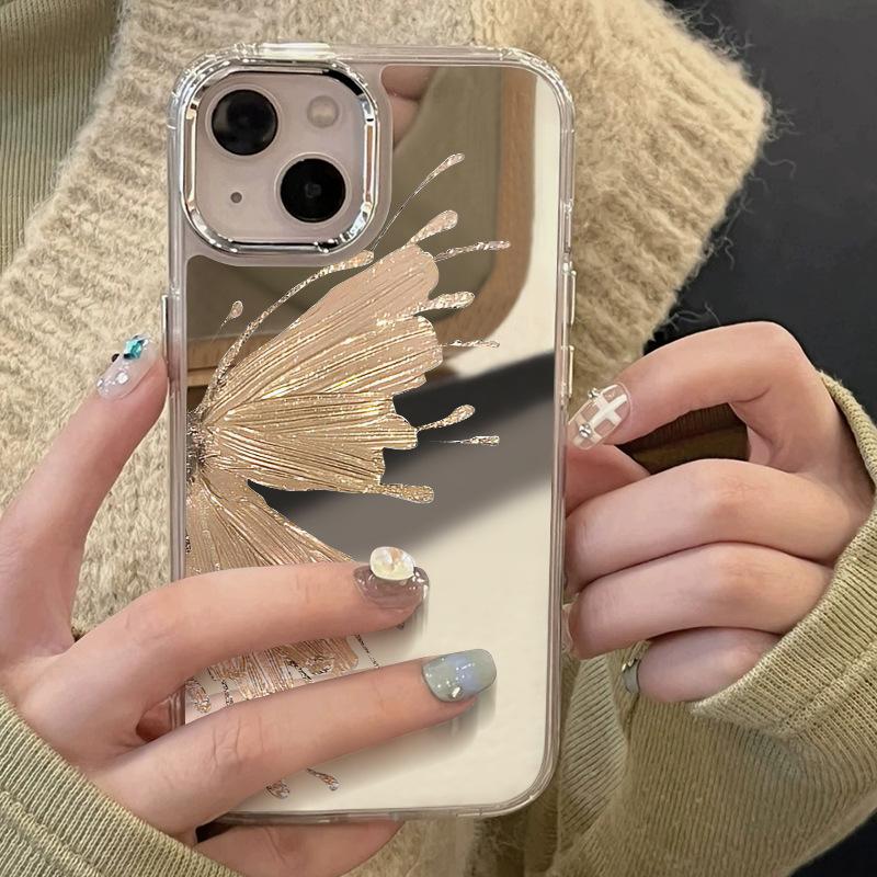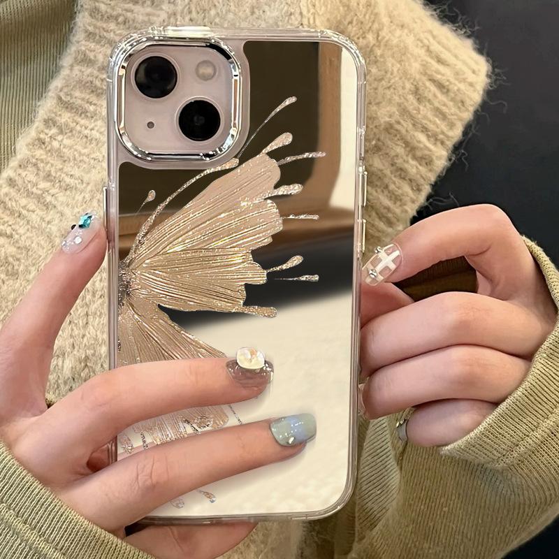 Mariposa Dorada iPhone16Promax Marco Plateado Espejo 14 Apple 15 Funda para Teléfono Móvil 12 Agujero Grande 14 Resistente a Caídas xs/x
