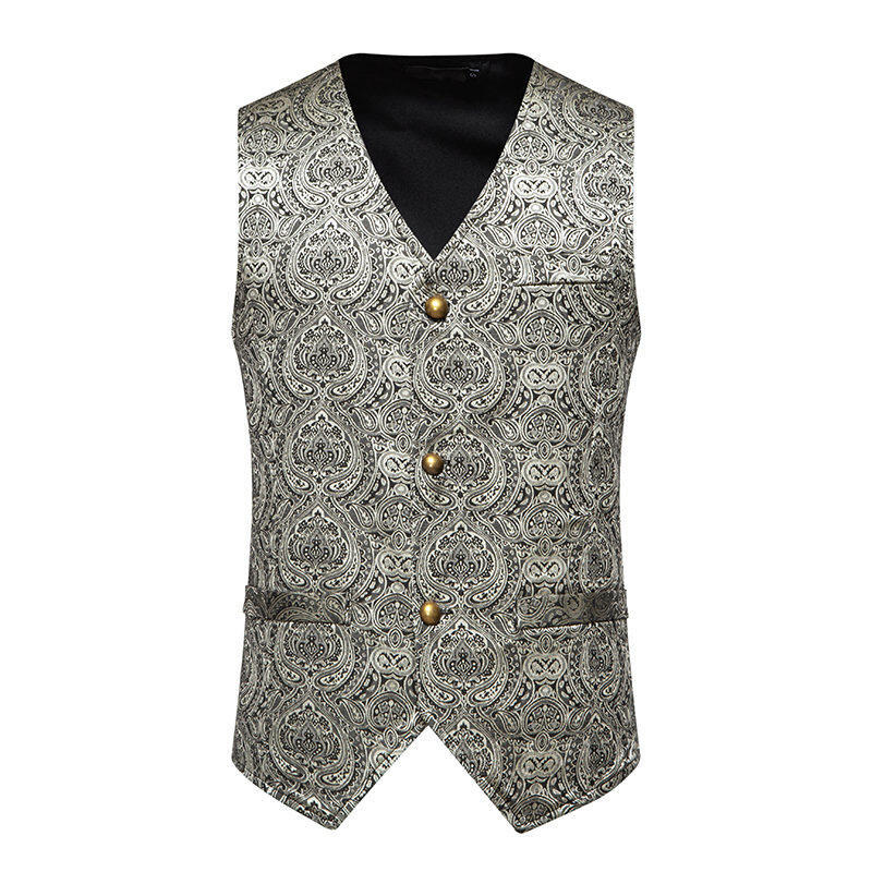2025 Primavera y Otoño Comercio Exterior Nuevo Chaleco Retro de Flores para Hombre Transfronterizo Chaleco de Traje Casual Holgado para Hombre