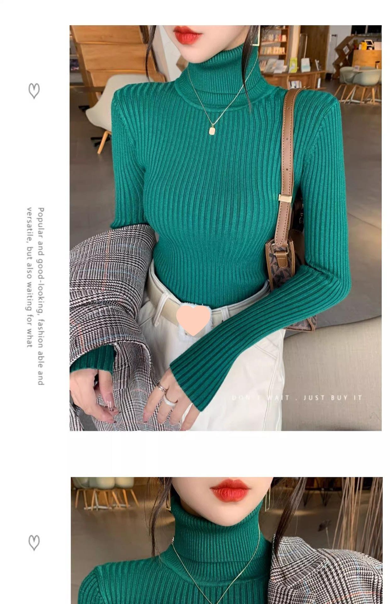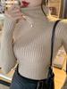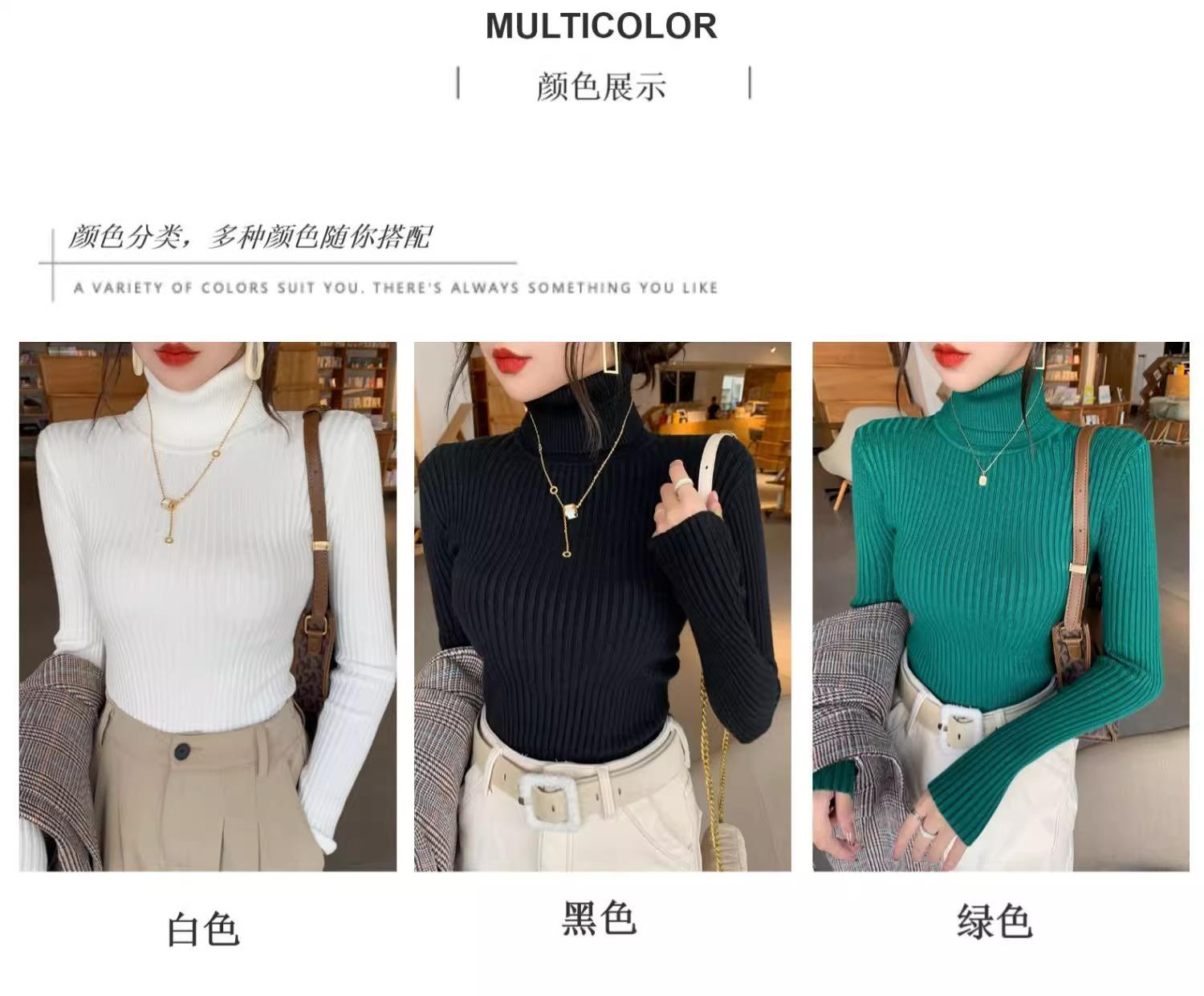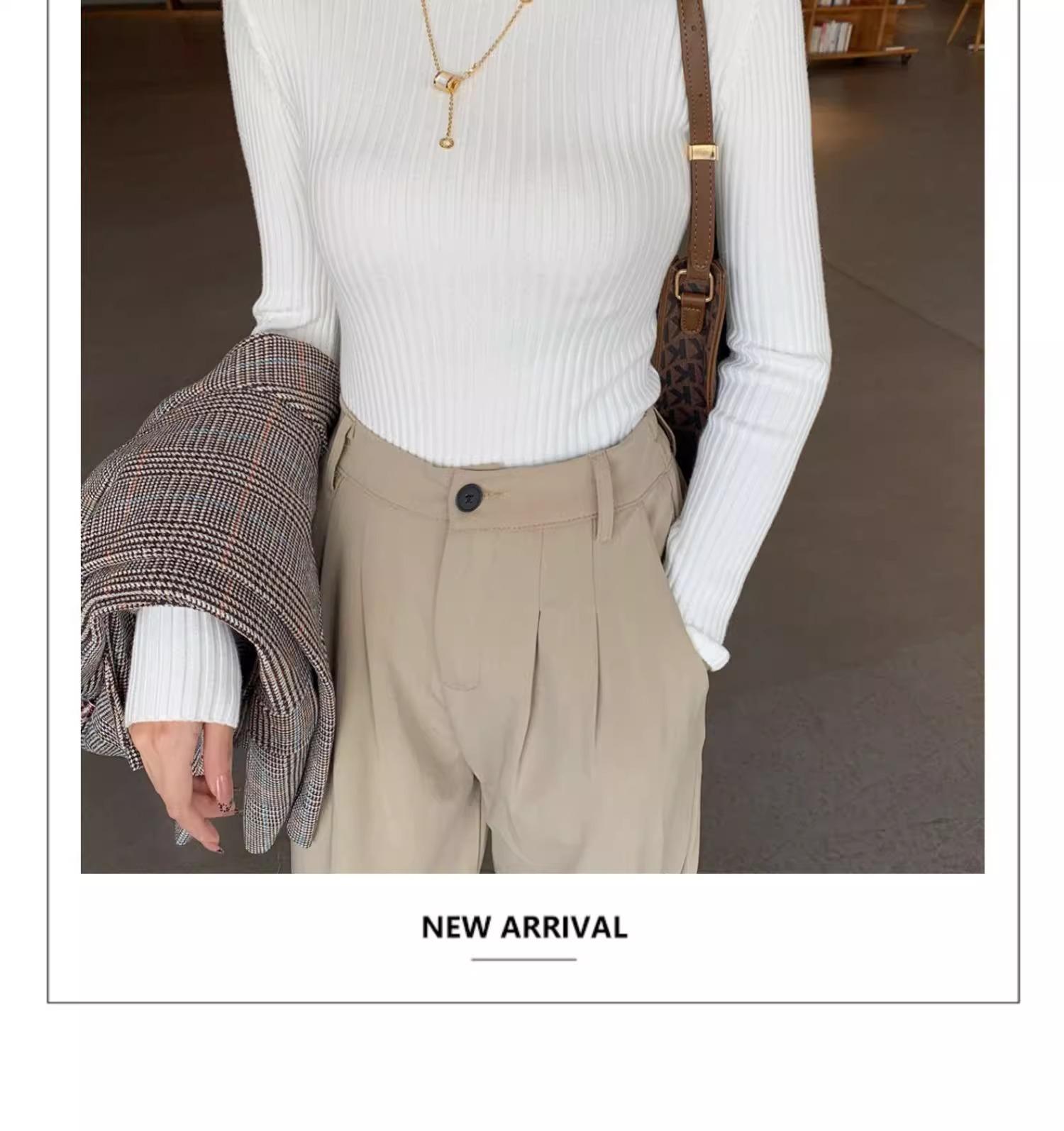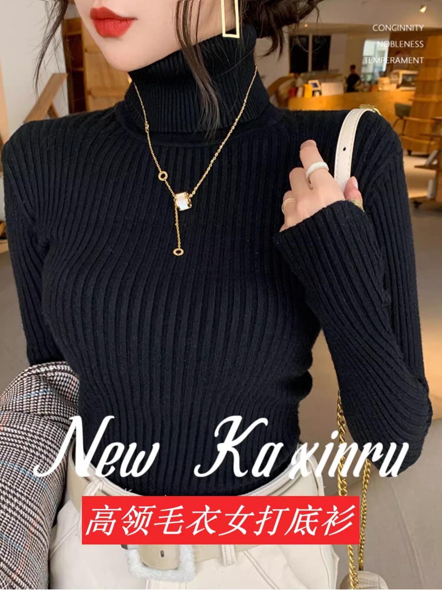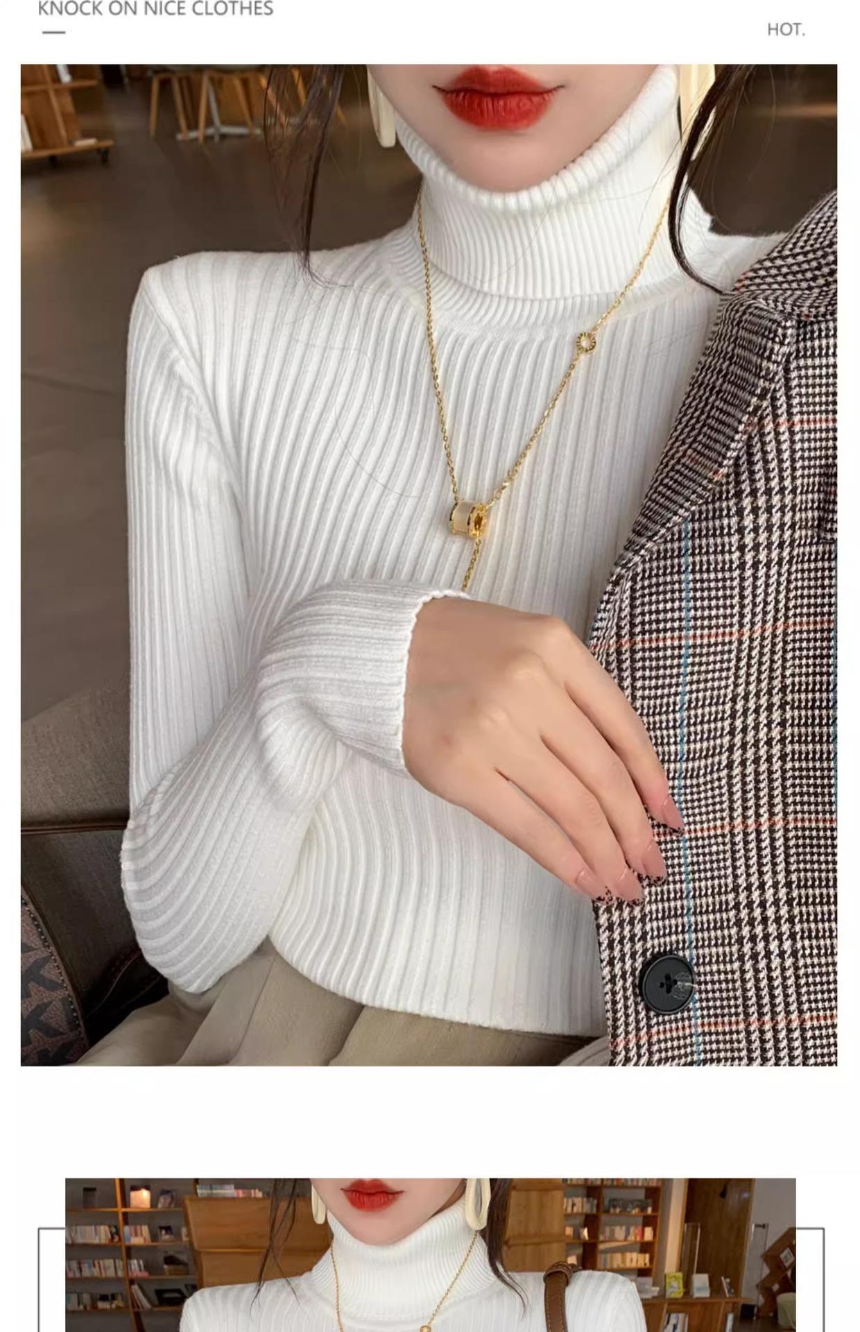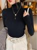Camiseta Básica de Cuello Alto para Mujer 2024 Otoño e Invierno Nuevo Estilo Prendas de Punto Interiores Versátil de Manga Larga Tejido de Punto Blanco Top Ajustado