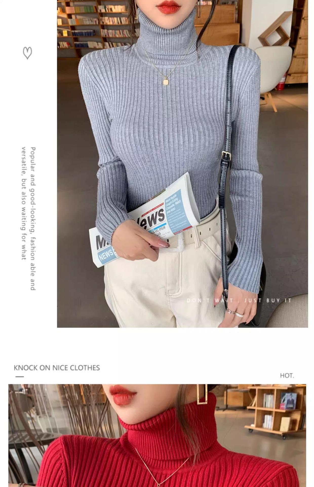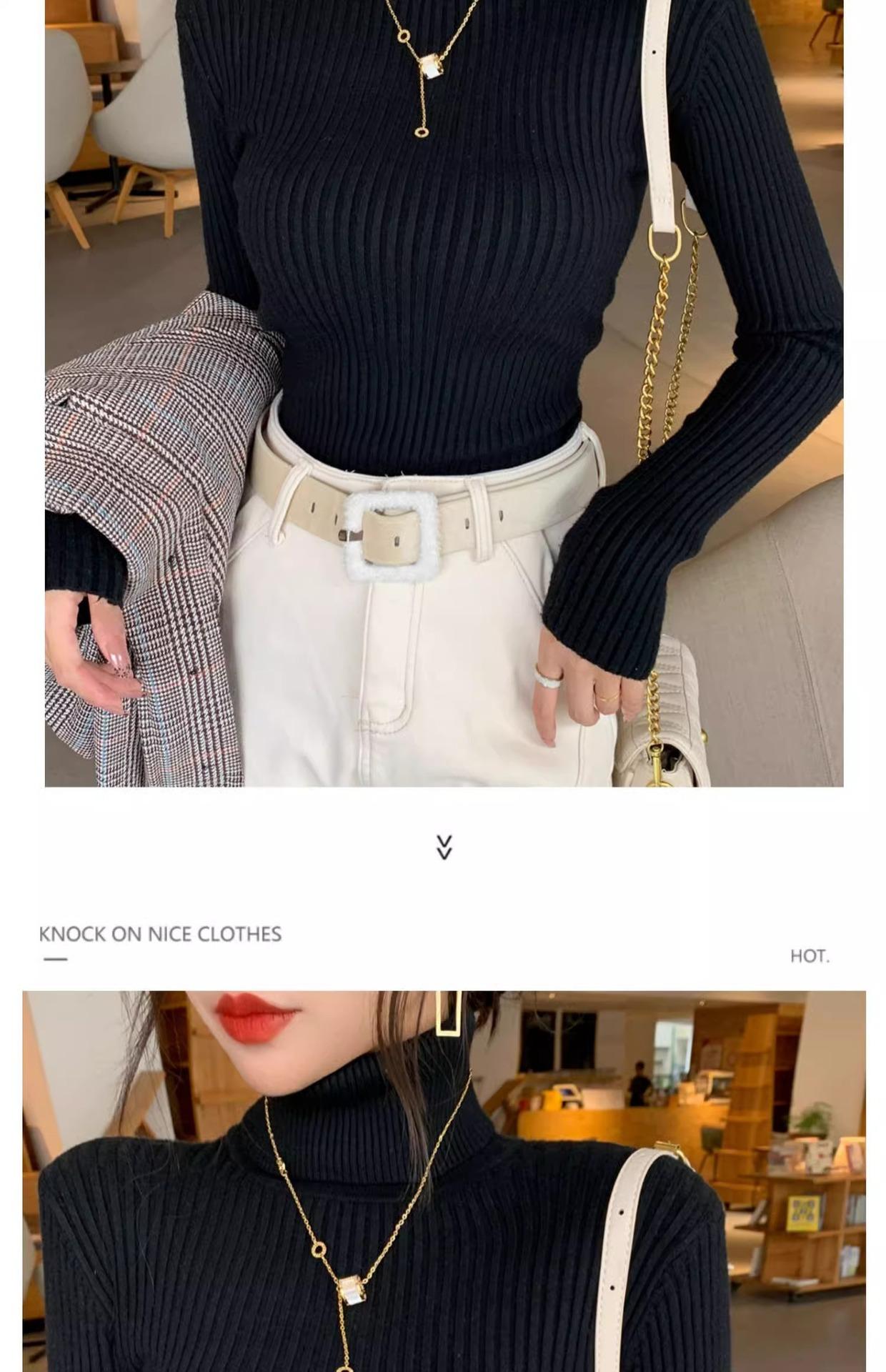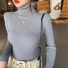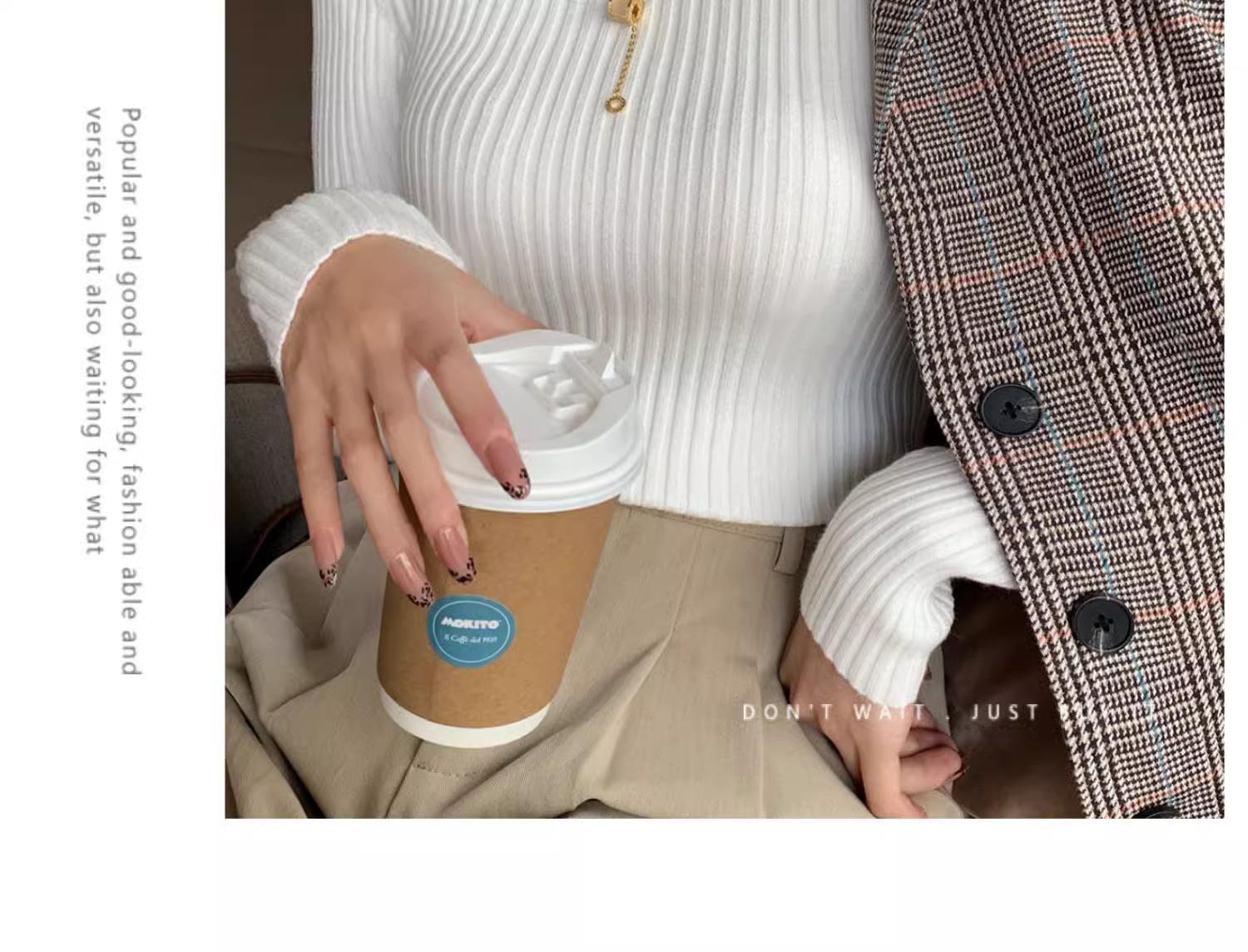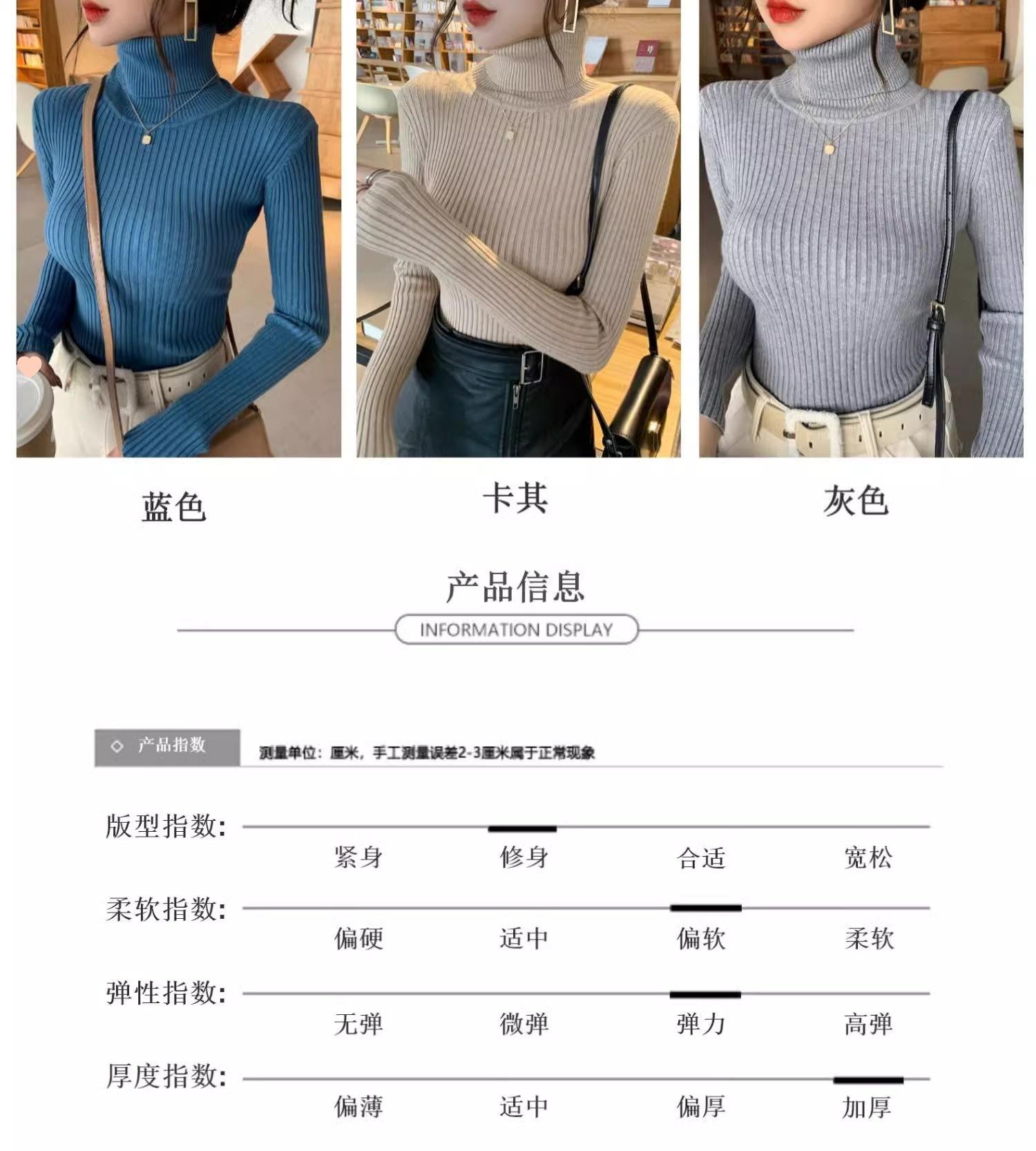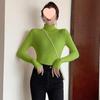 Camiseta Básica de Cuello Alto para Mujer 2024 Otoño e Invierno Nuevo Estilo Prendas de Punto Interiores Versátil de Manga Larga Tejido de Punto Blanco Top Ajustado