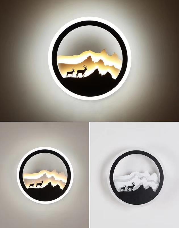 Lámpara de pared de fondo de carretera de acrílico LED nórdico súper brillante creativa para dormitorio y sala de estar, lámpara de noche posmoderna simple
