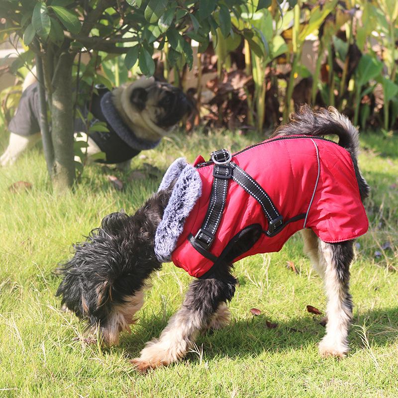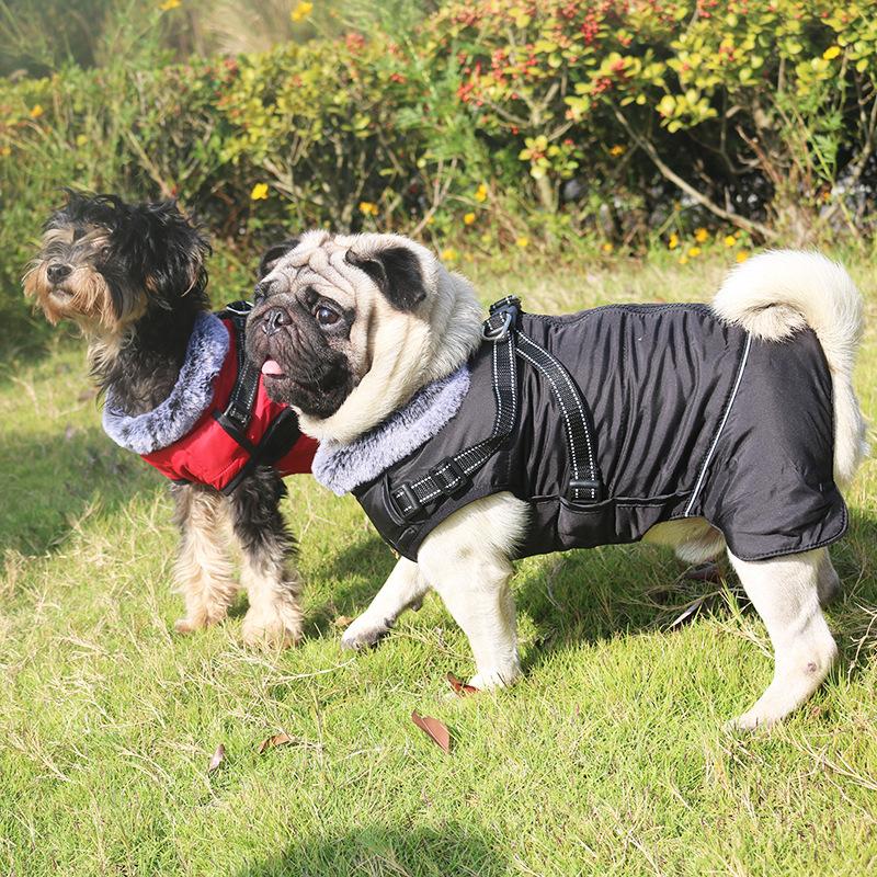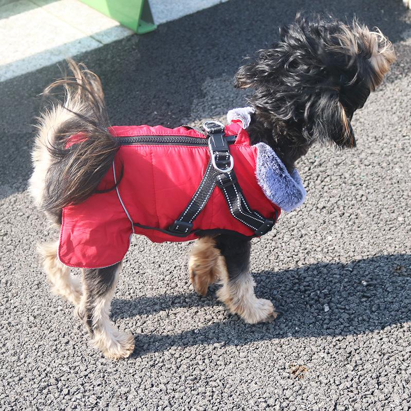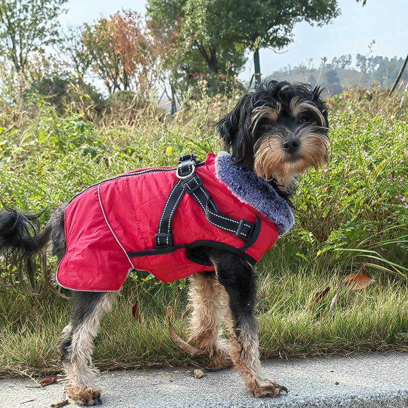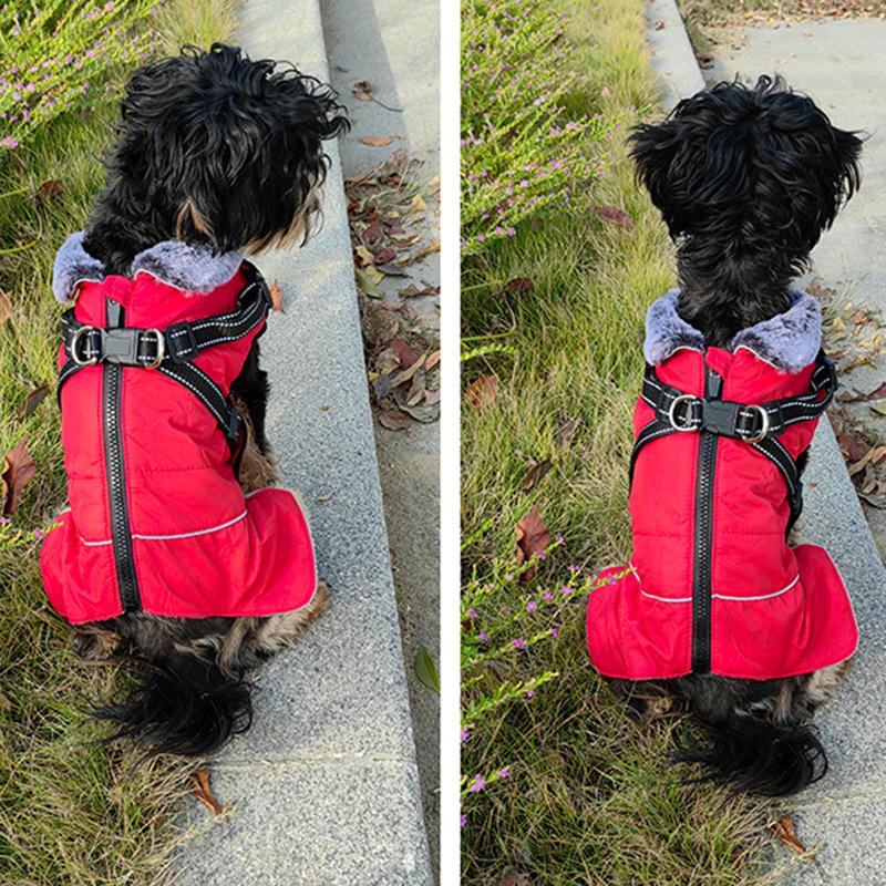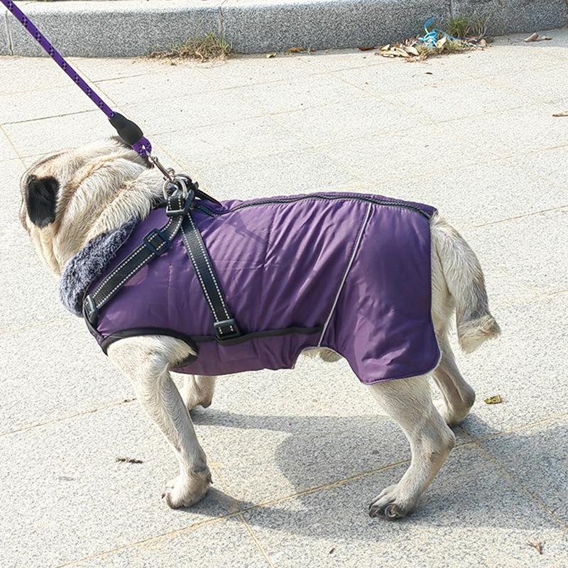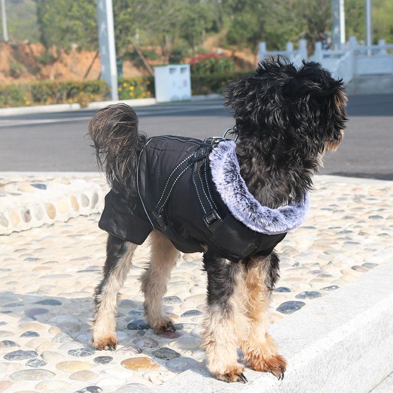 Otoño e Invierno ropa cálida para mascotas con forro polar y acolchado de algodón, reflectante, impermeable, a prueba de frío, con cuello de piel, ropa para perros pequeños, medianos y grandes, chaqueta