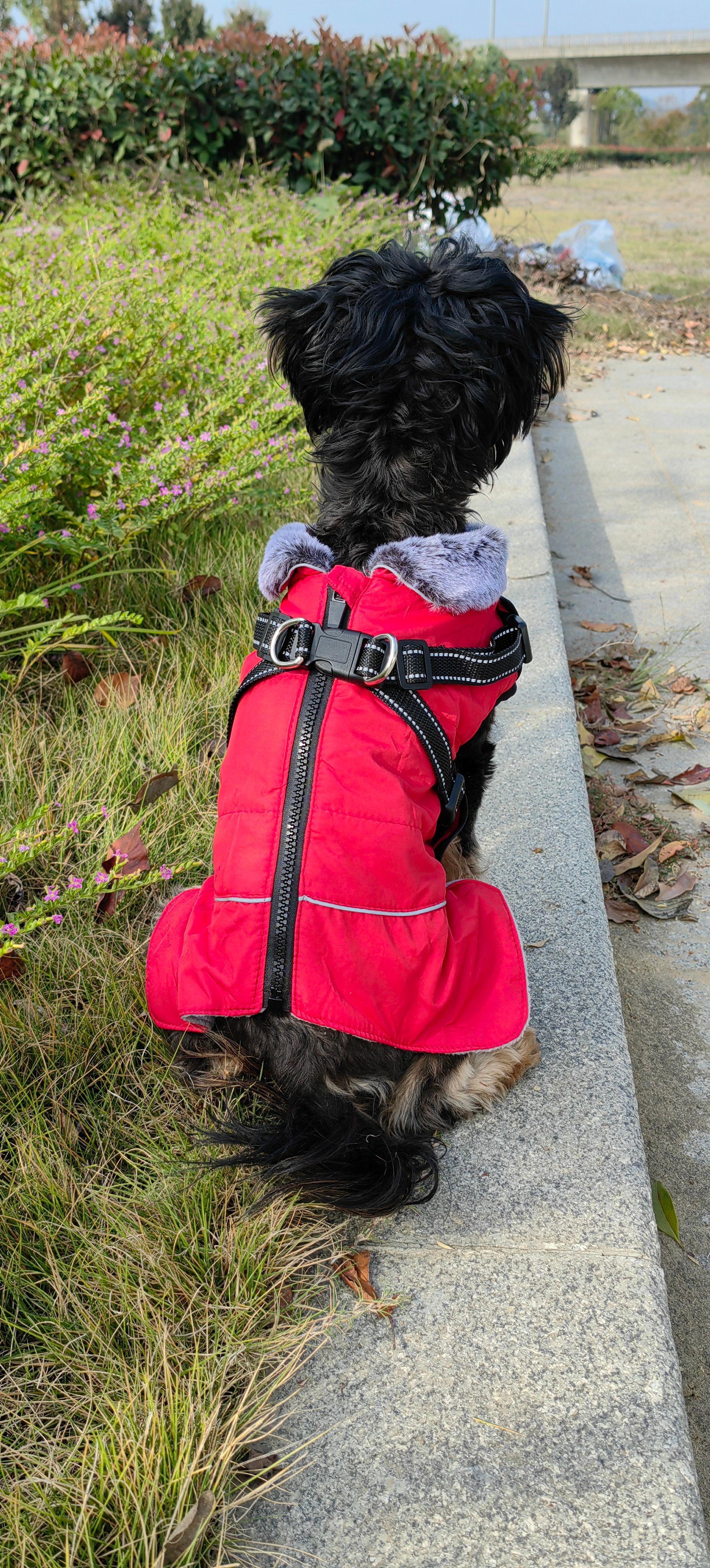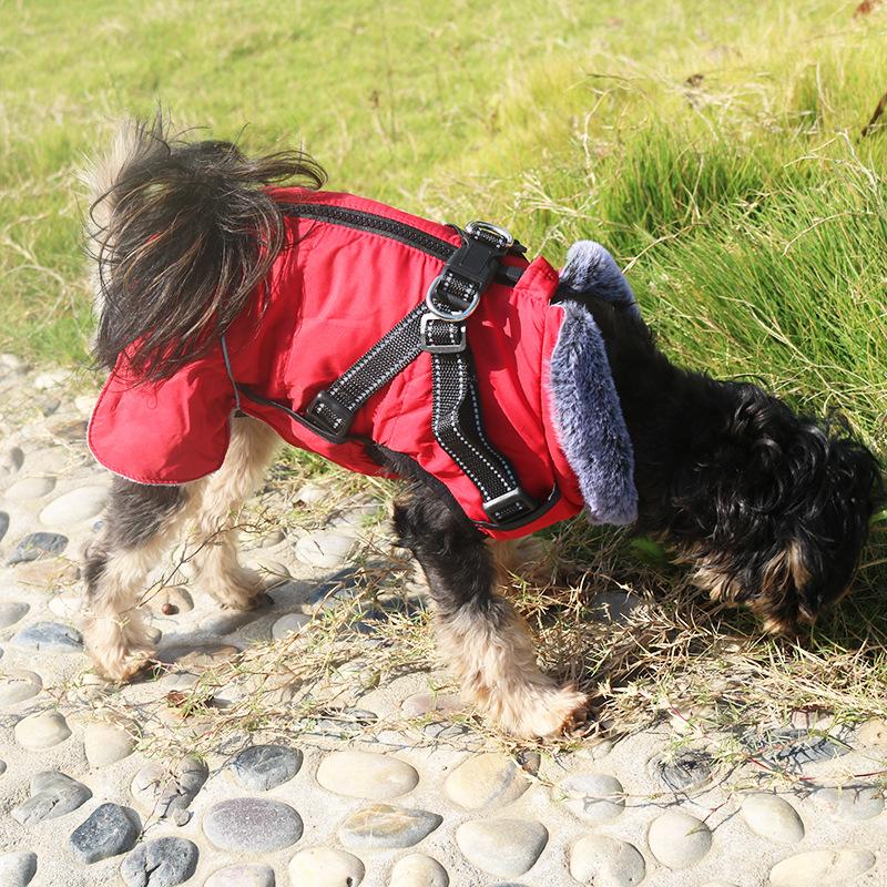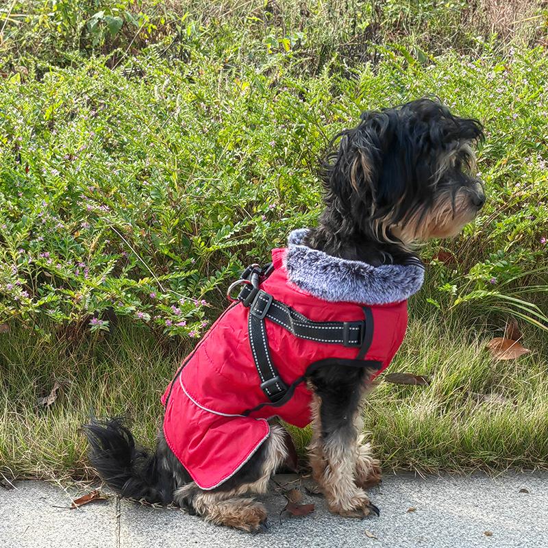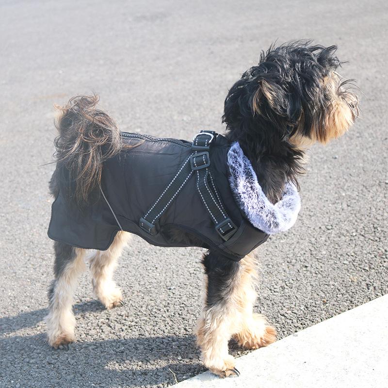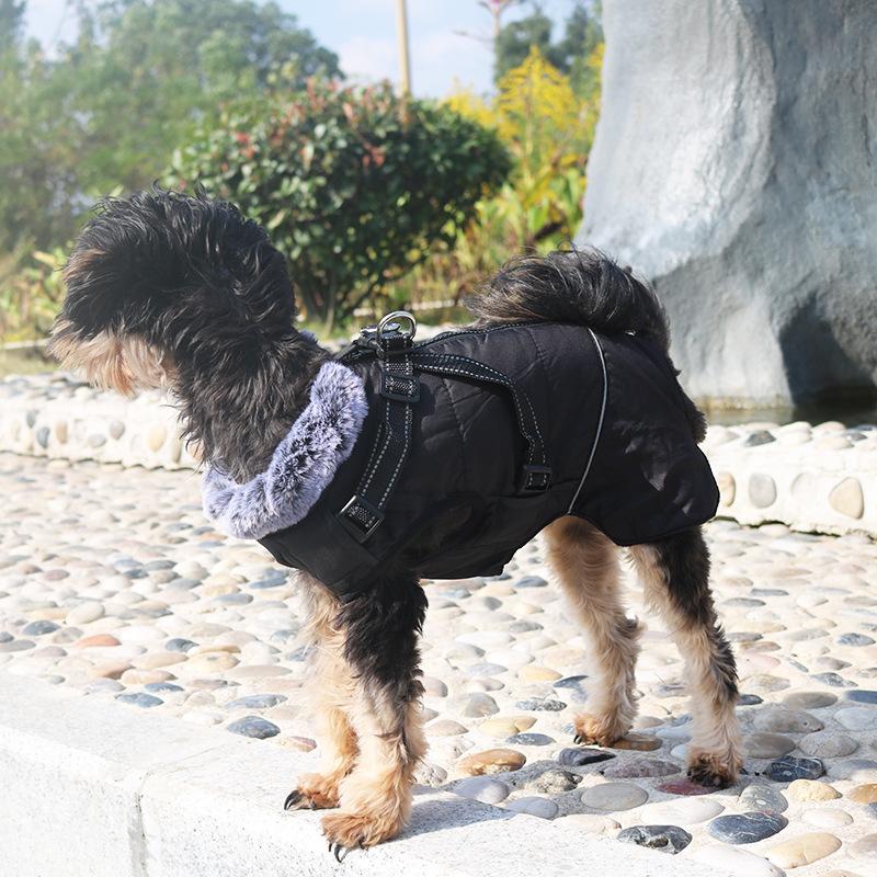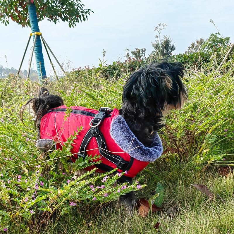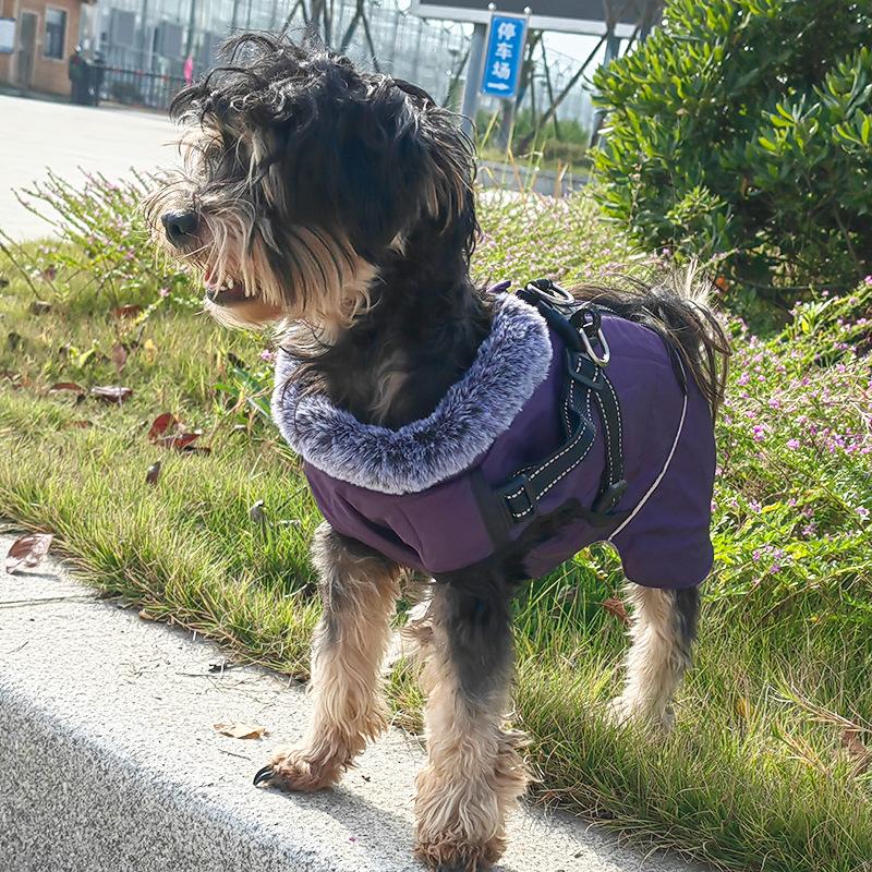 Otoño e Invierno ropa cálida para mascotas con forro polar y acolchado de algodón, reflectante, impermeable, a prueba de frío, con cuello de piel, ropa para perros pequeños, medianos y grandes, chaqueta