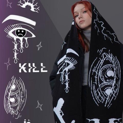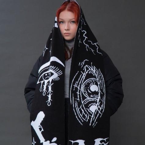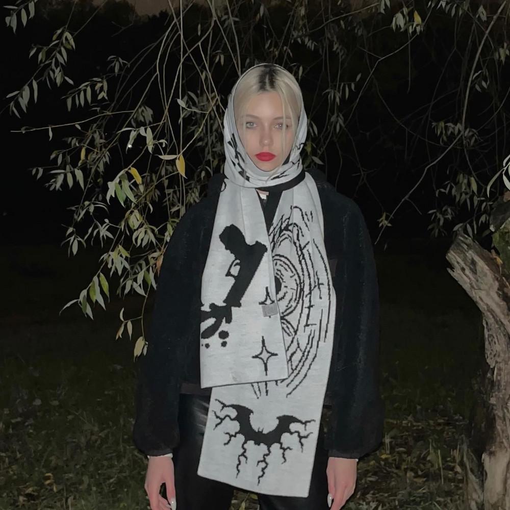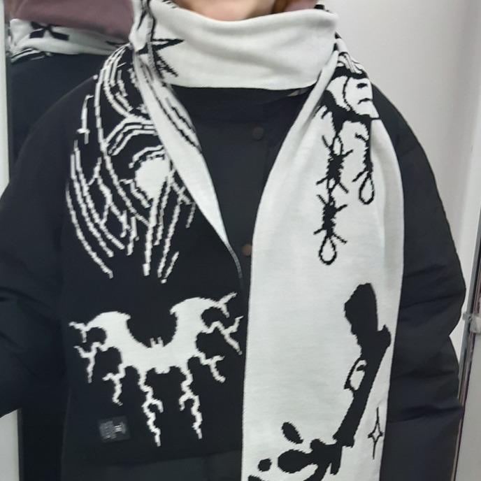 Bufanda de jacquard de doble cara con estampado de dibujos animados góticos de otoño e invierno, bufanda de marca de moda cálida y combinable, chal, accesorios