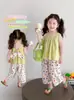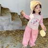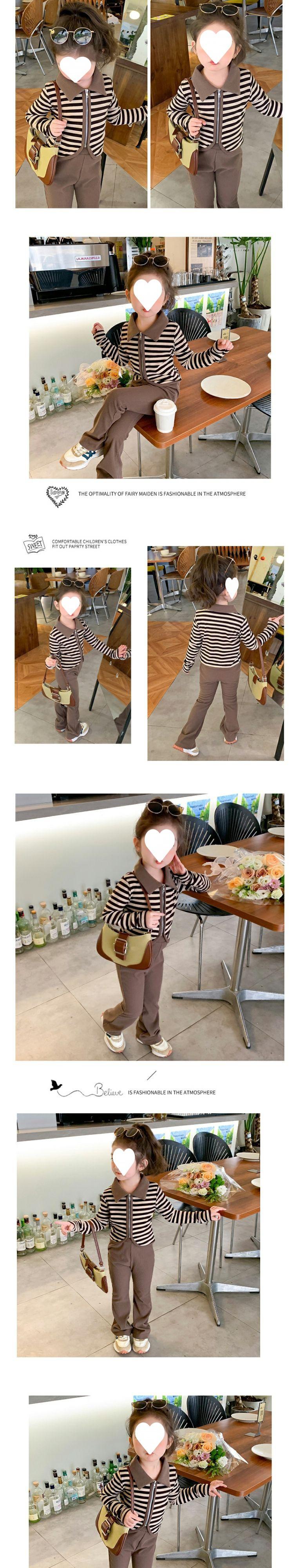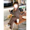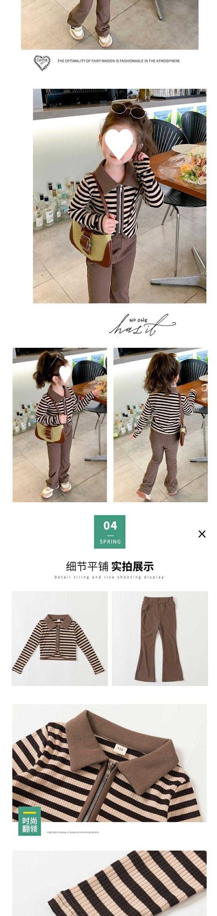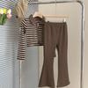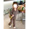 Comercio Exterior Ropa para Niños al por Mayor Trajes para Niñas 25 Primavera y Otoño Nuevo Conjunto de Dos Piezas para Niños con Tops de Rayas con Cremallera y Pantalones Acampanados