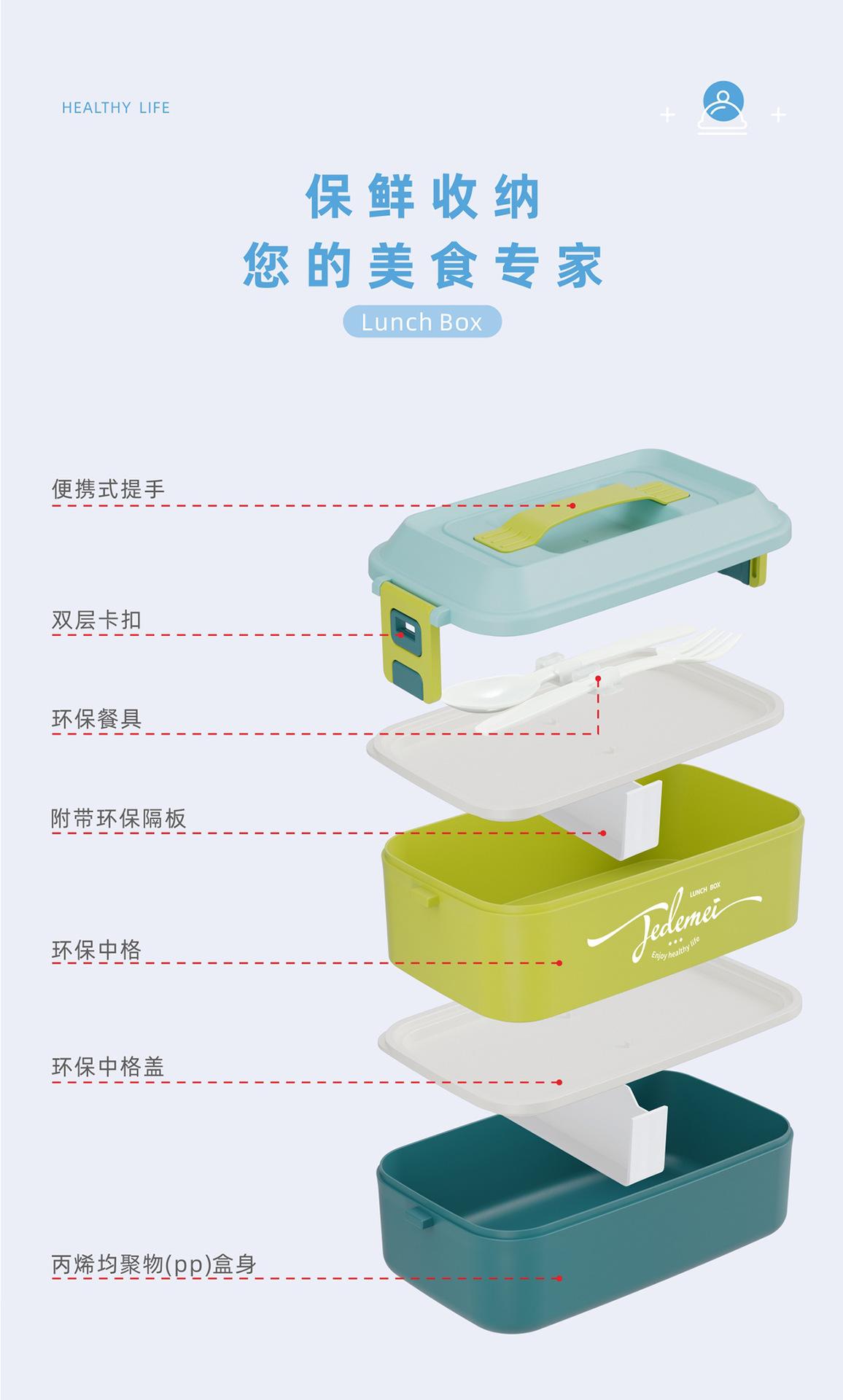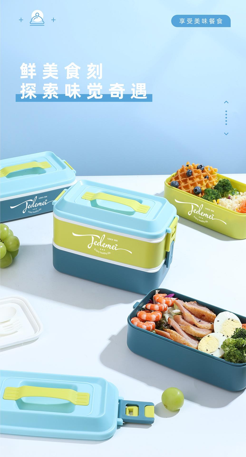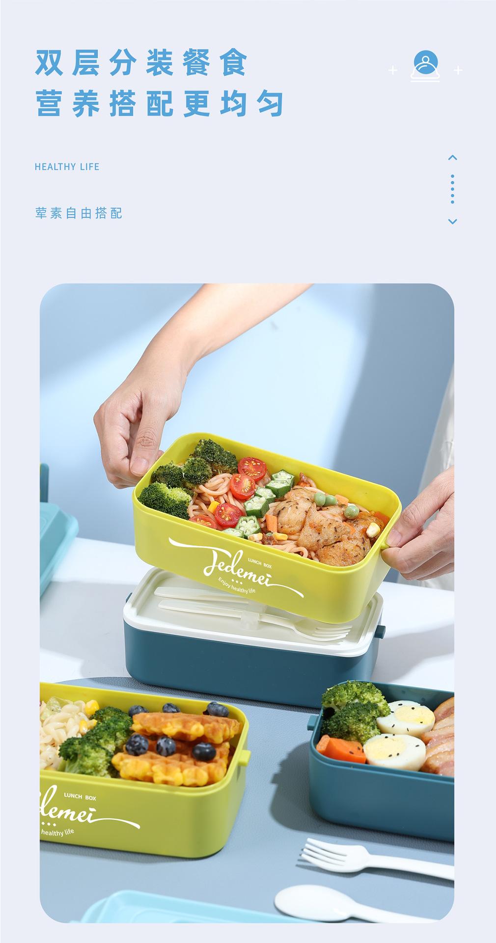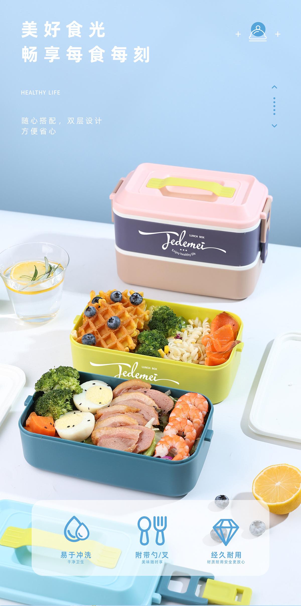 Nombre del producto: Modelo B: Lonchera de plástico de doble capa estilo europeo, compartimento medio: 1L, compartimento inferior: 1L