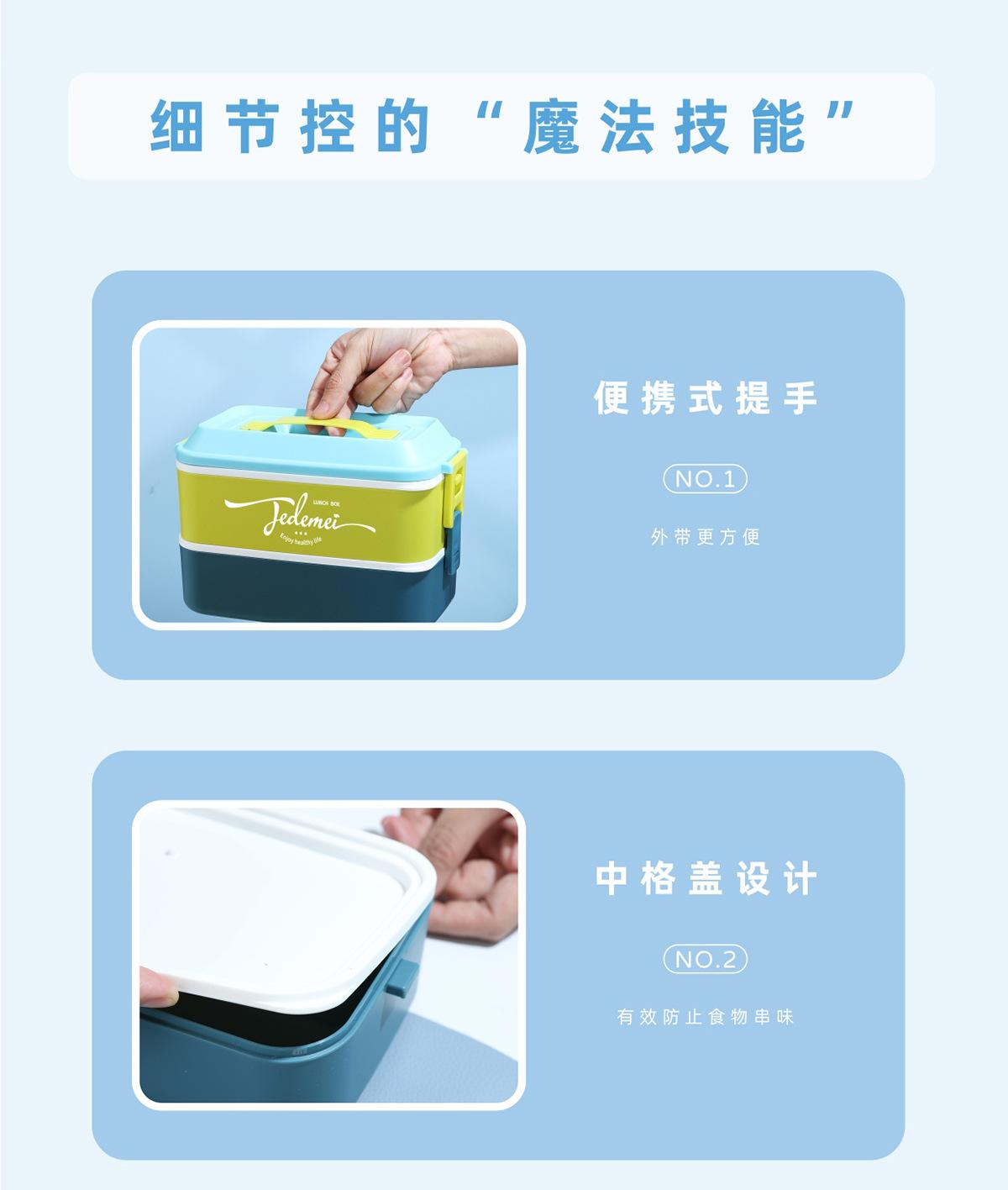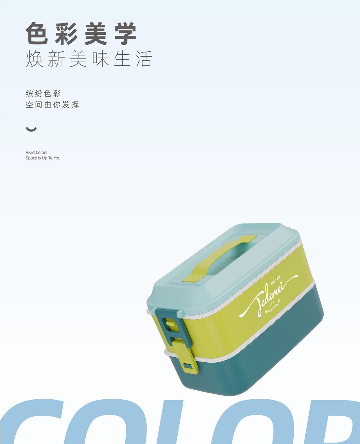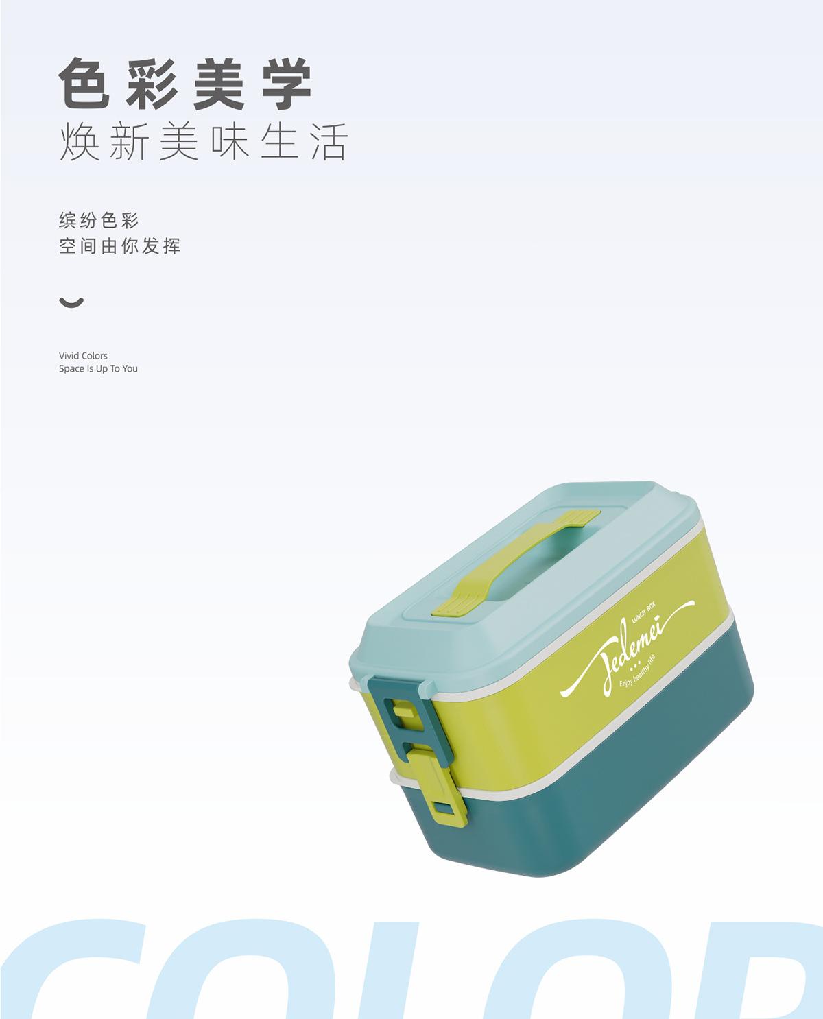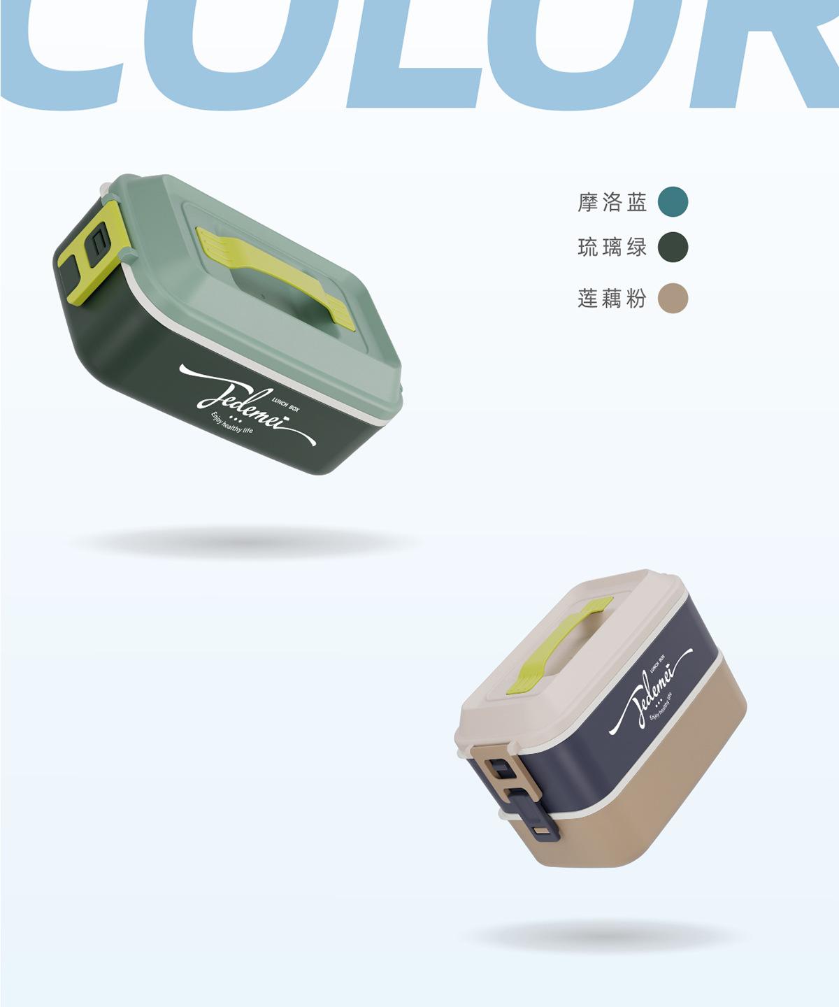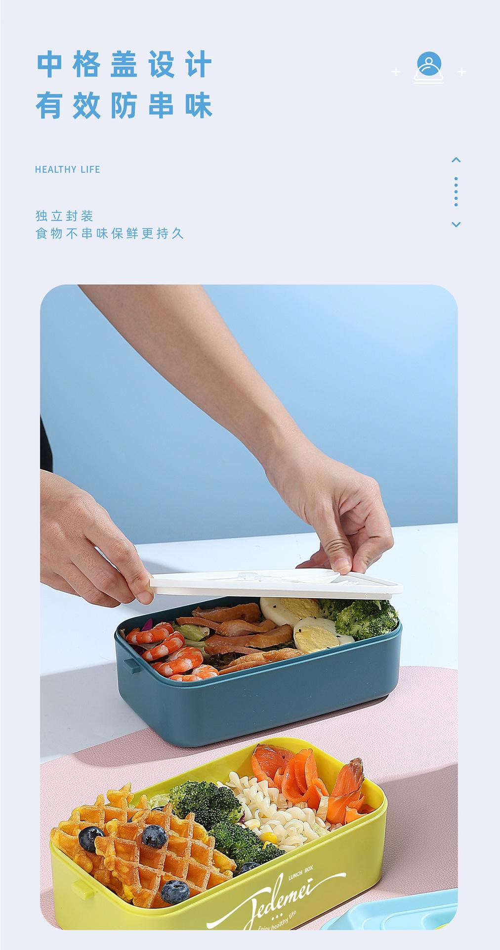 Nombre del producto: Modelo B: Lonchera de plástico de doble capa estilo europeo, compartimento medio: 1L, compartimento inferior: 1L