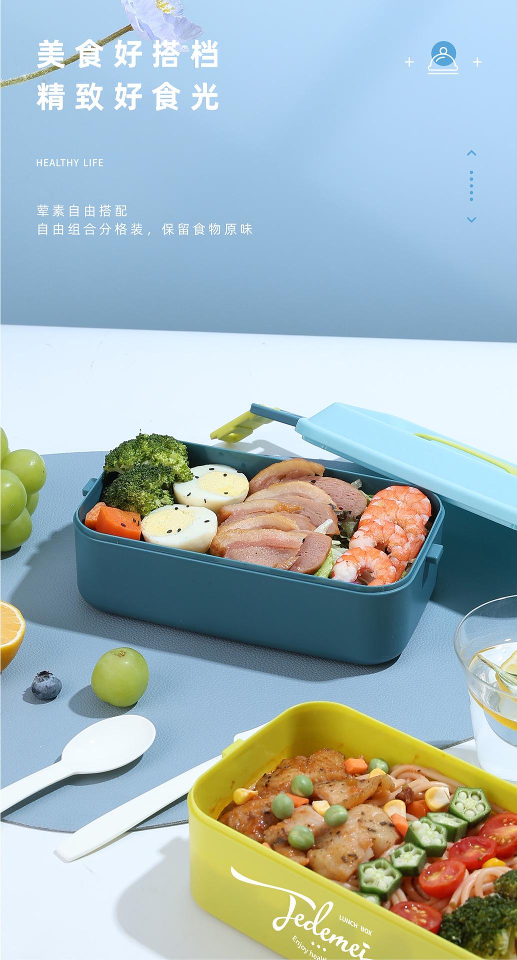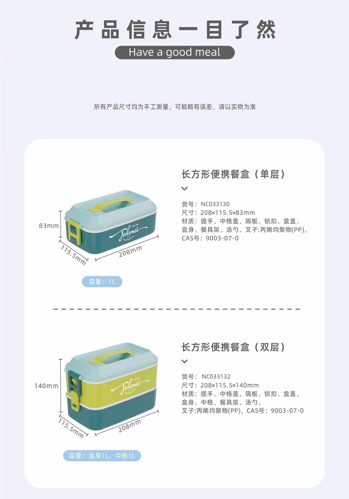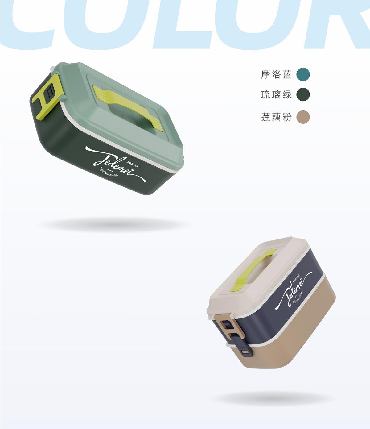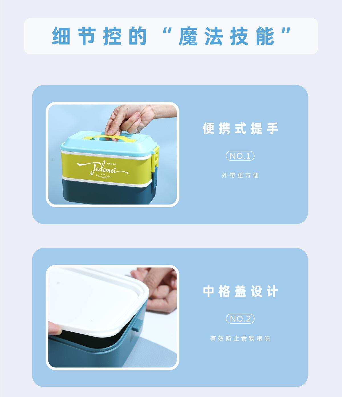 Nombre del producto: Modelo B: Lonchera de plástico de doble capa estilo europeo, compartimento medio: 1L, compartimento inferior: 1L