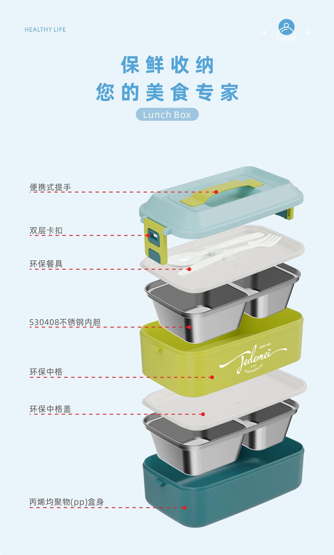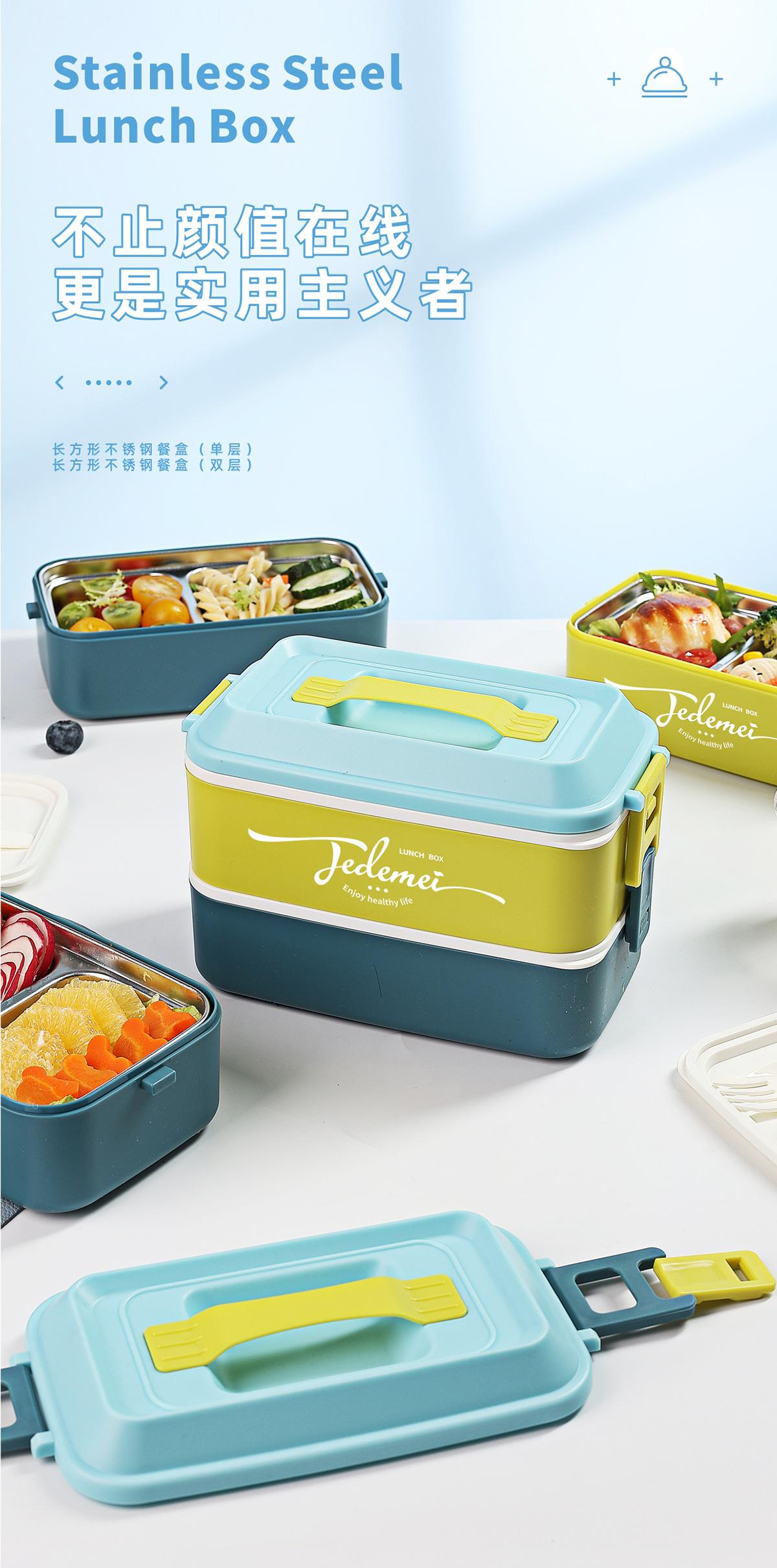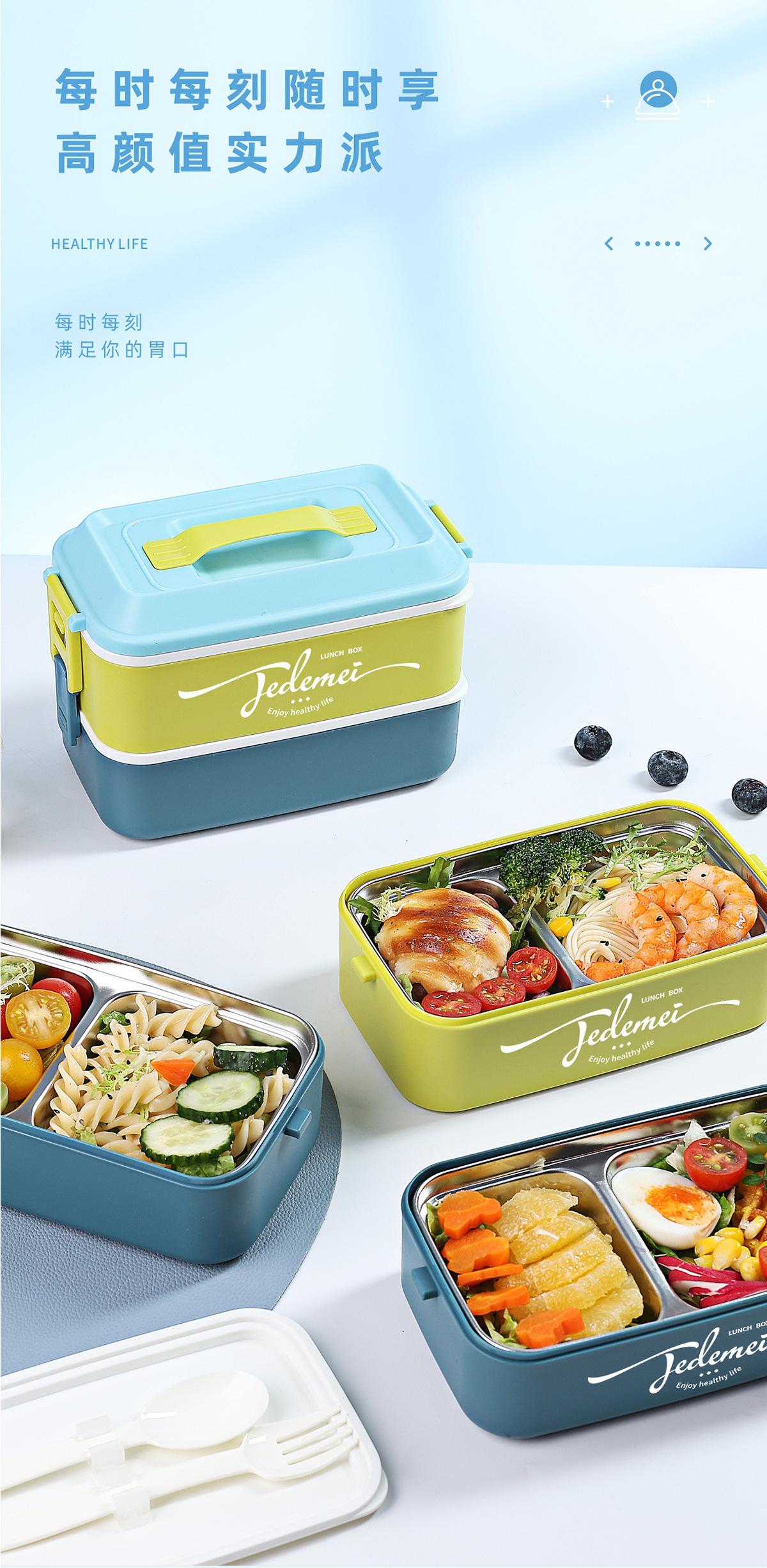 Nombre del producto: Modelo D: Lonchera de acero inoxidable de doble capa estilo europeo Acero inoxidable: 600*2, compartimento medio: 1L, compartimento inferior: 1L