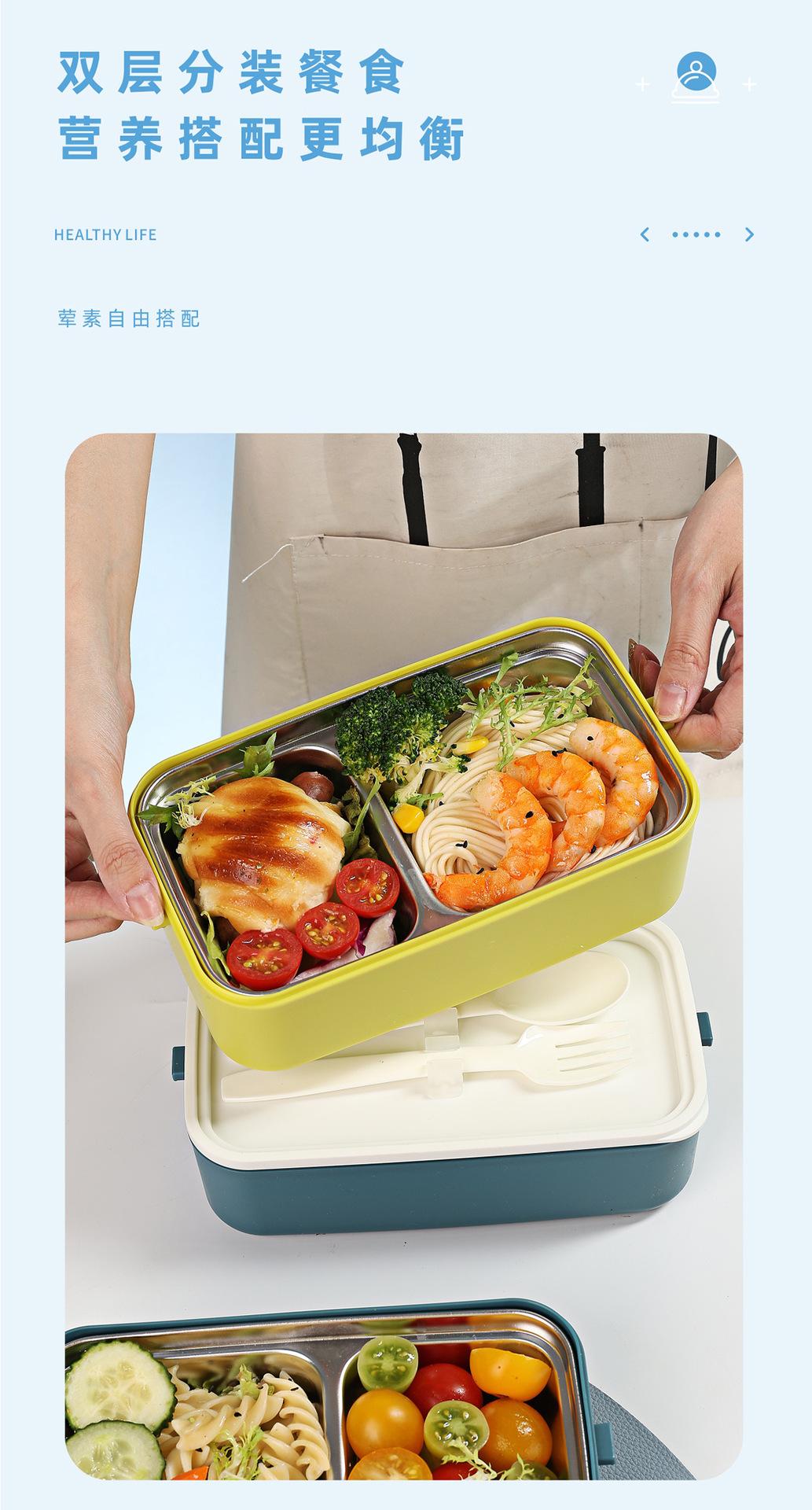 Lonchera aislada de acero inoxidable de doble capa para estudiantes y trabajadores de oficina con lonchera sellada con compartimento, lonchera portátil de plástico con comidaHerramienta