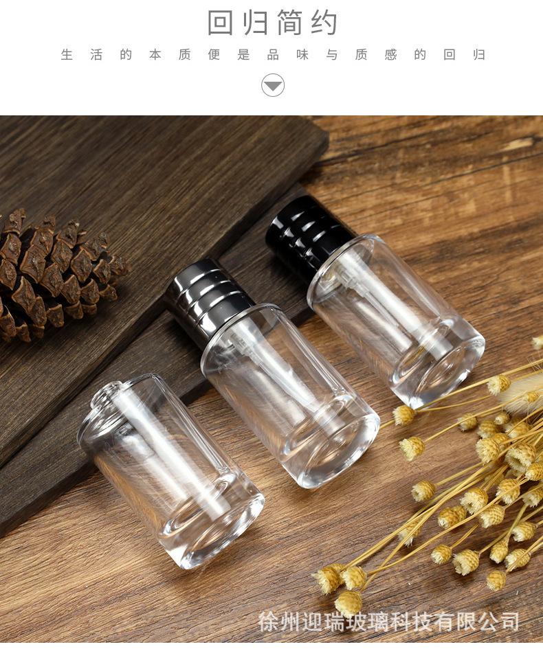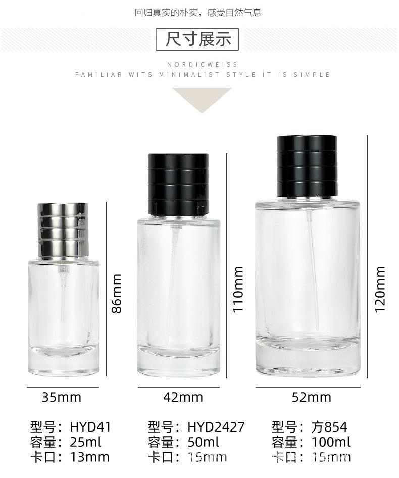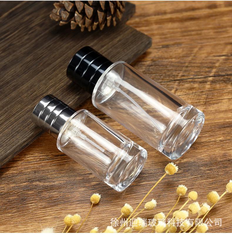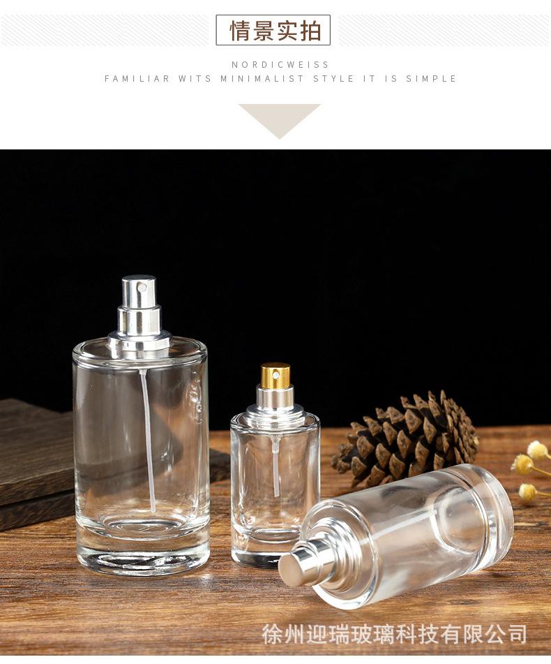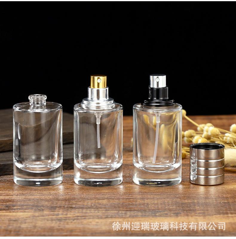 Botella de spray de vidrio transparente con bayoneta redonda de 50 ml, envase de tóner, botella vacía, botella de perfume de 100 ml, venta al por mayor