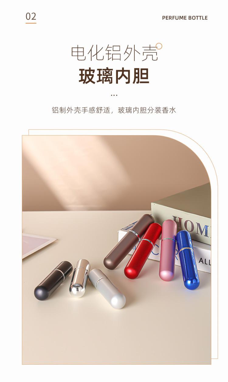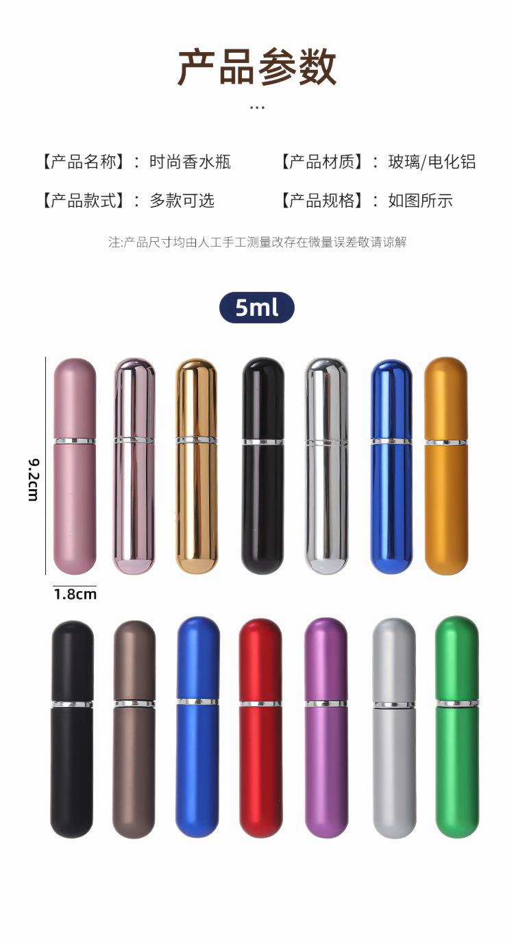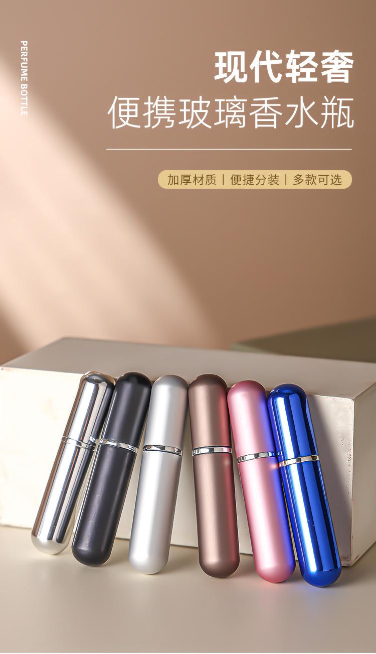 Botella de Perfume Recargable de 5ml Personalizada Cabeza Redonda Aluminio Electroquímico Mate Portátil Botella de Spray Cosmético Botella de Vidrio