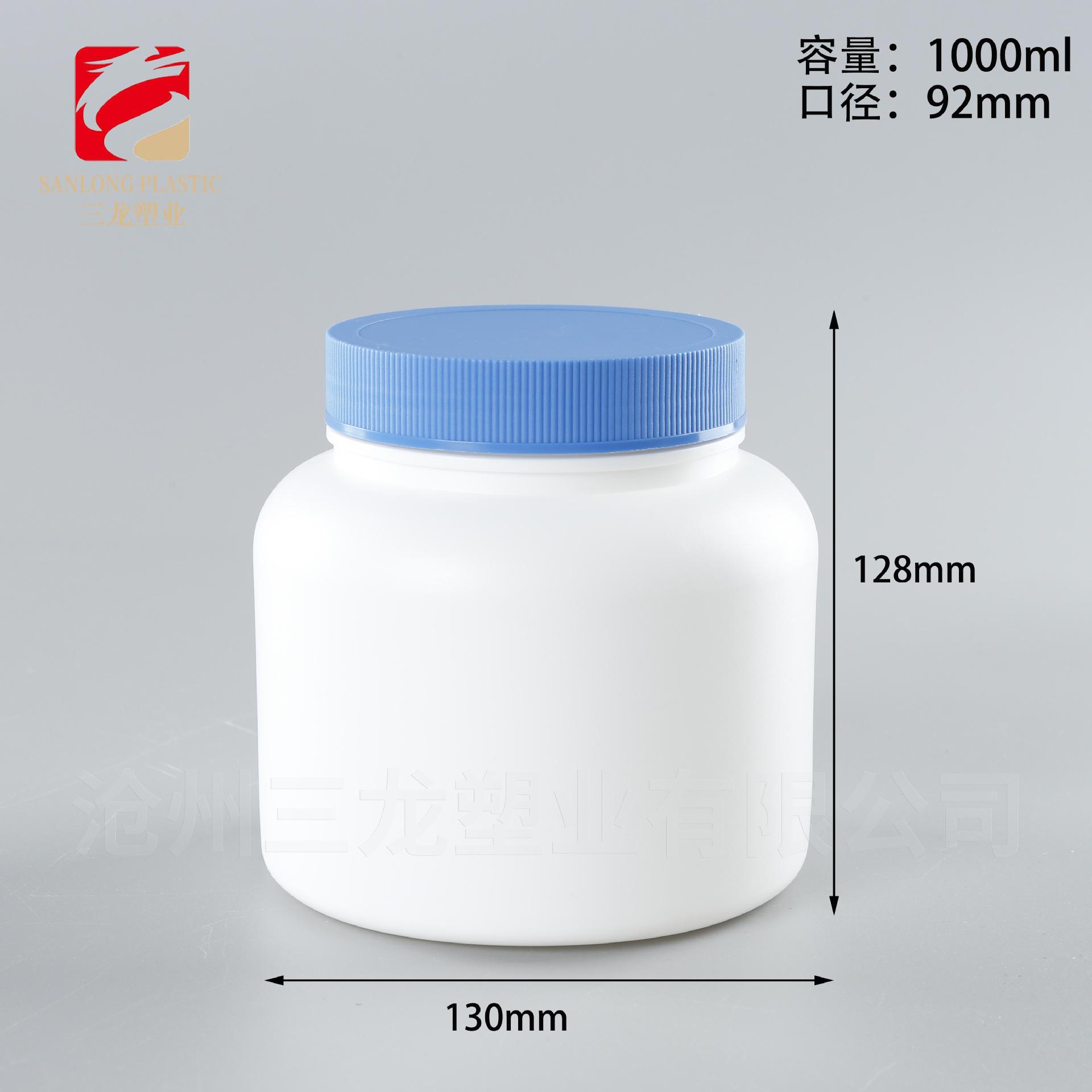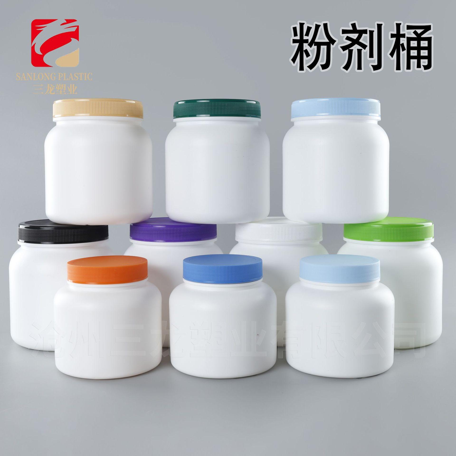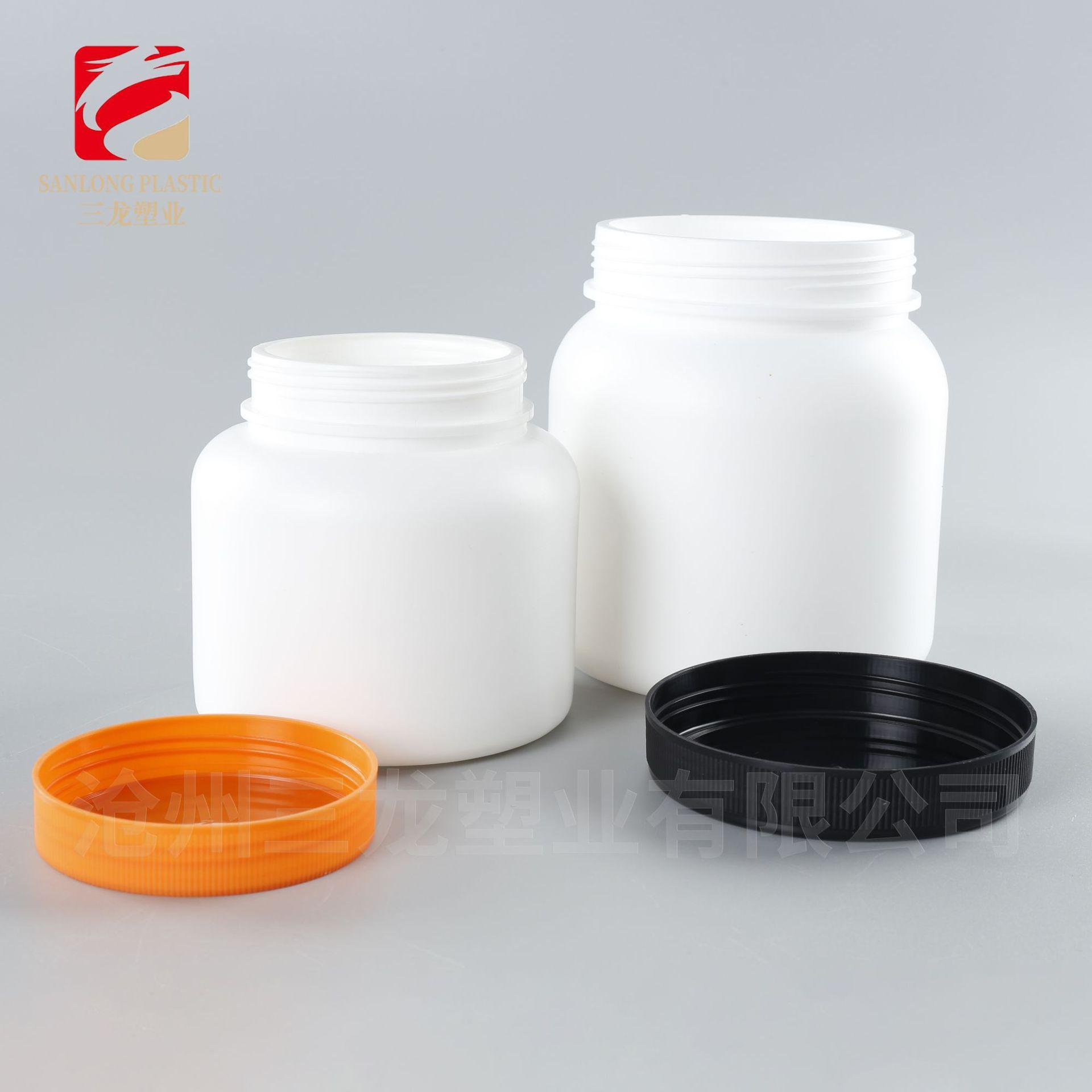Botella de Polvo Boca Ancha 1kg Alimento Polvo de Sésamo Negro Proteína Polvo para Construir Músculo Barril de Empaque Pe500G Botella Azul de Grasa