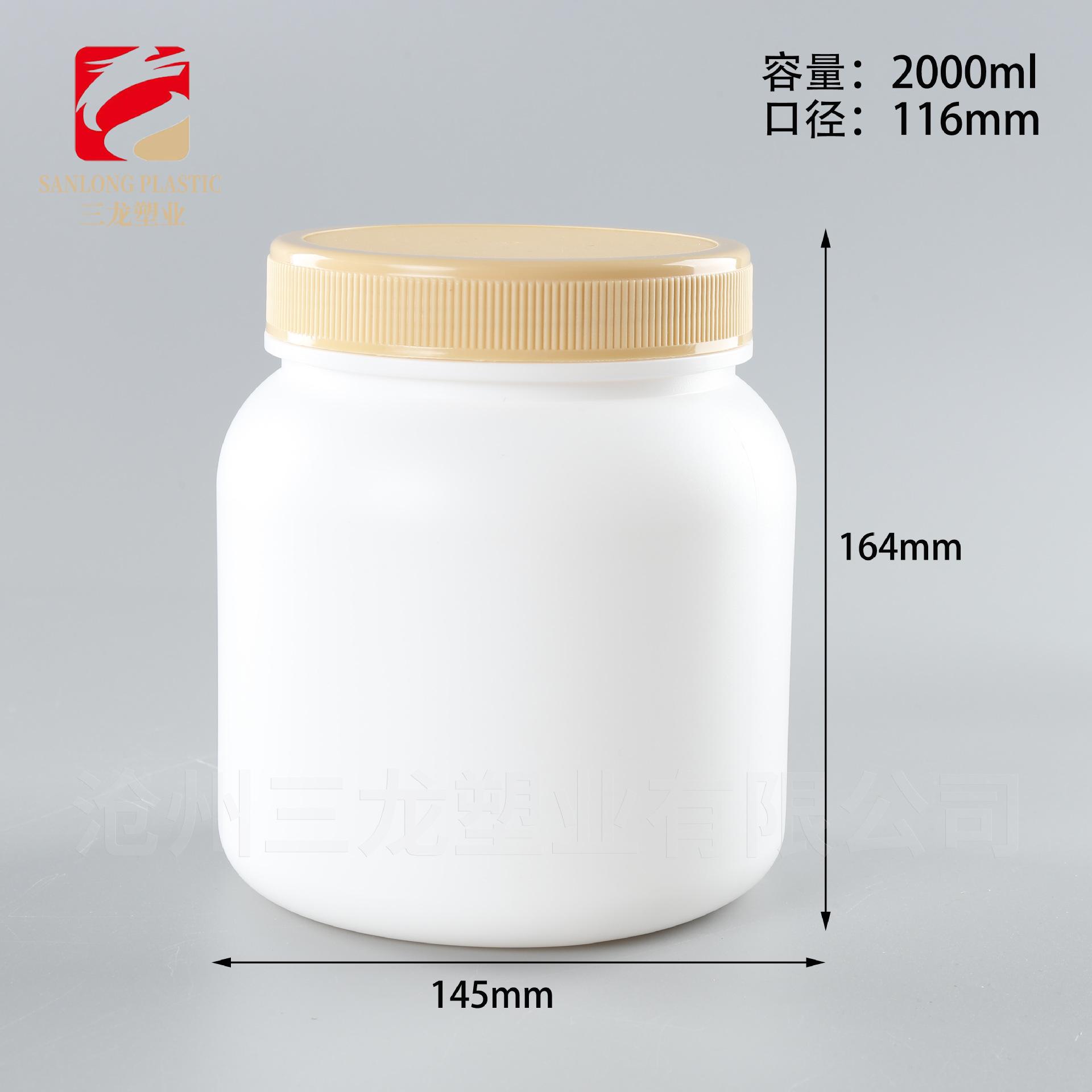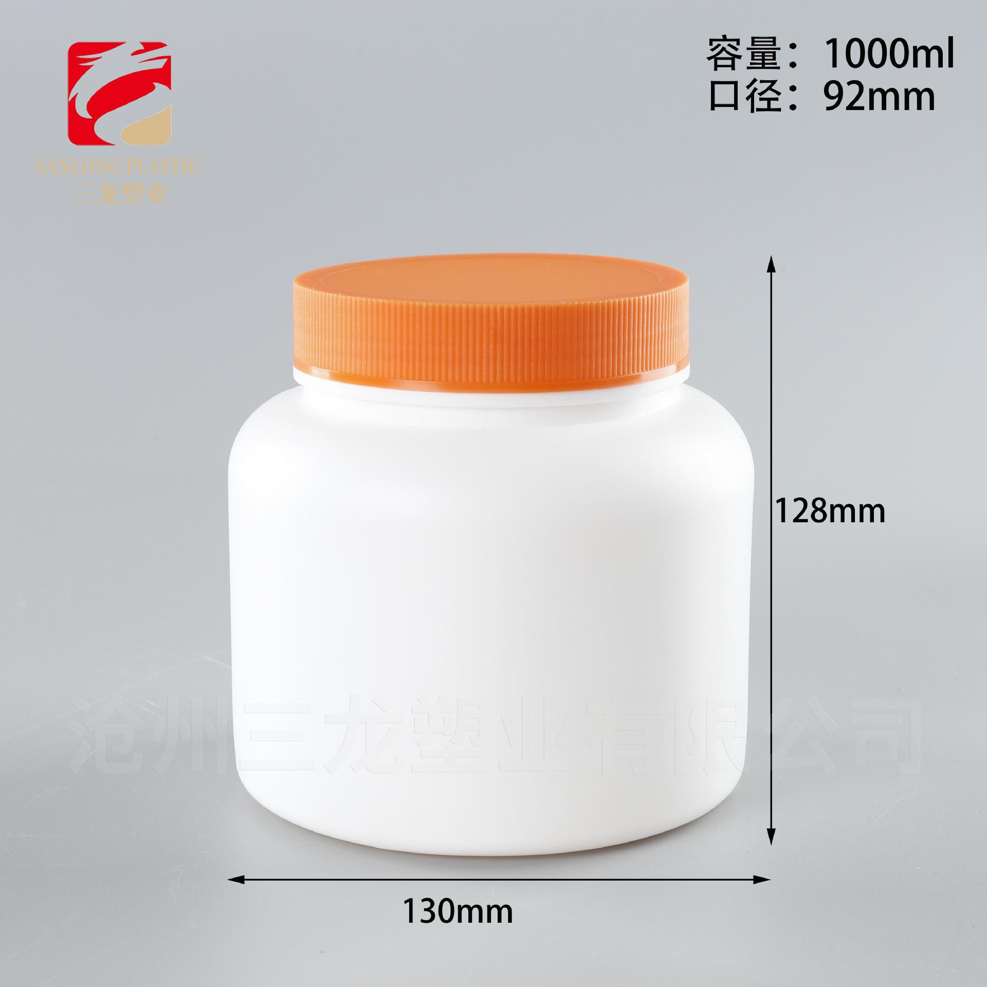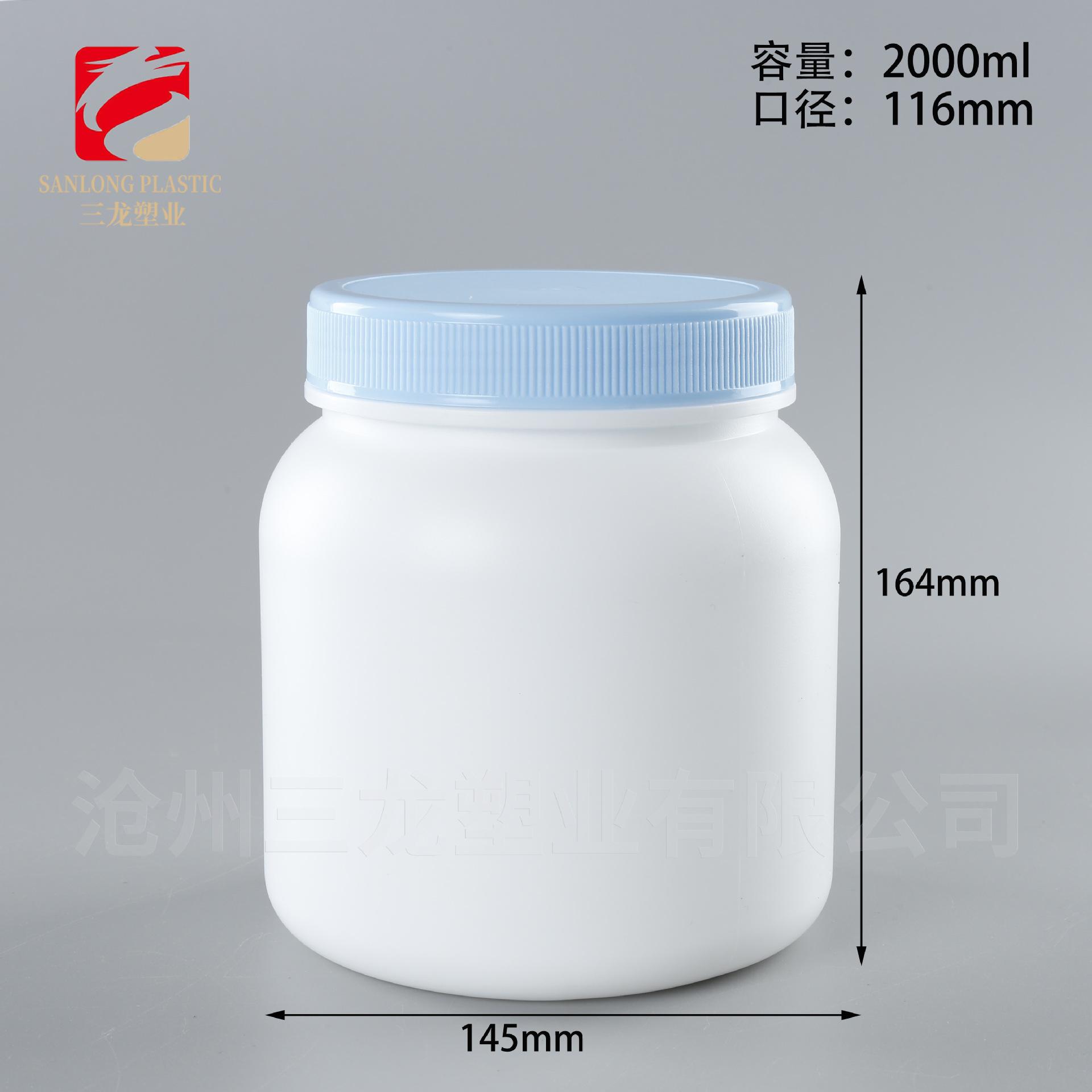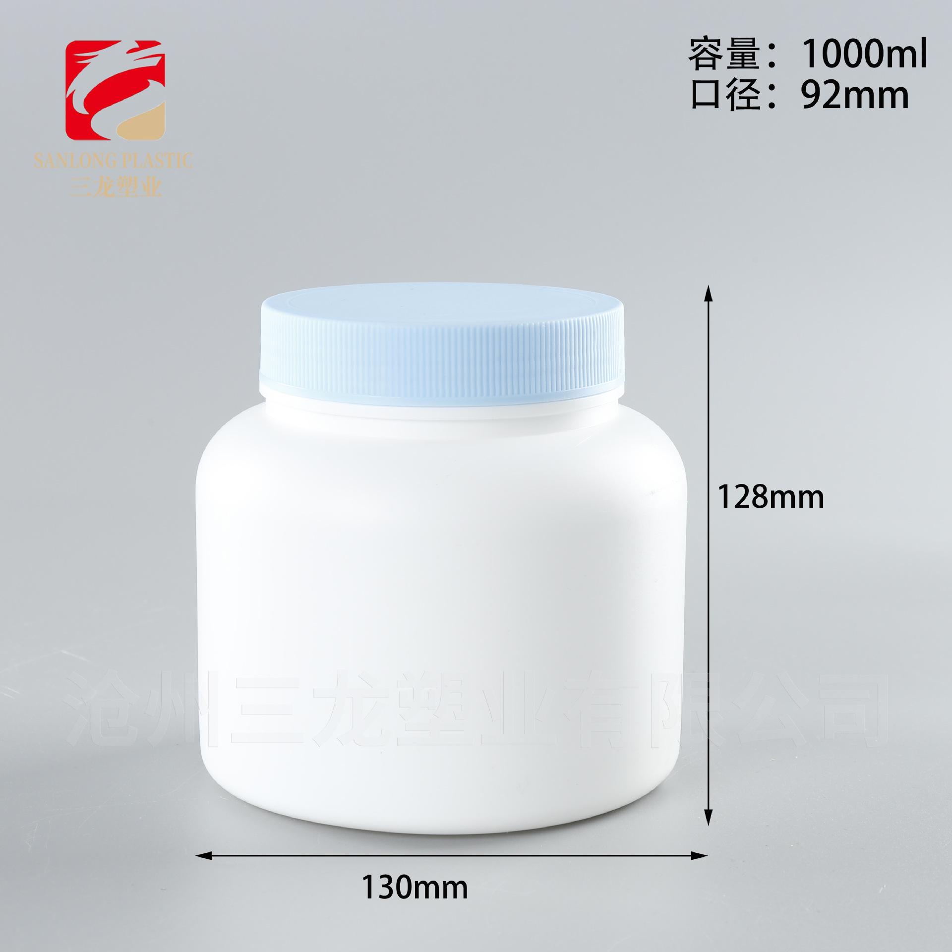 Botella de Polvo Boca Ancha 1kg Alimento Polvo de Sésamo Negro Proteína Polvo para Construir Músculo Barril de Empaque Pe500G Botella Azul de Grasa
