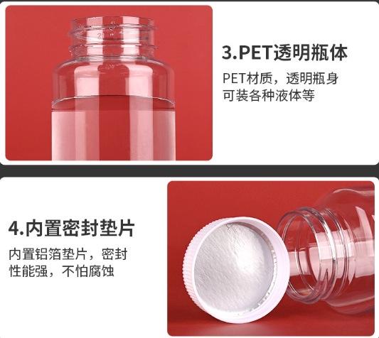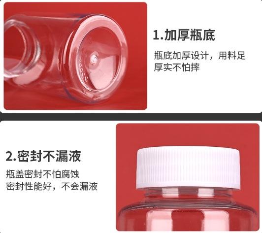 Botella de plástico de gran calibre, subenvase transparente, botella de plástico engrosada con tapa blanca, muestra de PET sellada, botella pequeña vacía