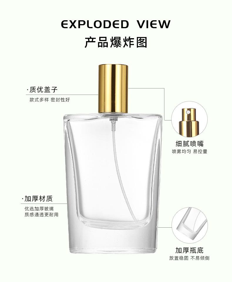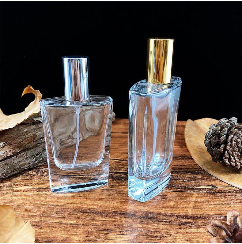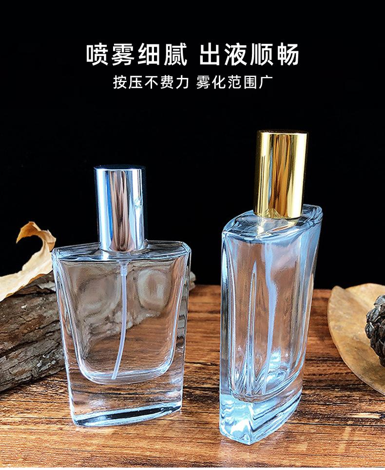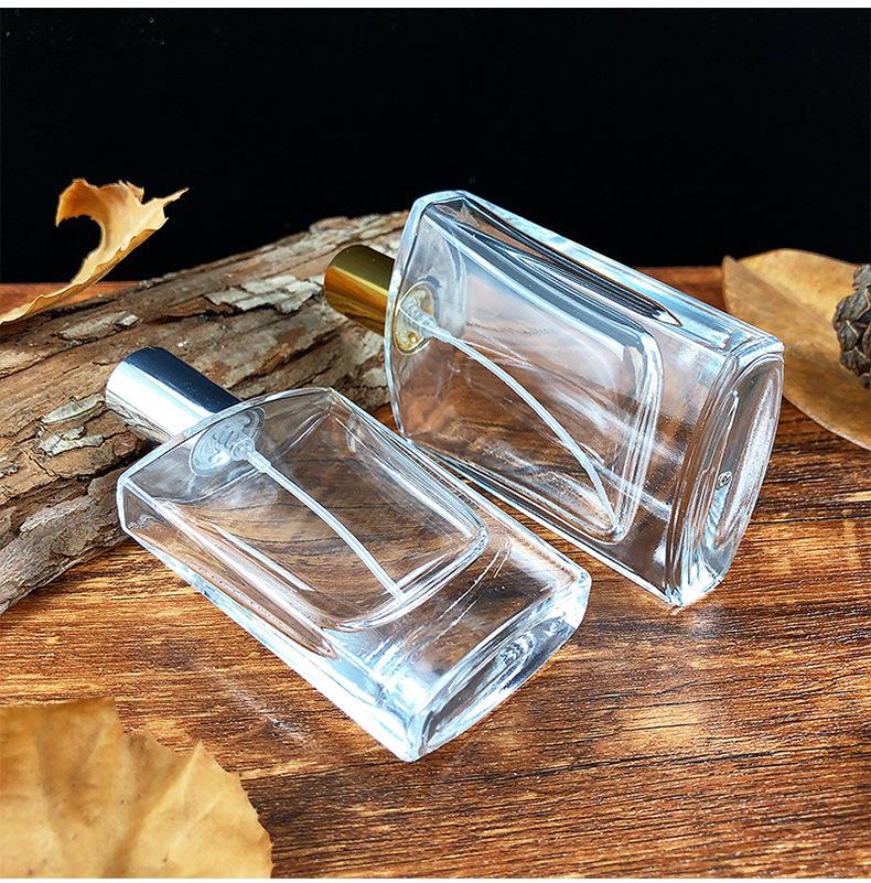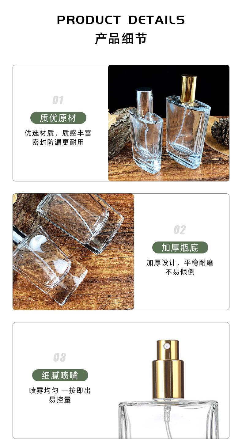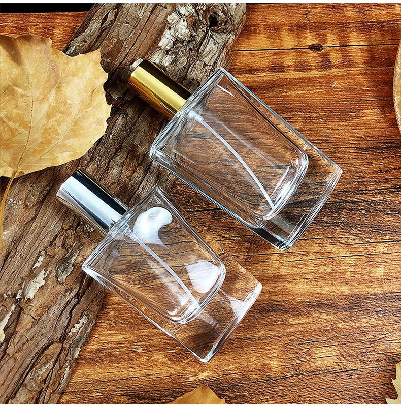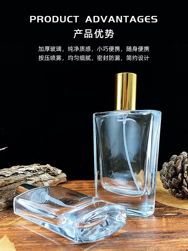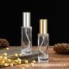 Botella de perfume de vidrio vacía con atomizador de prensa portátil para cosméticos de viaje