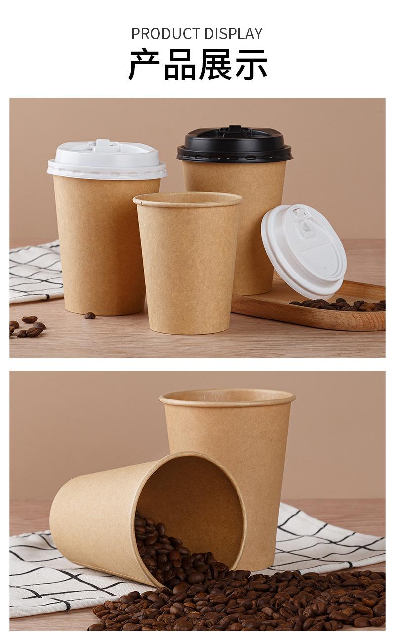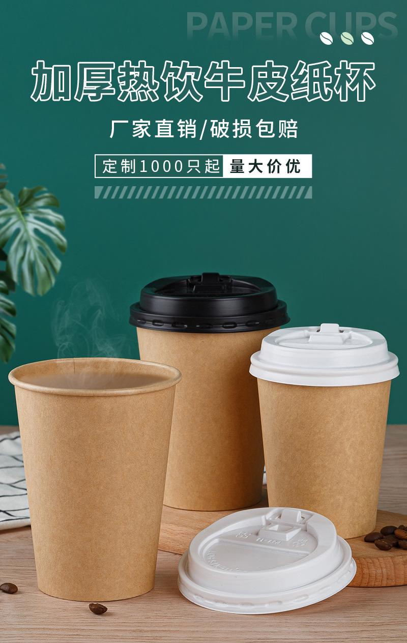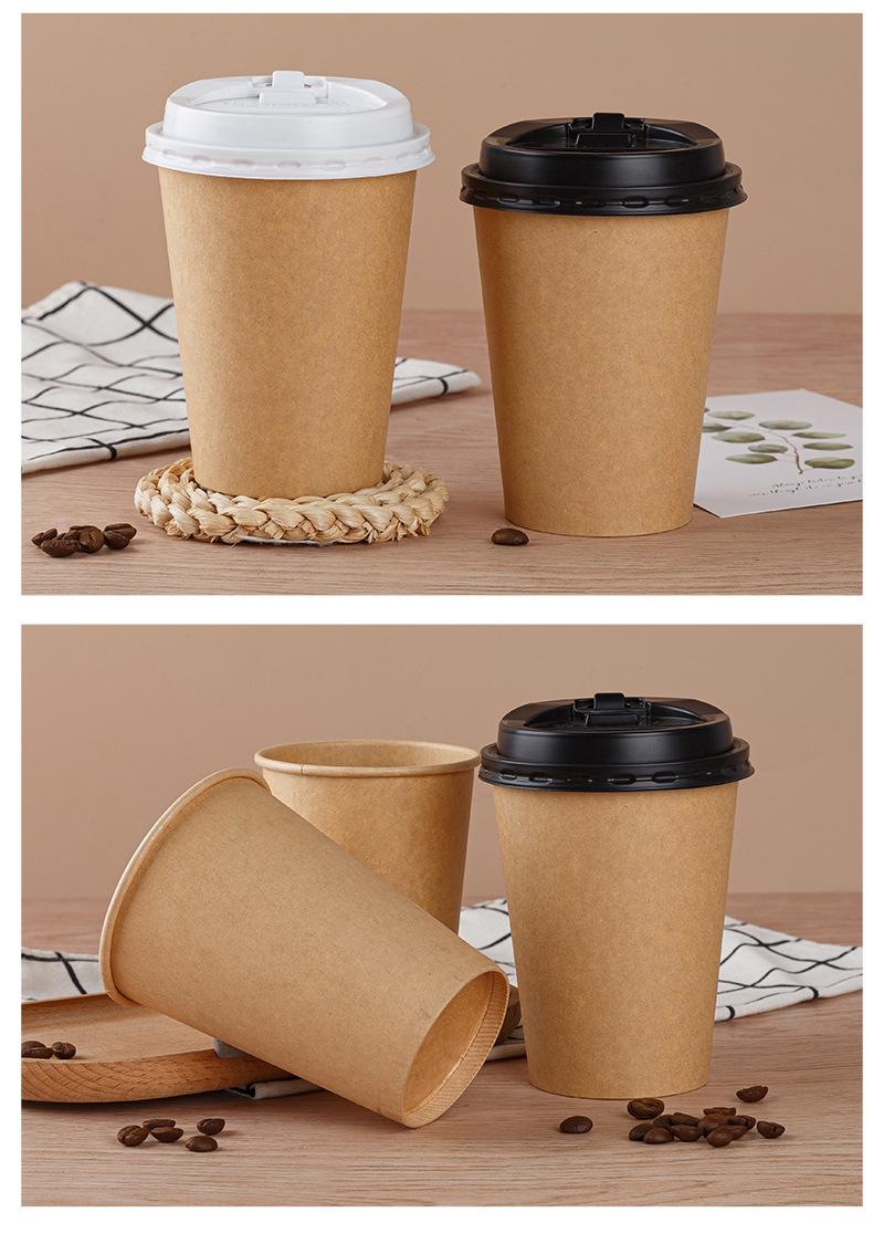 Vaso desechable grueso de papel kraft con empaque, vaso para leche de soya color natural con tapa, vaso para bebida caliente al por mayor