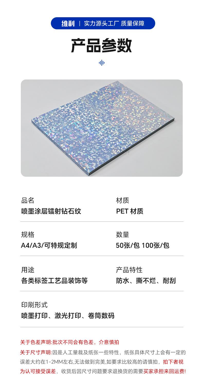 Etiquetas Autoadhesivas Transparentes con Patrón de Diamantes Láser Recubiertas para Inyección de Tinta Pegatinas de Sellado con Impresión Láser Personalizada Personalización