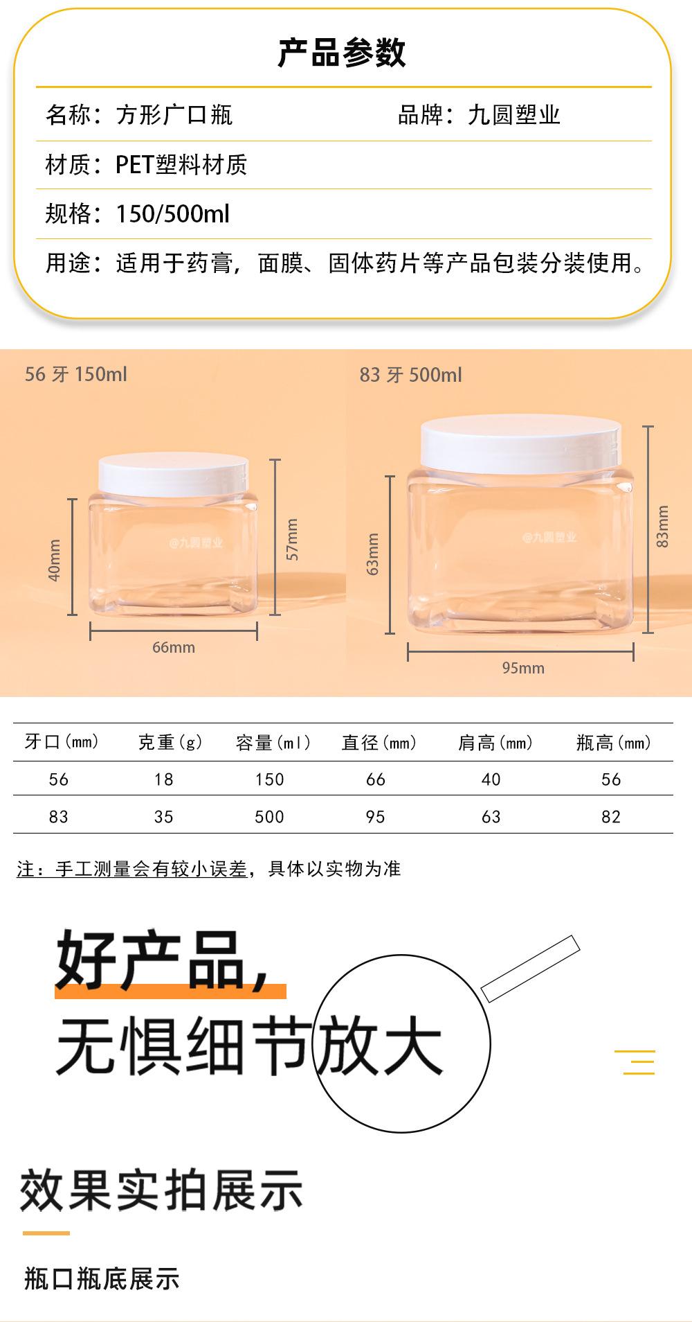 Tarro de crema cosmética transparente para mascotas, 150 g, de plástico, para el cuidado de la piel, 500 ml, para limpiar mascarillas para dormir.