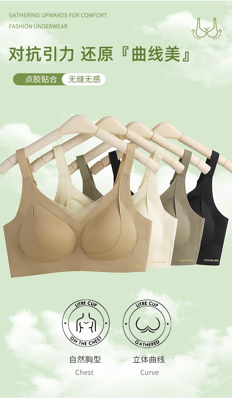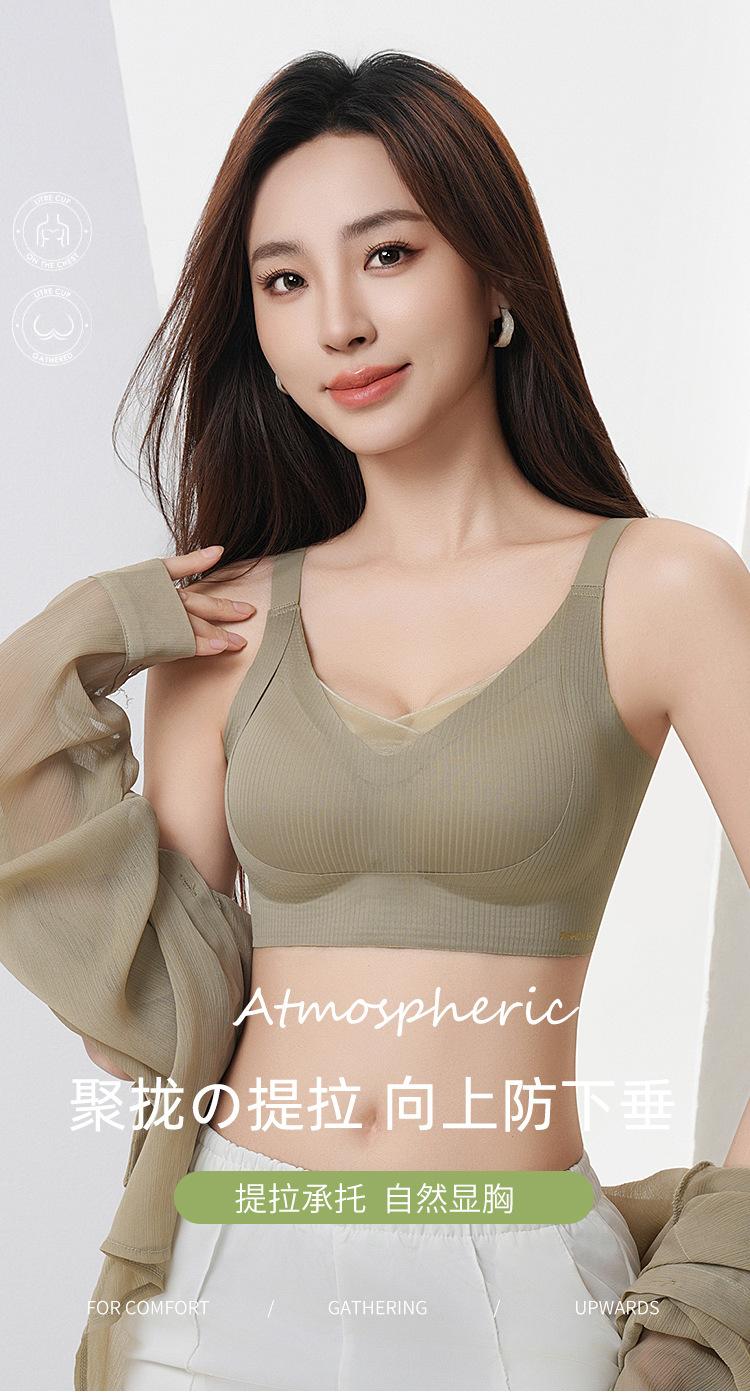 Ropa interior de espalda hermosa para mujer, copa fija, sin marcas, cómoda, pecho pequeño, pecho grande, fruncido, pecho plegado, antiflacidez, sujetador de hombros finos