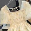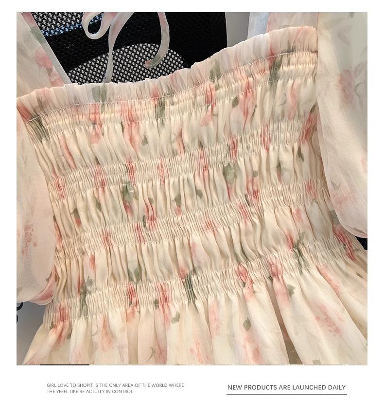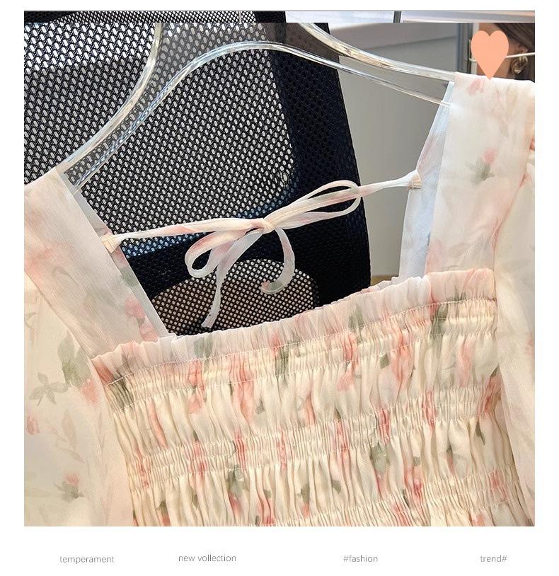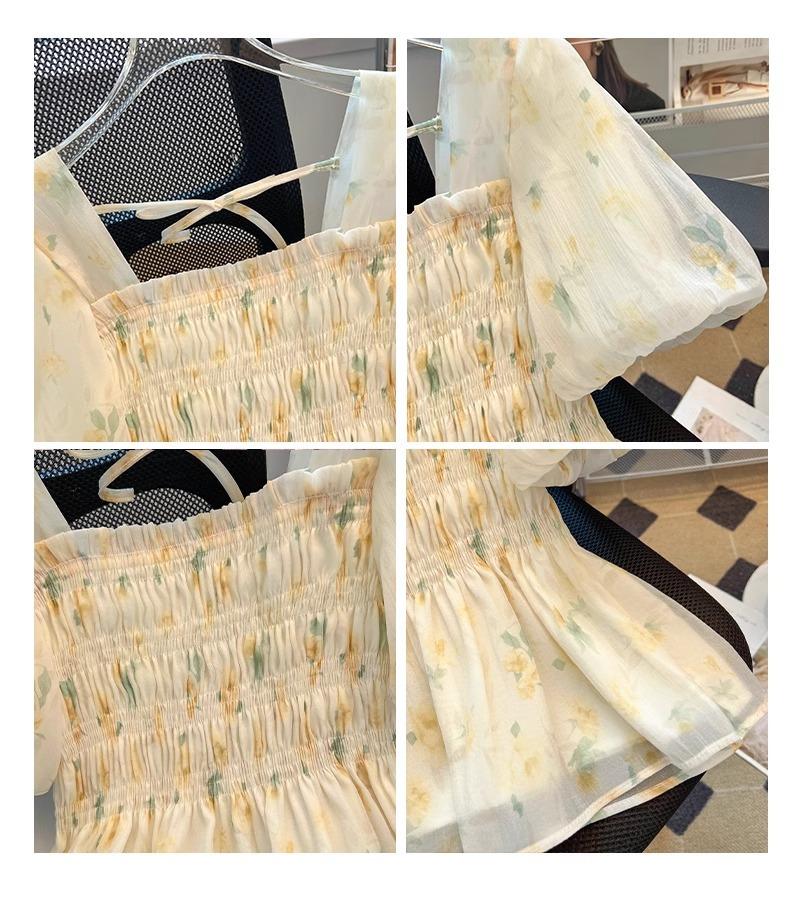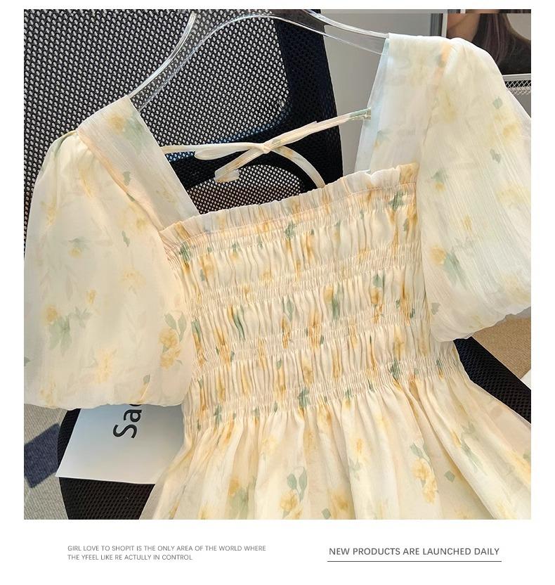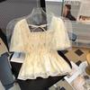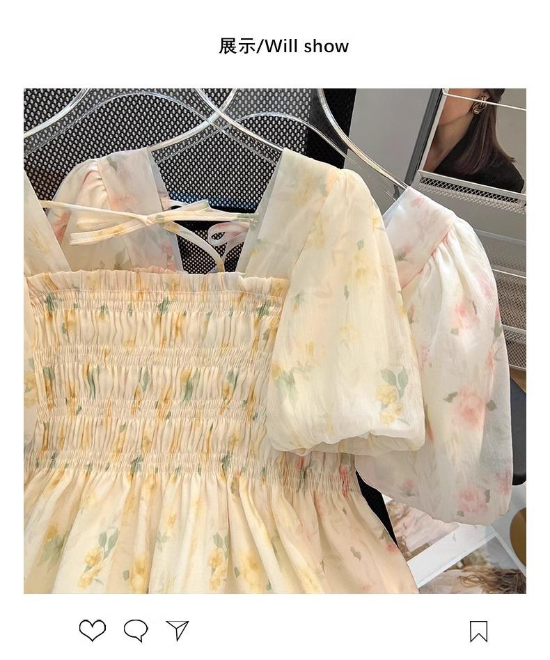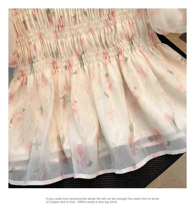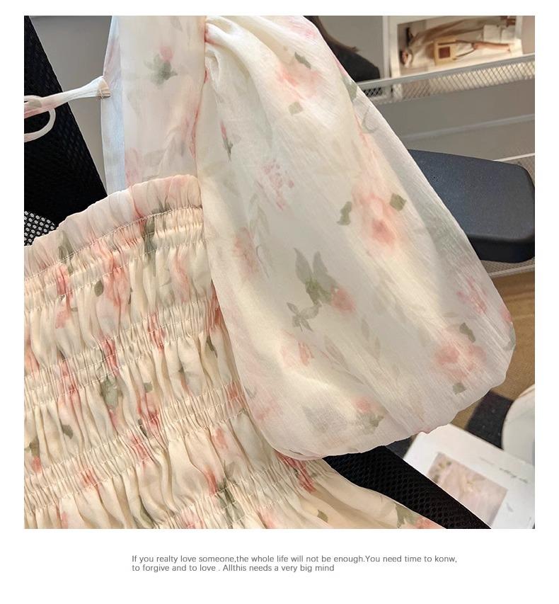 [Original] Camisa francesa con mangas abullonadas y estampado floral para mujer, elegante y bonita blusa de verano con cuello cuadrado.