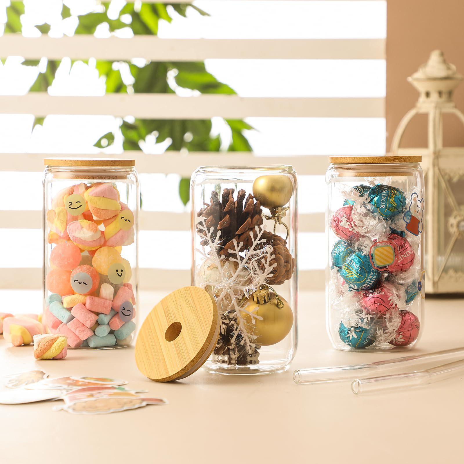 Taza de vidrio con tapa y pajita taza de vidrio taza de café taza para beber regalo taza de vidrio juego para beber traje de taza de vidrio